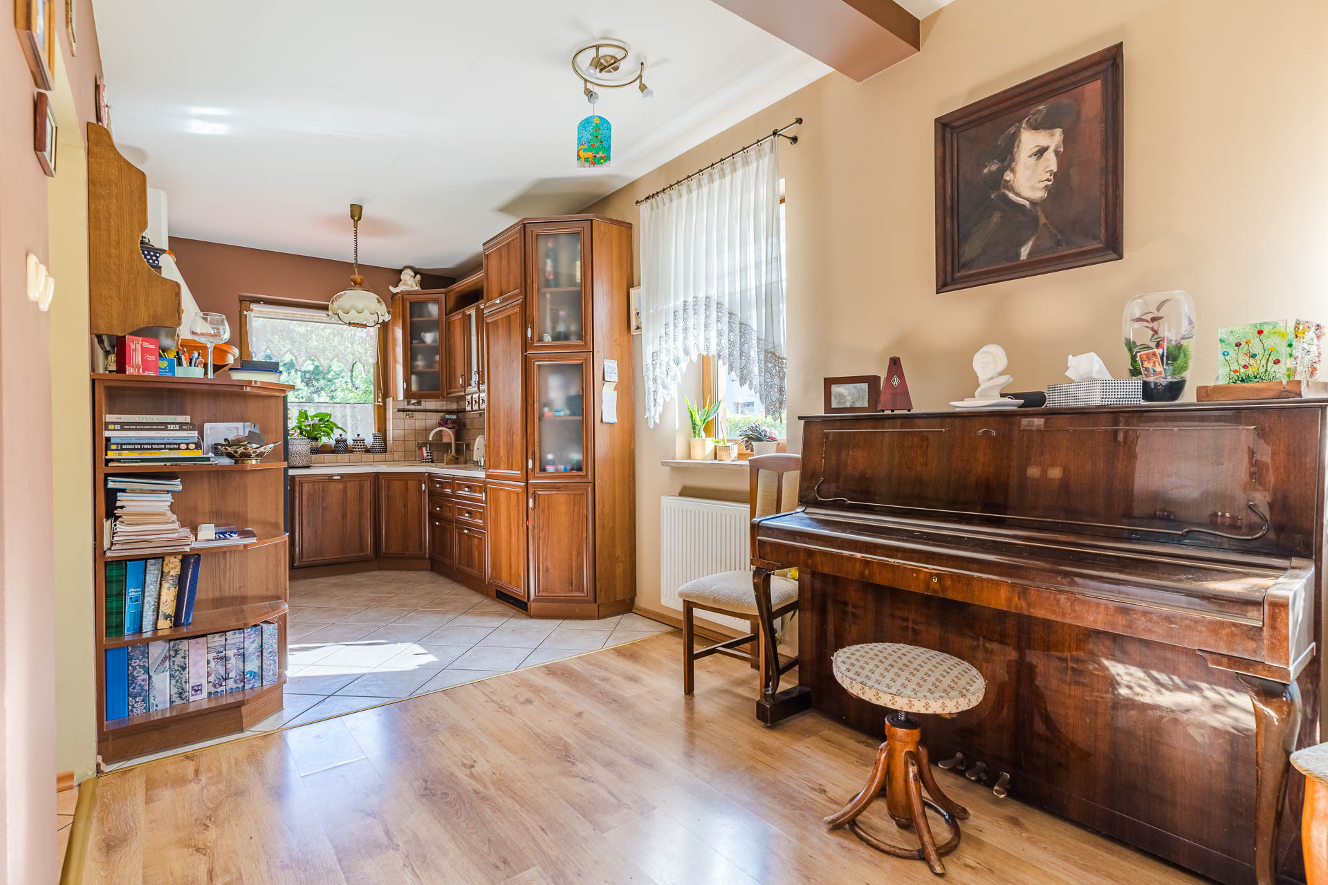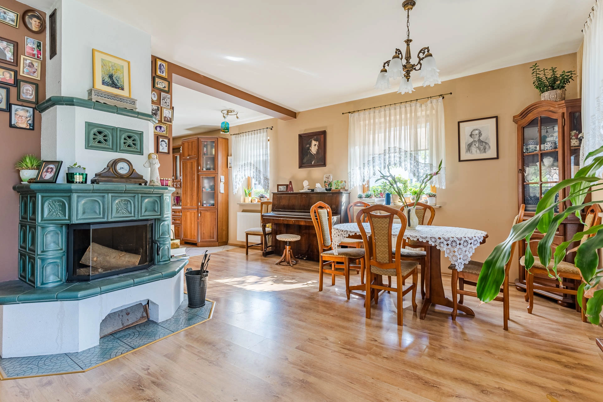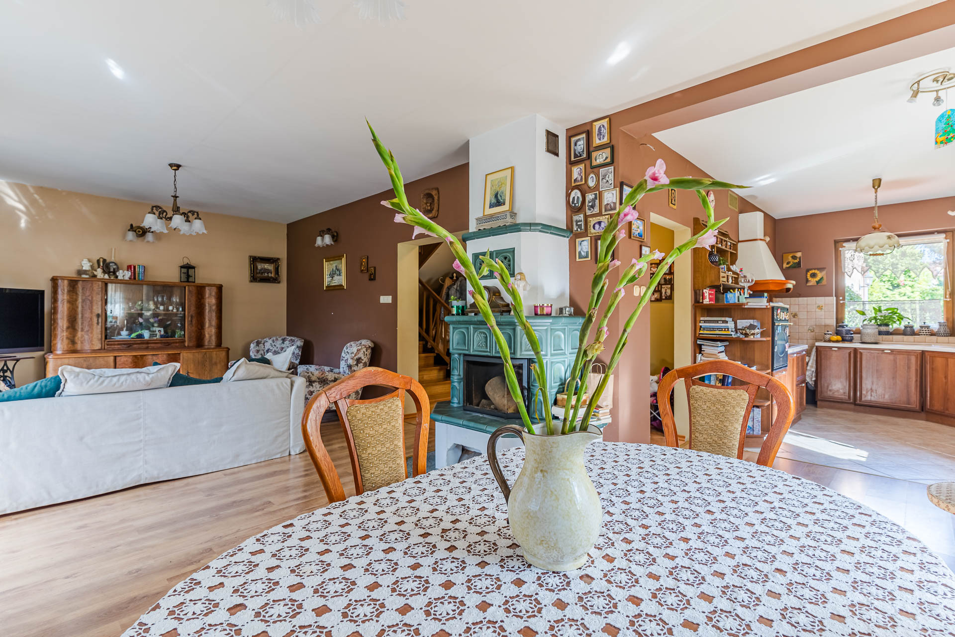 – salon (ok 32 m/2) z bezpośrednim wyjściem na taras i ogród