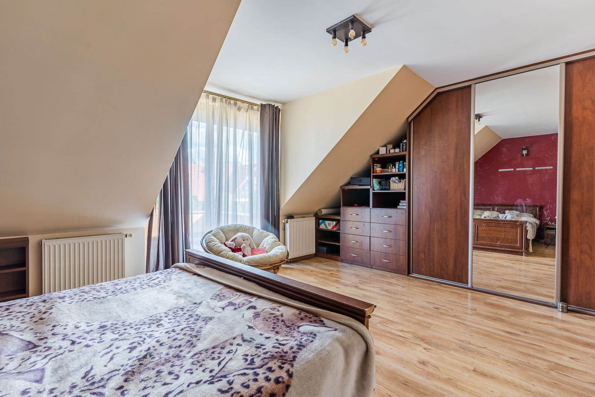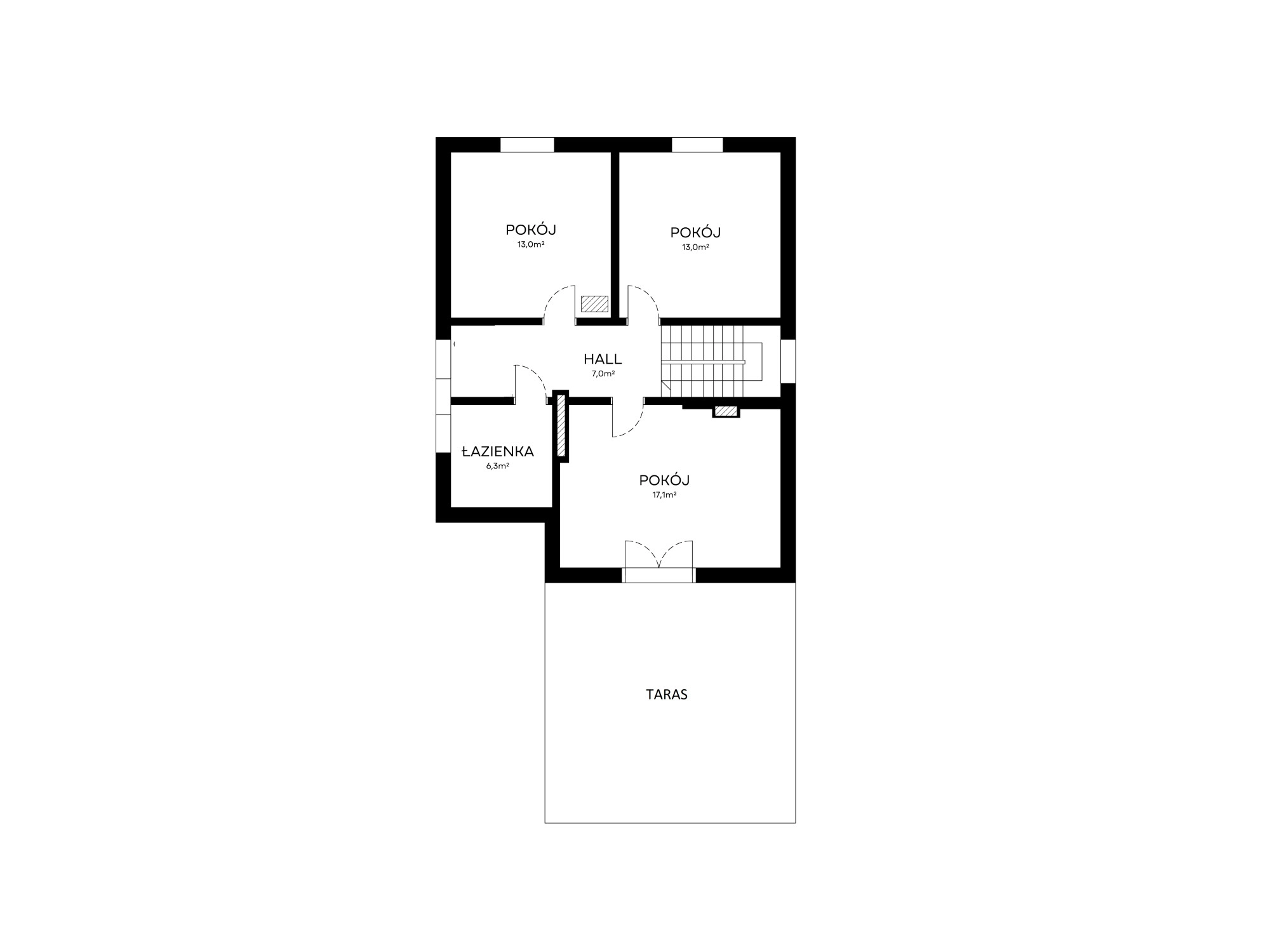 – 3 niezależne pokoje (17,1 m/; 21,3 m/2; 13 m/2) – powierzchnia mierzona po podłodze jest znacznie większa. Z jednego z nich wyjście na 30-to metrowy taras