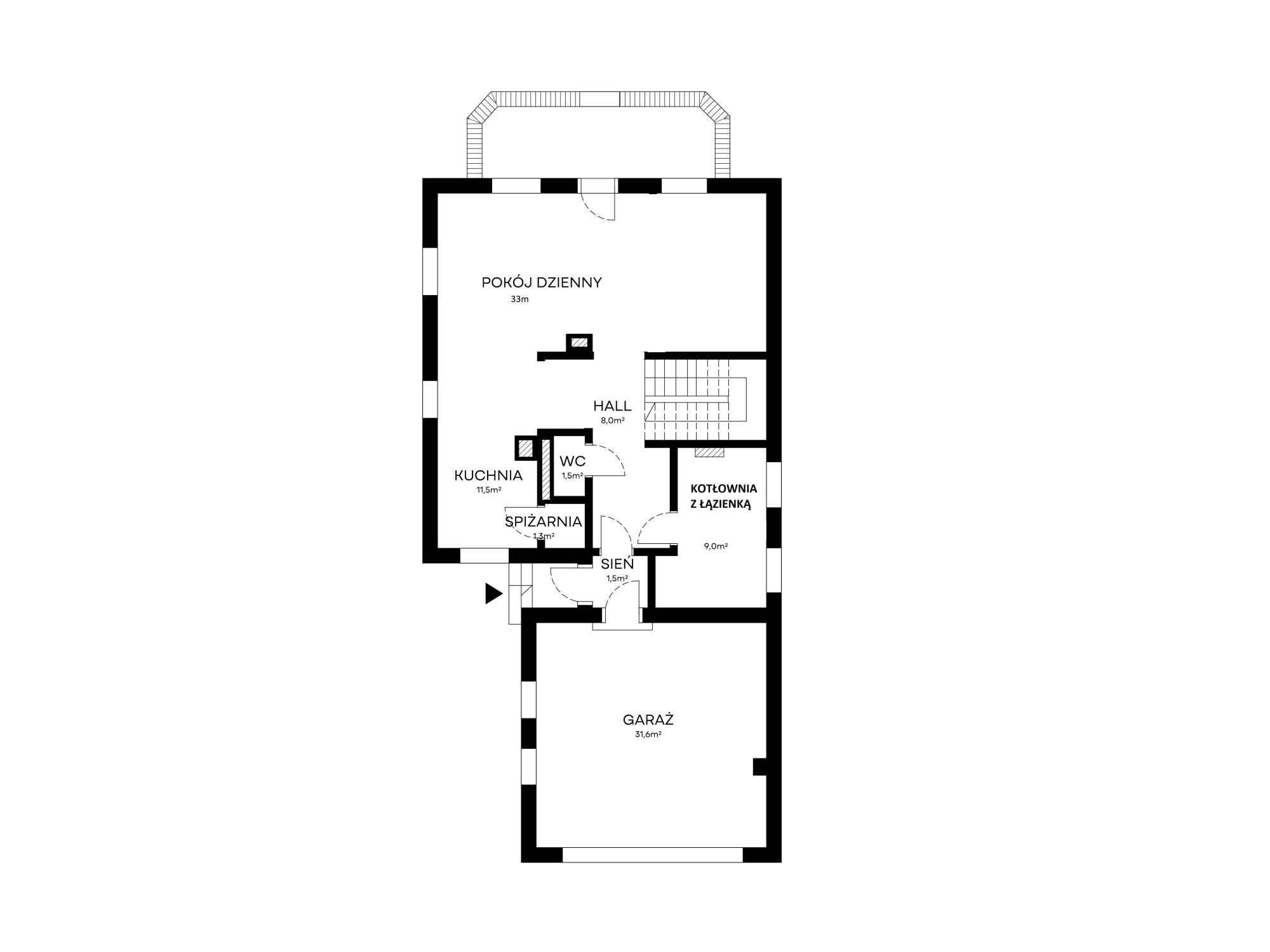 – garaż na 2 auta – powierzchnia 31,6 m/2
