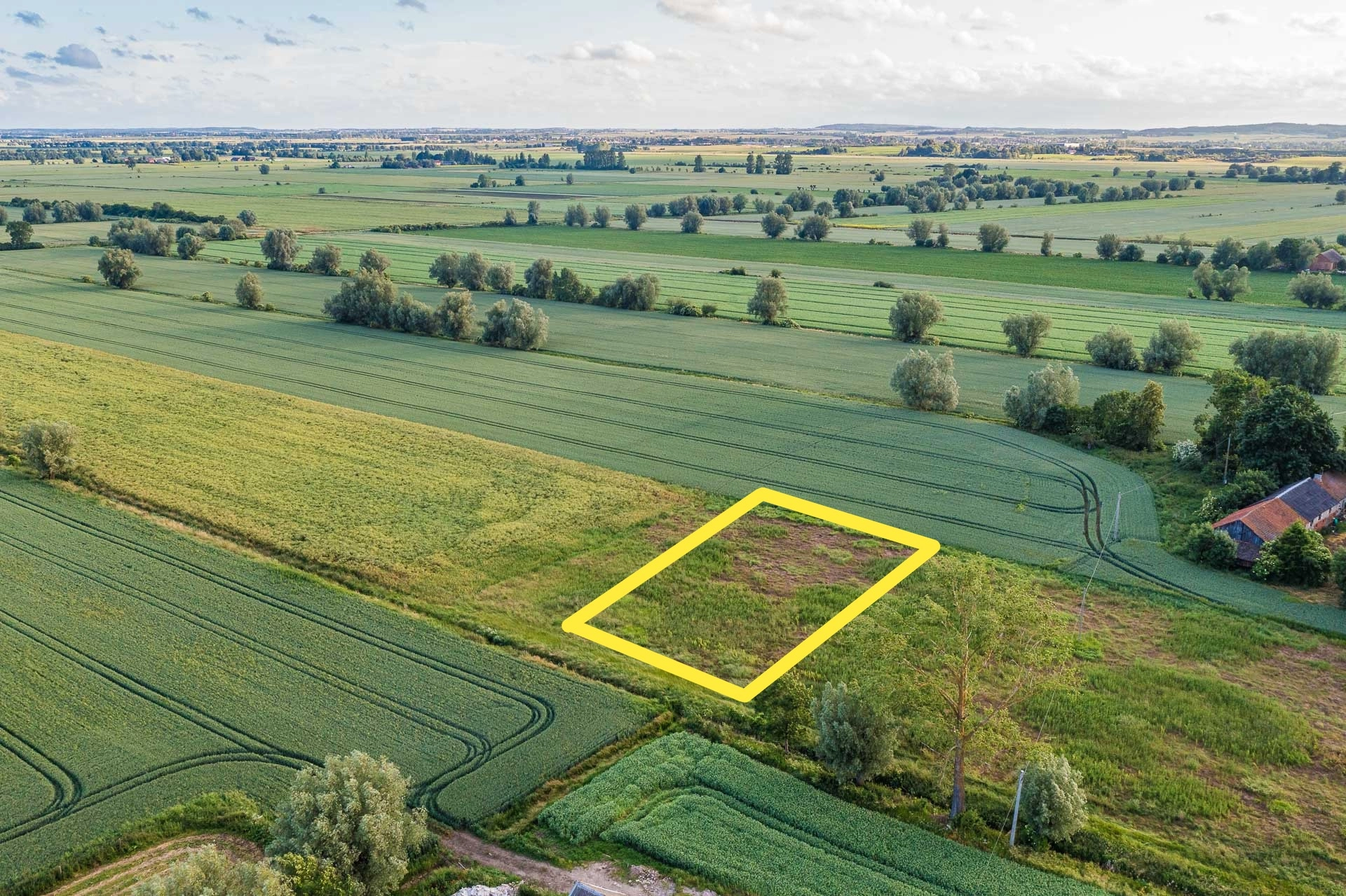 Działka położona jest zaledwie 20 minut od Gdańska i 10 minut od Pruszcza Gdańskiego. Znajduje się przy ulicy Polnej w zacisznej części wsi z niewieloma domami jednorodzinnymi oraz otwartą przestrzenią typową dla Żuław.