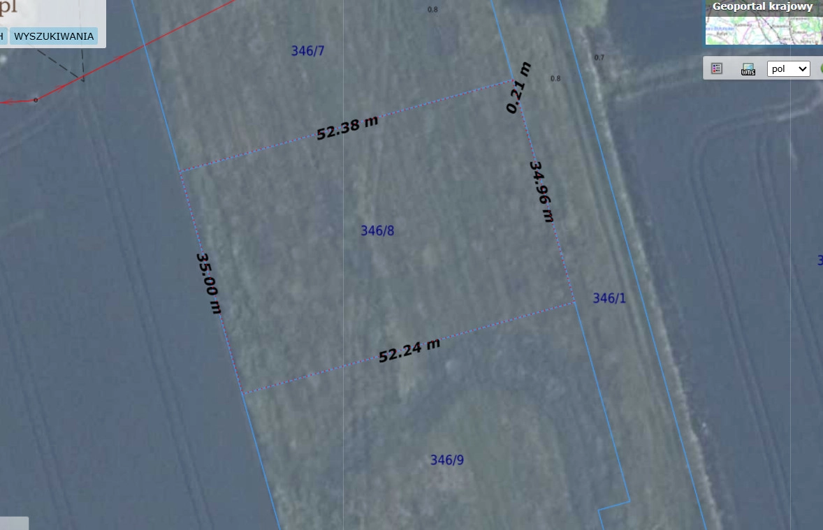 Działka budowlana o pow. 1833m2. Jest w kształcie prostokąta i jest niemalże idealnie płaska. Na sąsiedniej działce znajduję się prąd a więc Energa powinna wykonać przyłącze bez opłaty przyłączeniowej a wodociąg jest przy skrzyżowaniu z główną drogą.