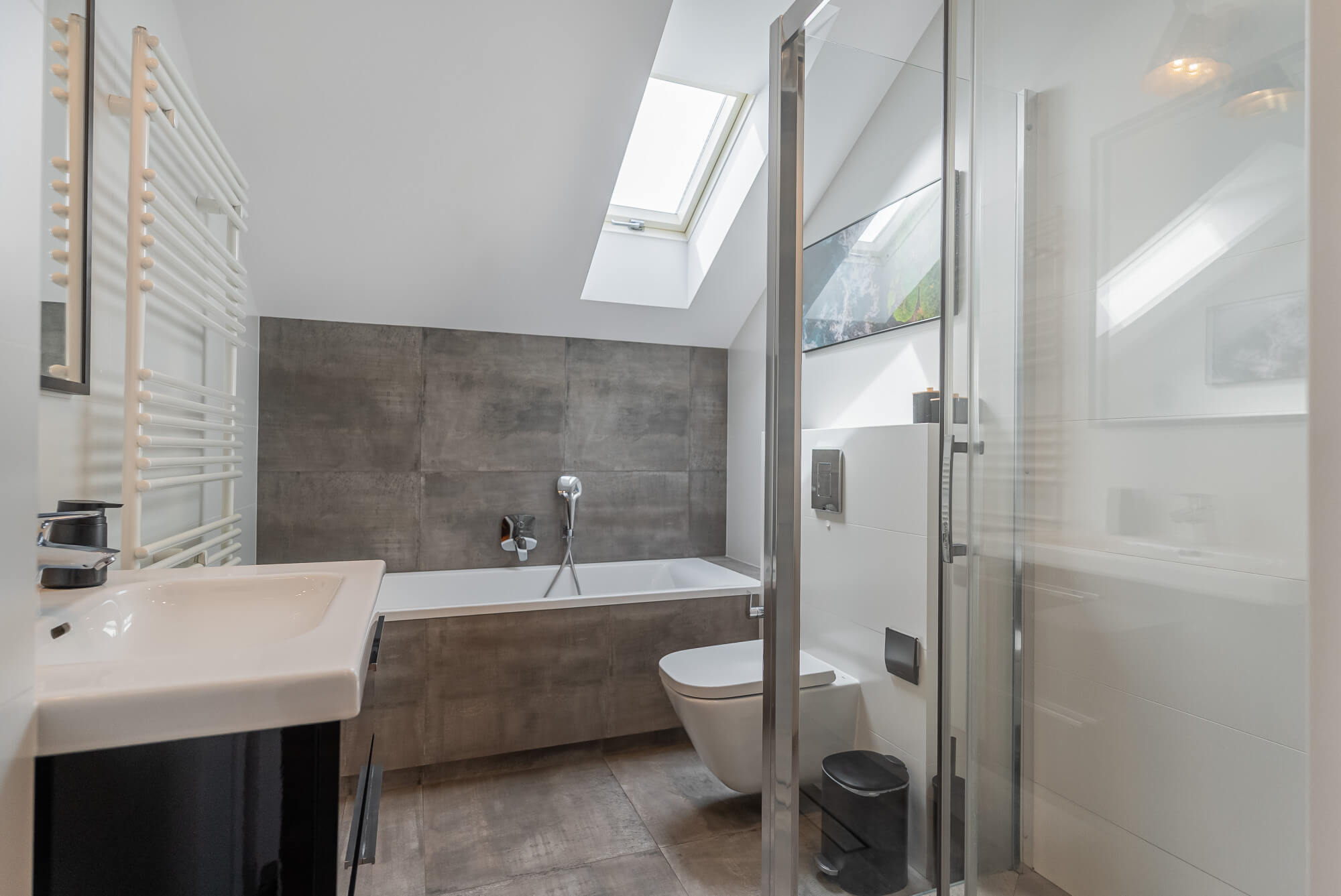 – Trzy przestronne sypialnie (11,2 m3, 11,8 m3, 18,4 m2). Jedna z sypialni dodatkowo wyposażona jest w garderobę, łazienkę z wanną oraz wyjście na taras;