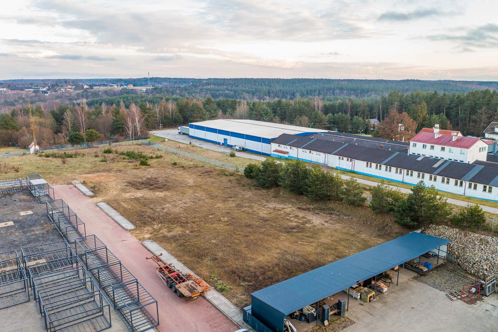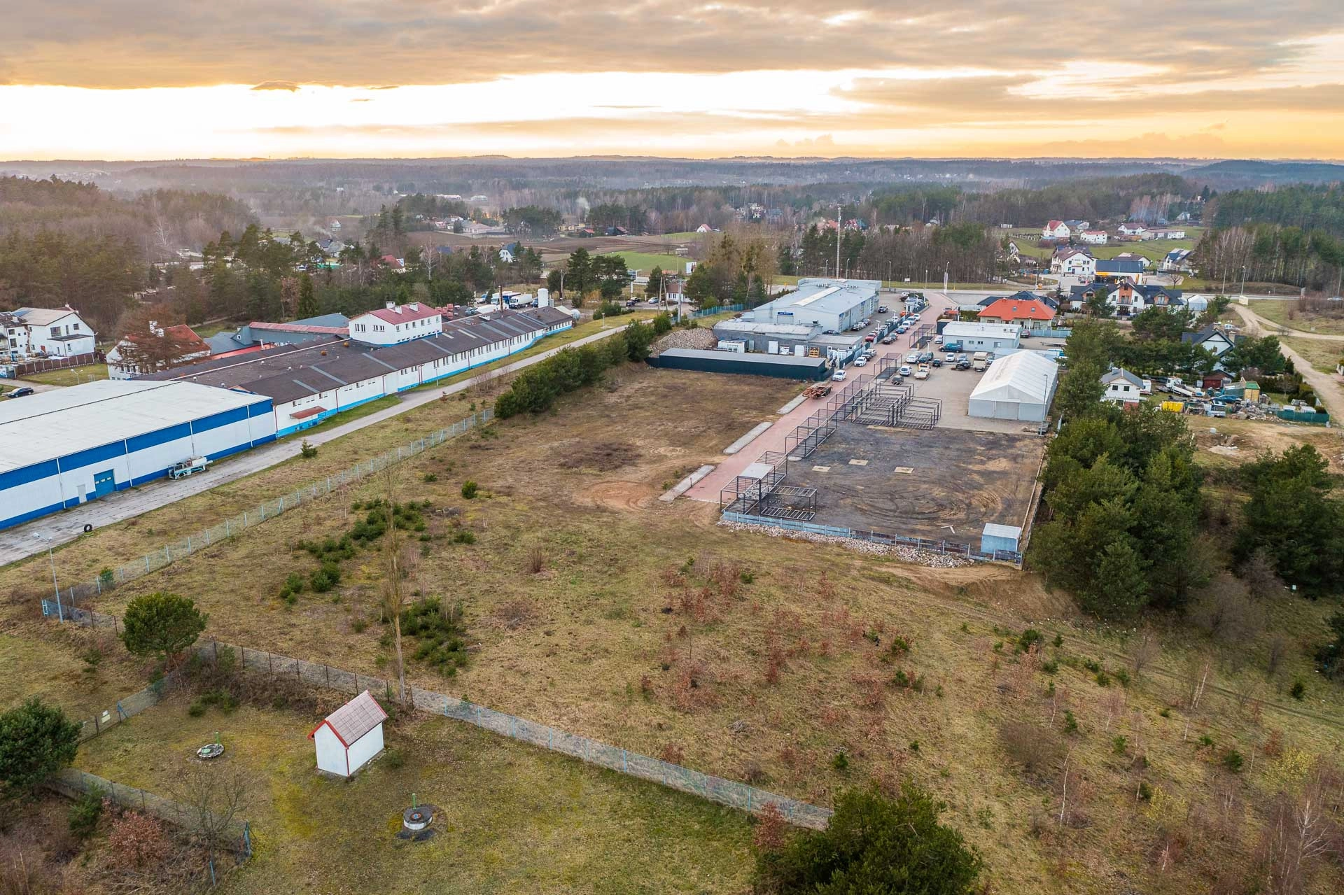 Na najbliższe większe zakupy udamy się do Biedronki, która znajduję się przy głównej drodze, zaledwie 4 minuty autem od działki. Pieszo możemy udać się na zakupy do sklepu spożywczego oddalonego od działki o 950m.