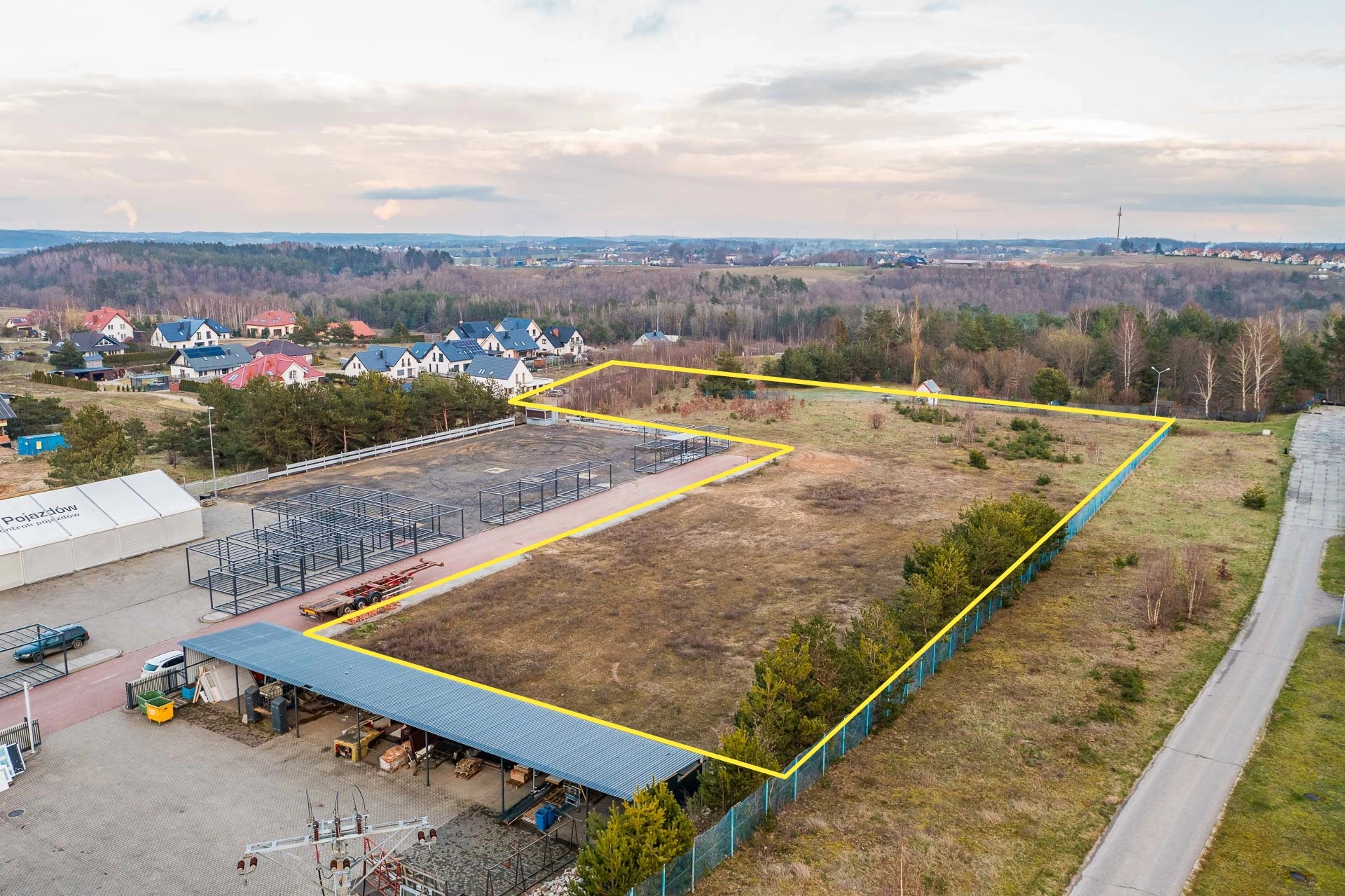 Borkowo Kartuskie. Wieś zamieszkała przez około 1500 osób leżąca nad jeziorem Karlikowskim. Do jeziora z działki jest jedynie 900 metrów.