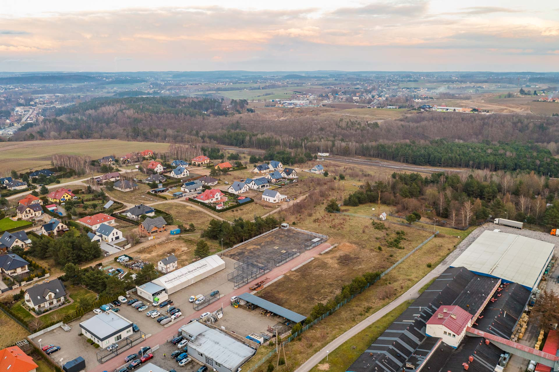 Nieco ponad kilometr prostej drogi to odległość do przystanku PKMki w kierunki Trójmiasta lub Kartuz.