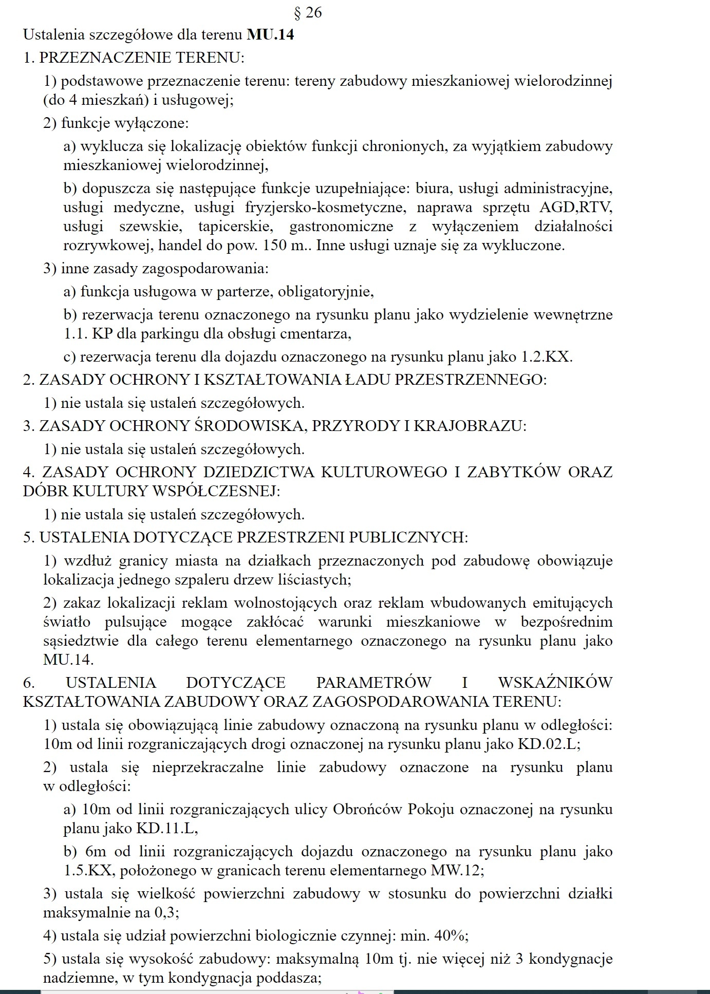 b) dopuszcza się następujące funkcje uzupełniające: biura, usługi administracyjne, usługi medyczne, usługi fryzjersko-kosmetyczne, naprawa sprzętu AGD,RTV, usługi szewskie, tapicerskie, gastronomiczne z wyłączeniem działalności rozrywkowej, handel do pow. 150 m.. Inne usługi uznaje się za wykluczone.