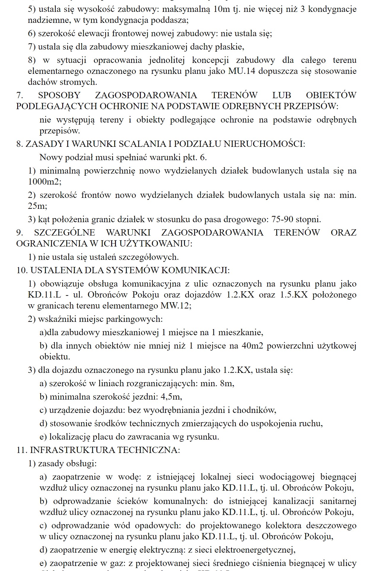 a) 10m od linii rozgraniczających ulicy Obrońców Pokoju oznaczonej na rysunku planu jako KD.11.L,