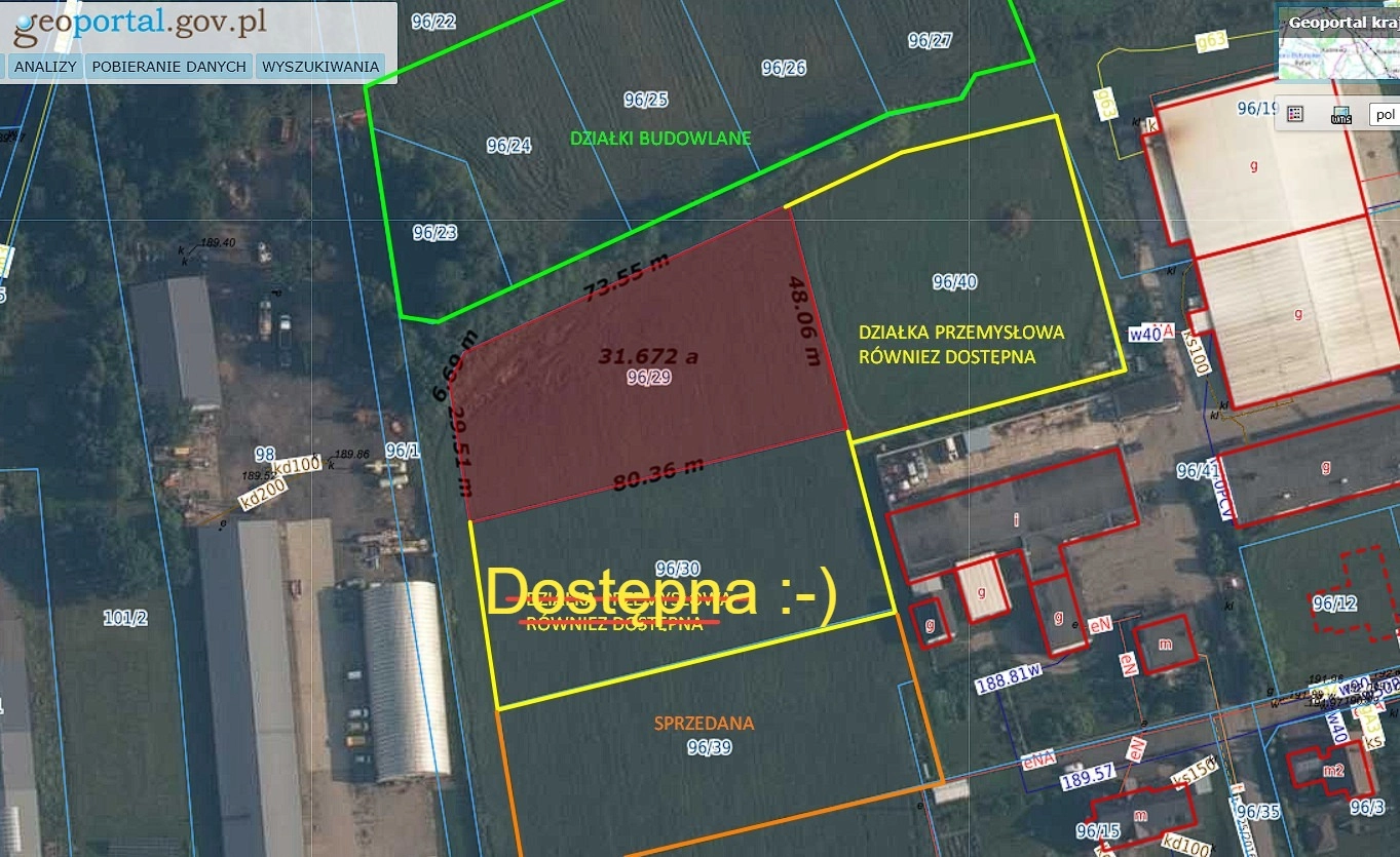 Istnieje możliwość dokupienia sąsiedniej działki 96/30 o pow. 3165m2 oraz działki 96/40 o pow. 3137m2.