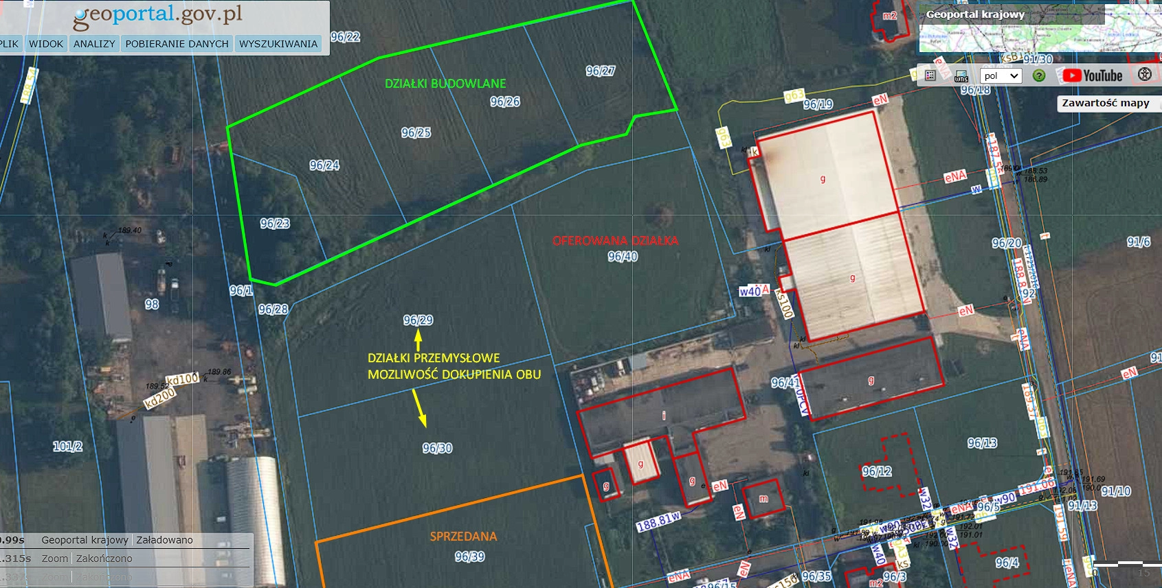 Istnieje możliwość dokupienia sąsiednich działek 96/29 oraz 96/30 o takiej samej powierzchni – 3165m2.