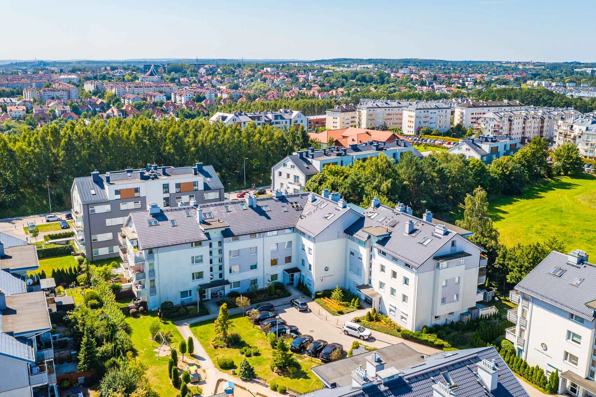 Mieszkanie znajduje się w gdańskiej dzielnicy Morena. Jest to miejsce ciche, spokojne, zielone, zadbane i bardzo ładnie urządzone. Towarzysząca zabudowa to niskie bloki wielorodzinne. Wokół znajdziemy miejsca przeznaczone do dziecięcych zabaw, ławki, elementy małej architektury, dobrze utrzymane ulice. W pobliżu pełna infrastruktura handlowo-usługowa.