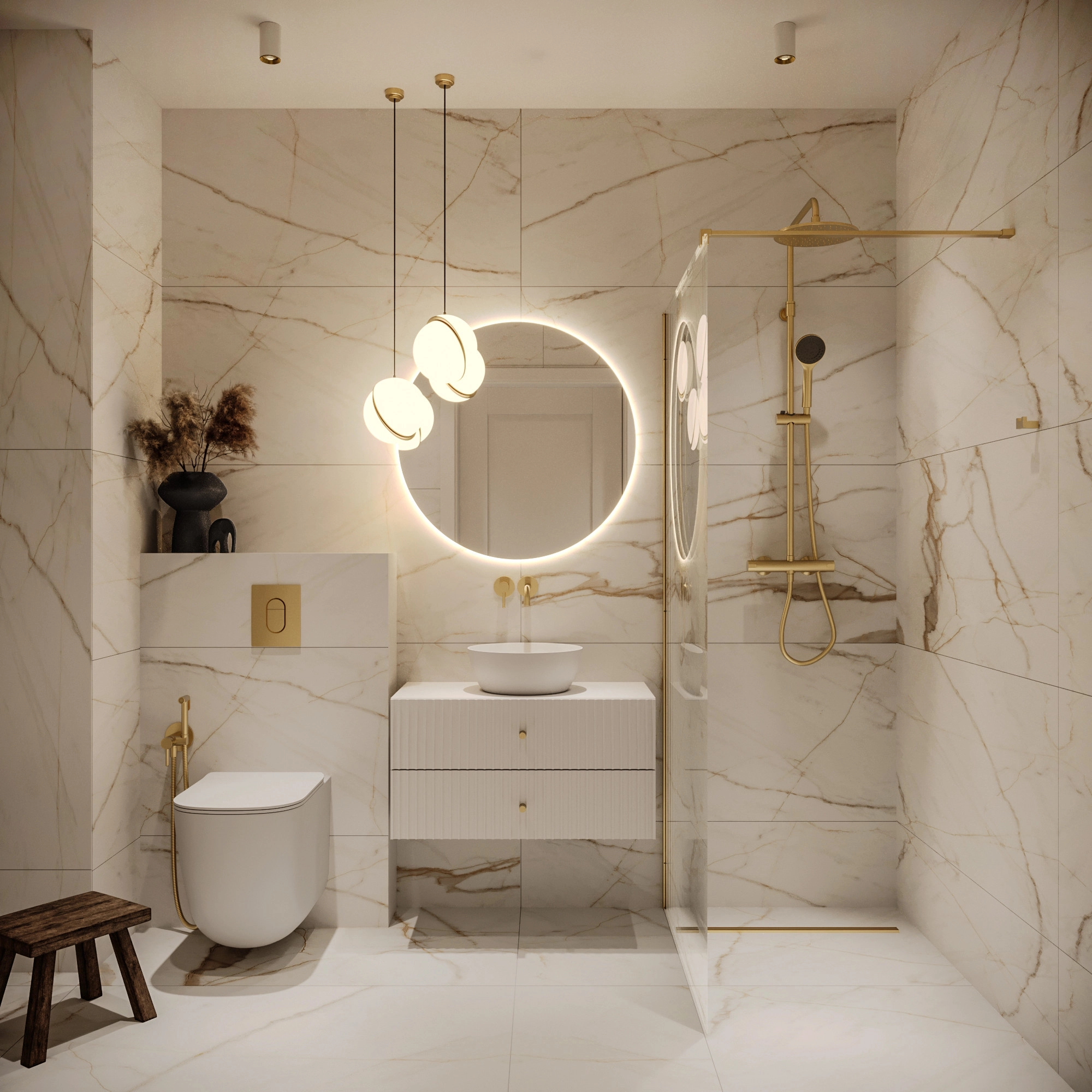 – łazienka (4,77 m2) z WC, prysznicem bezprogowym, umywalką, lustrem,