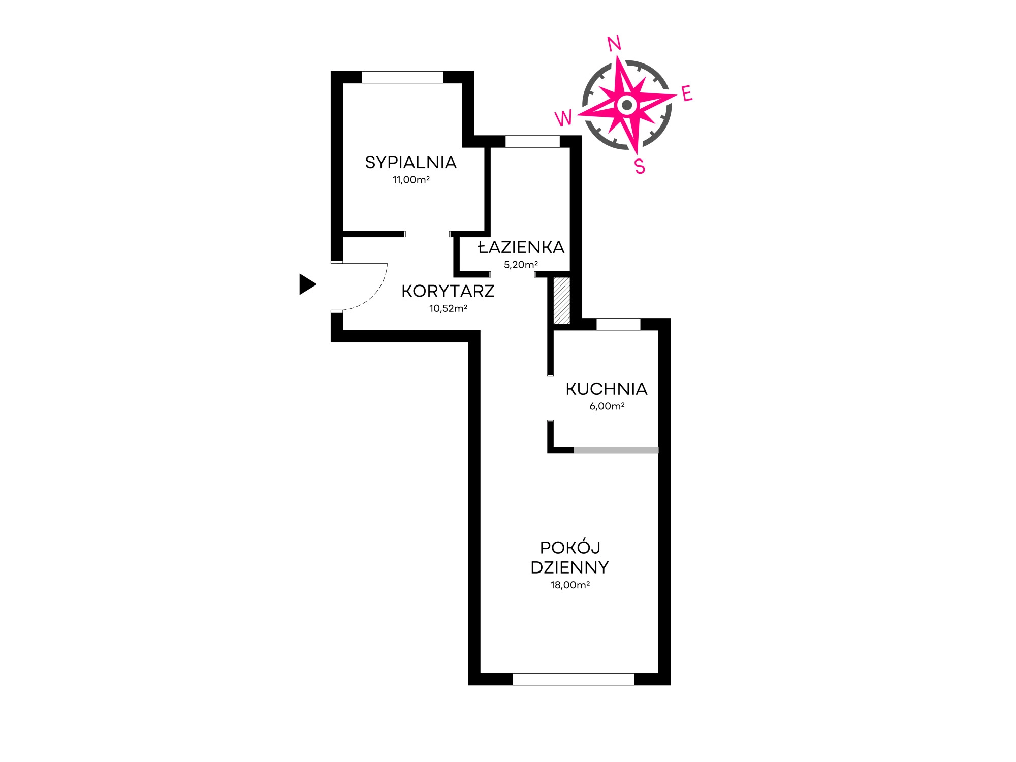 – Korytarza o powierzchni 10,52 m2