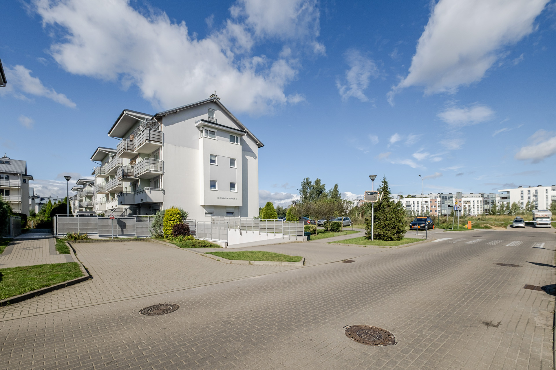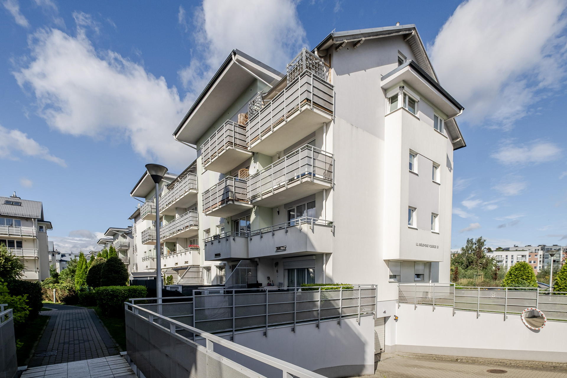 mieszkanie usytuowane jest na drugim piętrze trzypiętrowego budynku o nowoczesnym wyglądzie, wybudowanego w 2012 roku przez dewelopera Allcon. Cała nieruchomość utrzymana jest w bardzo dobrym stanie. Wejście do budynku zabezpiecza domofon, a sama klatka schodowa jest czysta, przestronna i zadbana. W pobliżu budynku dostępne są bardzo liczne ogólnodostępne miejsca parkingowe.