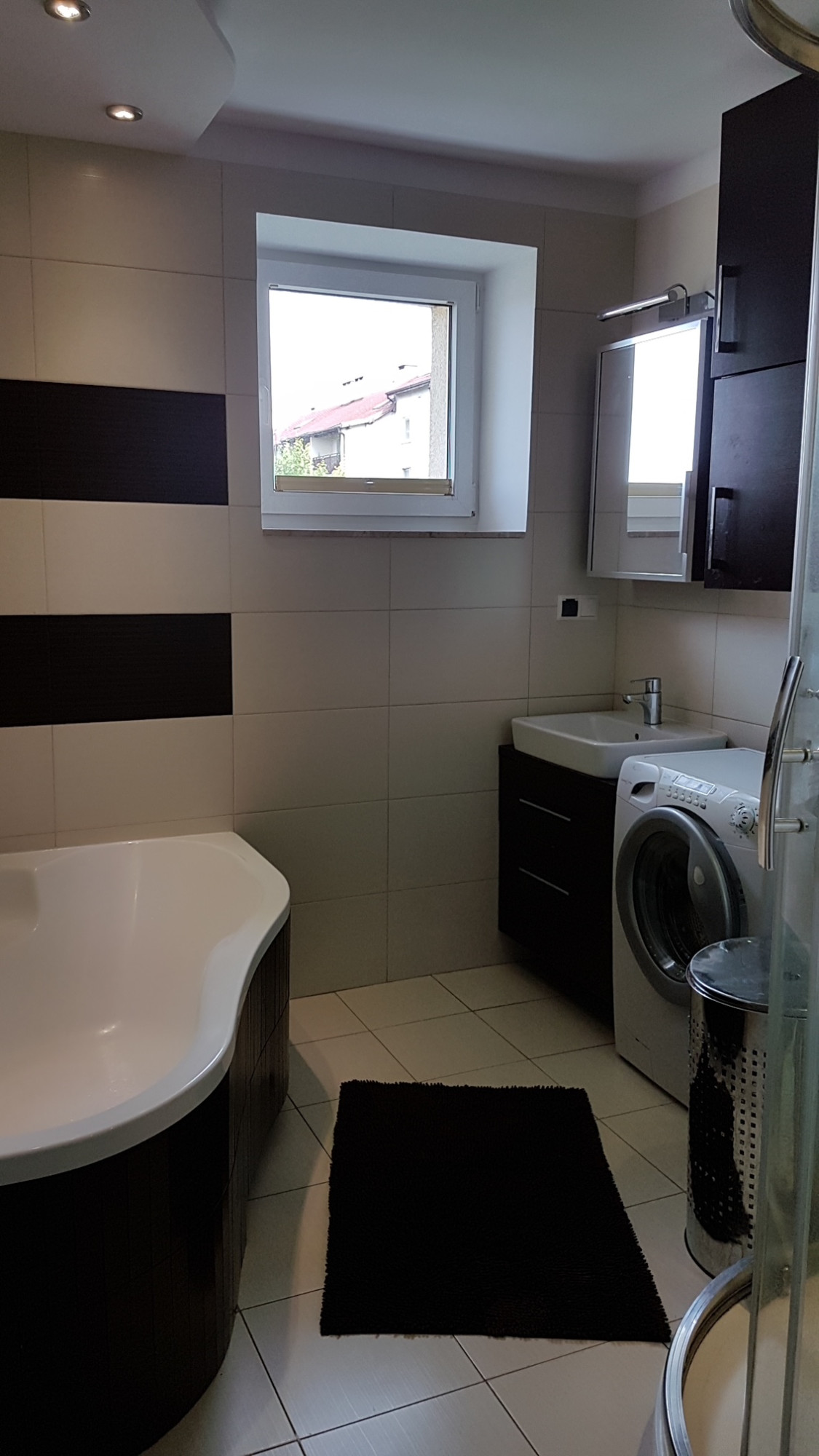komfortowa łazienka z wanną i prysznicem