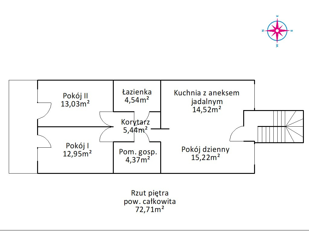 – pokoje I 13,03 m2 oraz II 12,95 m2 łączy wspólne wyjście na balkon