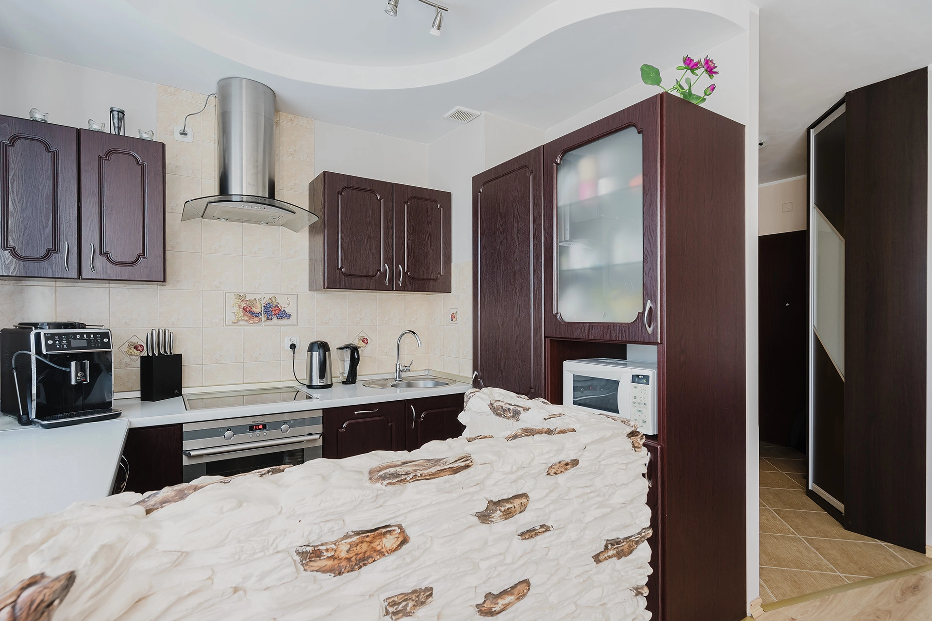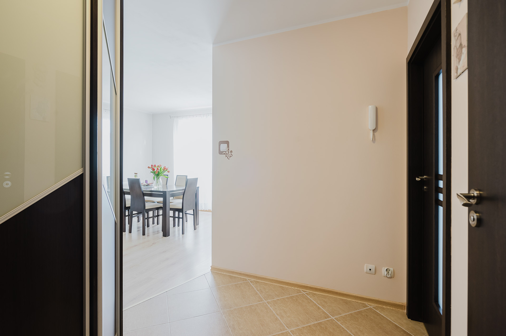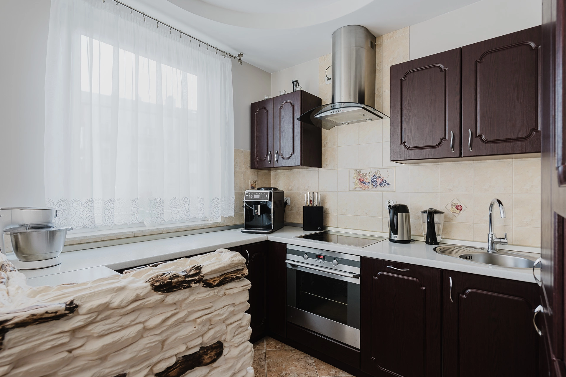 - słoneczny salon z aneksem kuchennym, idealny do wspólnego spędzania czasu, z wyjściem na balkon o powierzchni 5,5 m² – doskonałe miejsce na poranną kawę,
