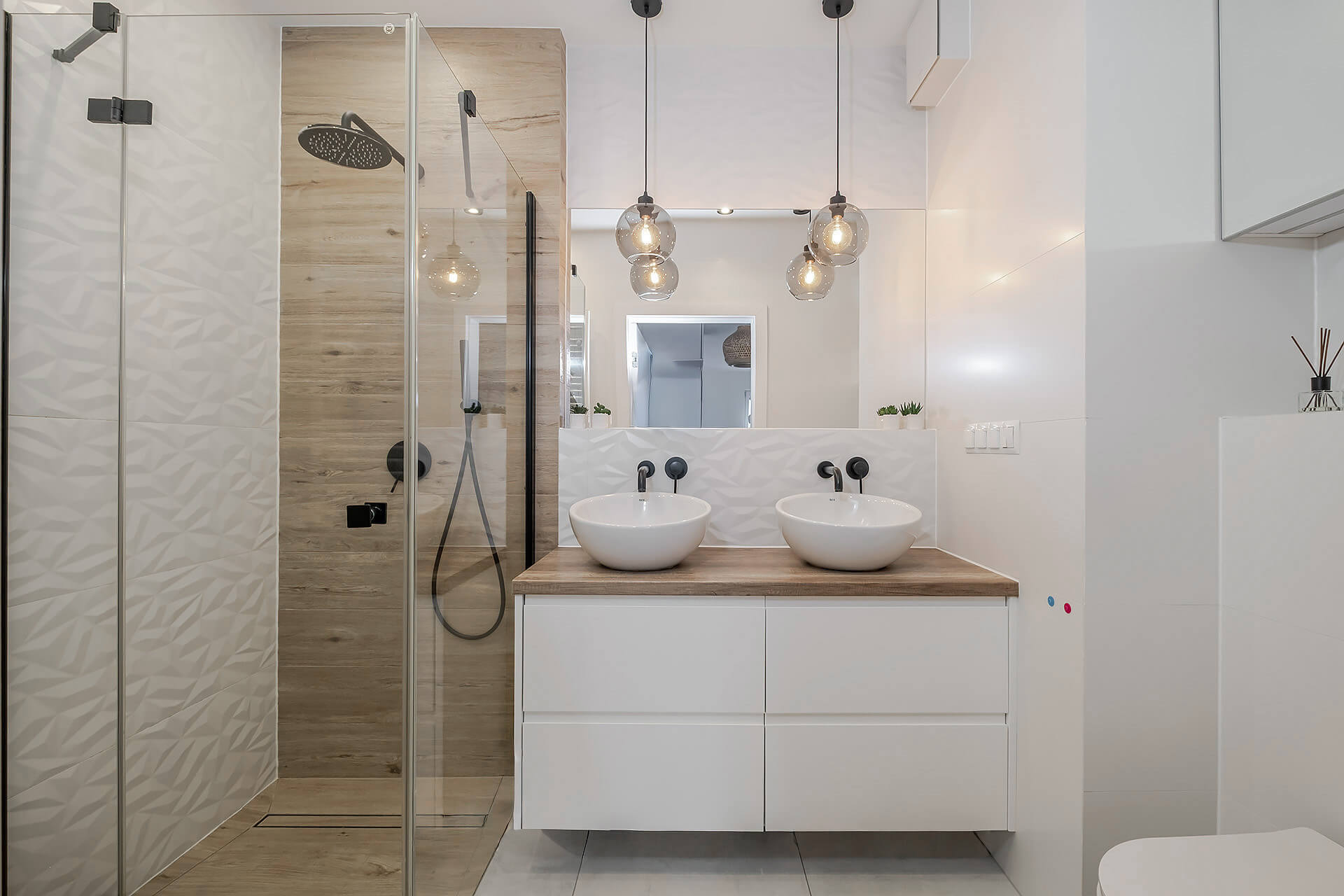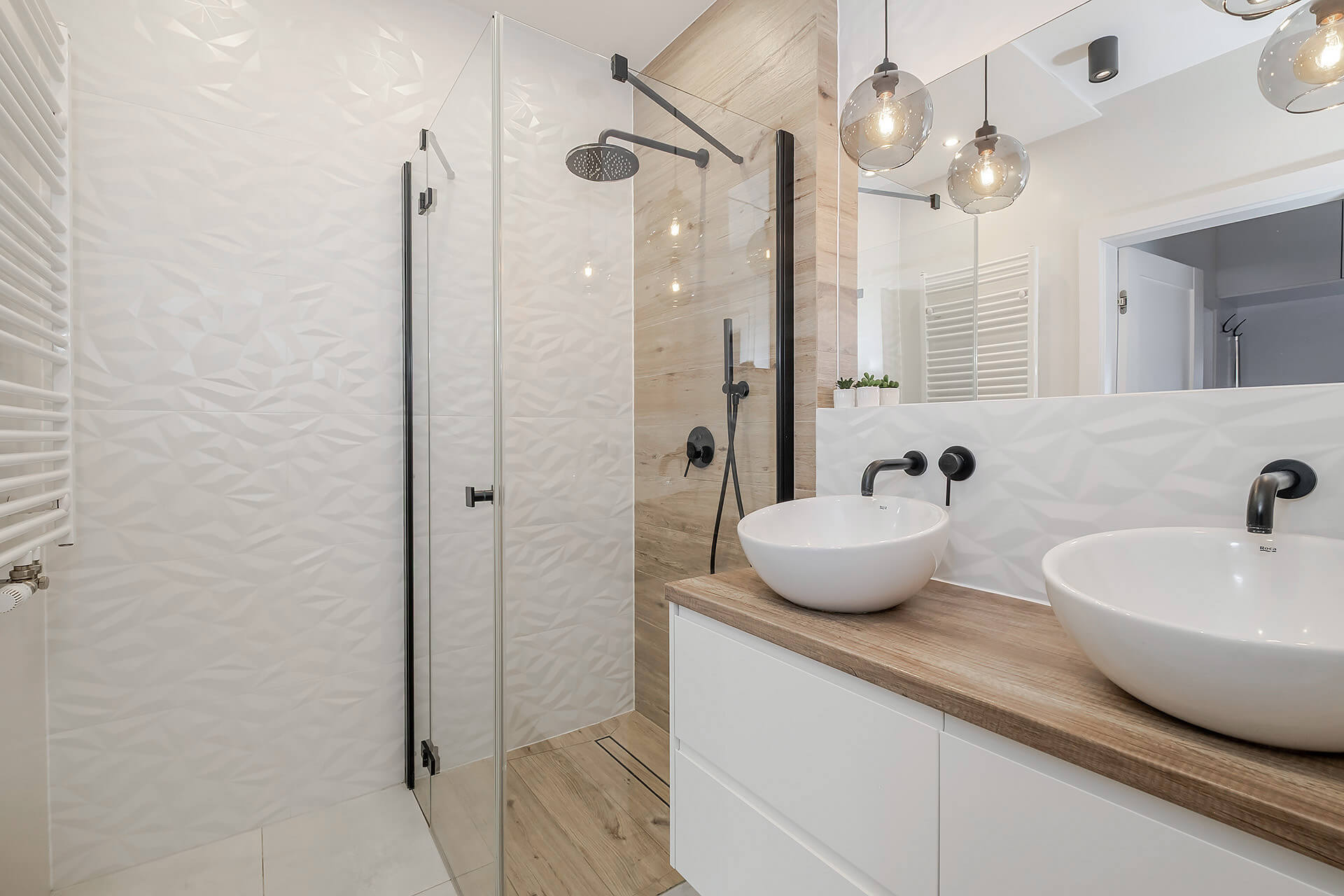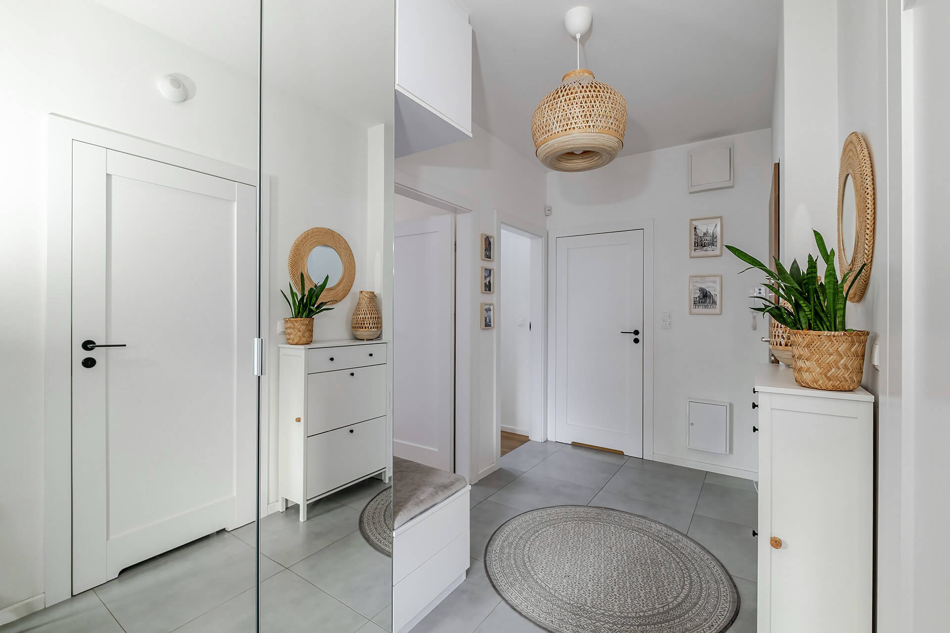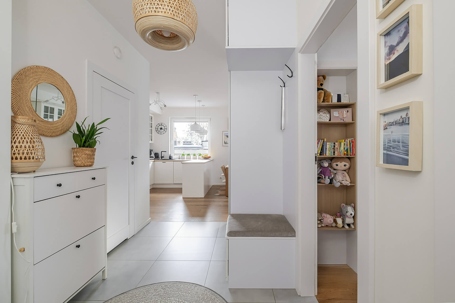 Mieszkanie zostało wykończone w jasnych, ciepłych barwach, z dębową deską na podłodze, która nadaje wnętrzu elegancji i naturalnego charakteru. Zabudowa kuchenna oraz szafy zostały wykonane na wymiar przez stolarza, a kuchnia wyposażona jest w wysokiej klasy sprzęt AGD marki Bosch. Dodatkowym atutem jest system alarmowy z powiadomieniami SMS.