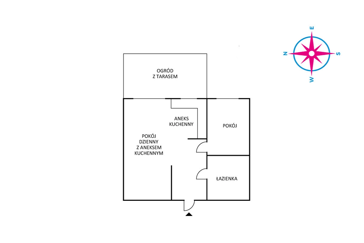 – pokój dzienny z aneksem kuchennym i wyjściem na ogródek,