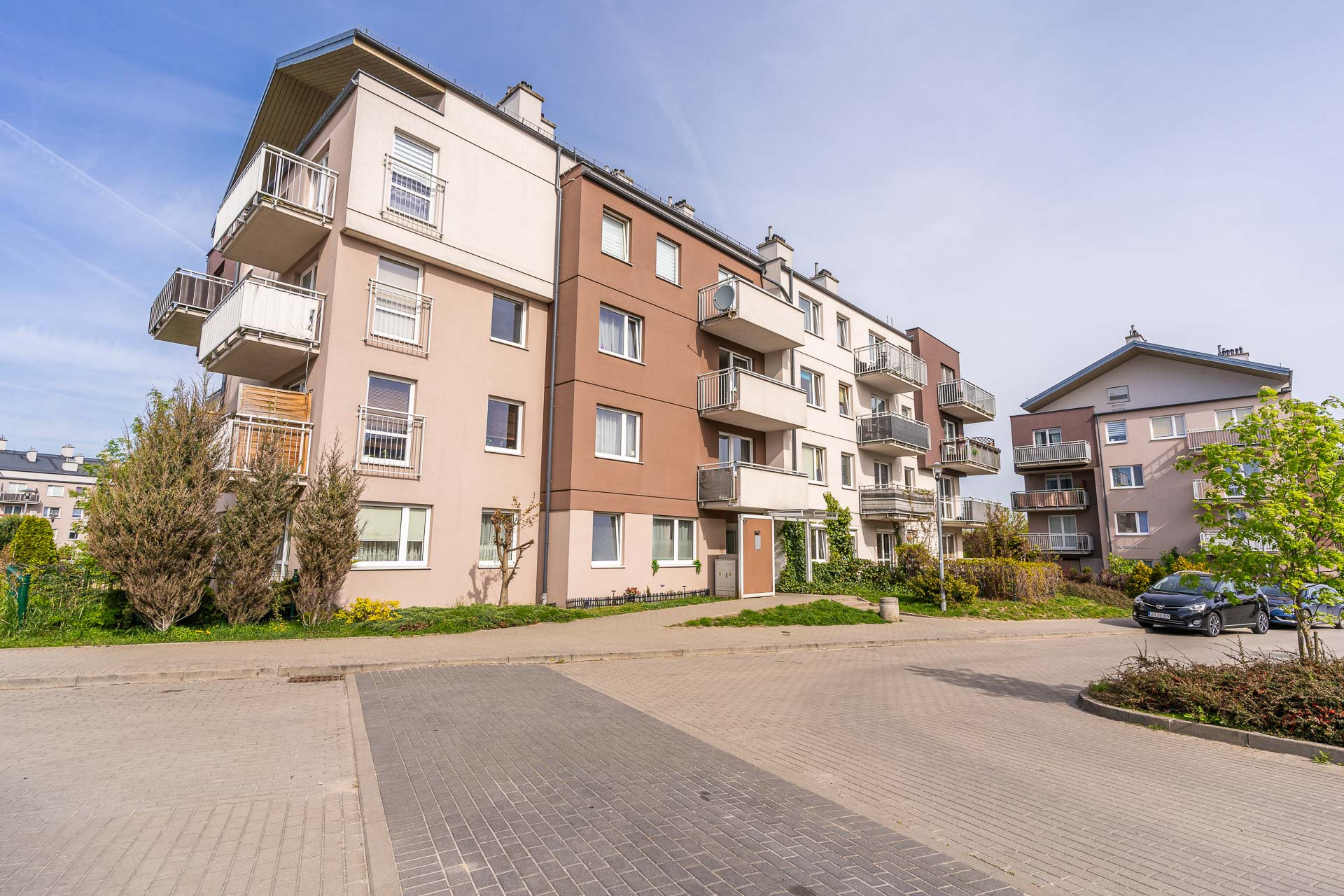 Do mieszkania przynależy ponadto komórka lokatorska (ok. 2,5 m2). Miejsca postojowe znajdują się przy posesji za szlabanem – udogodnienia zawarte w cenie.