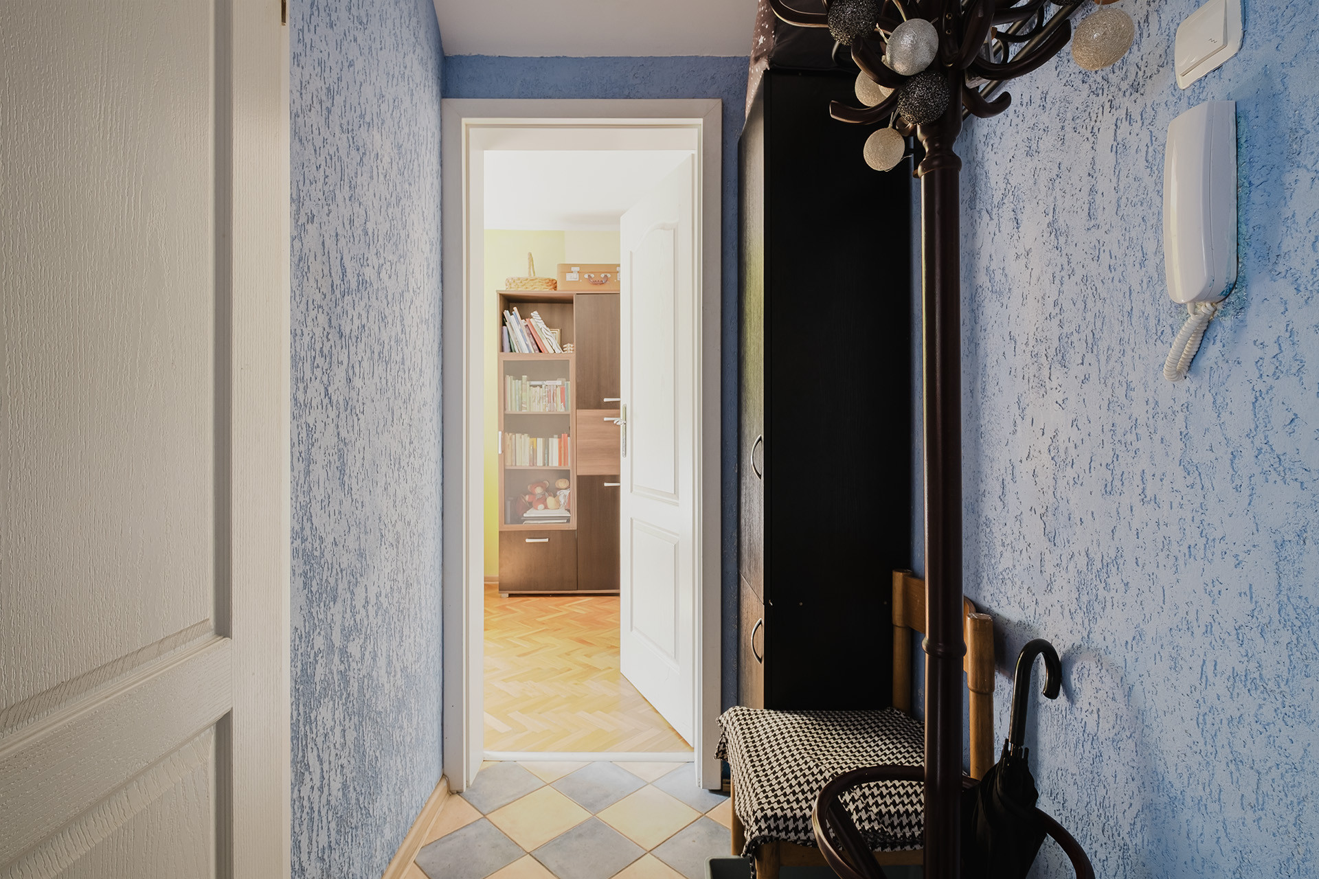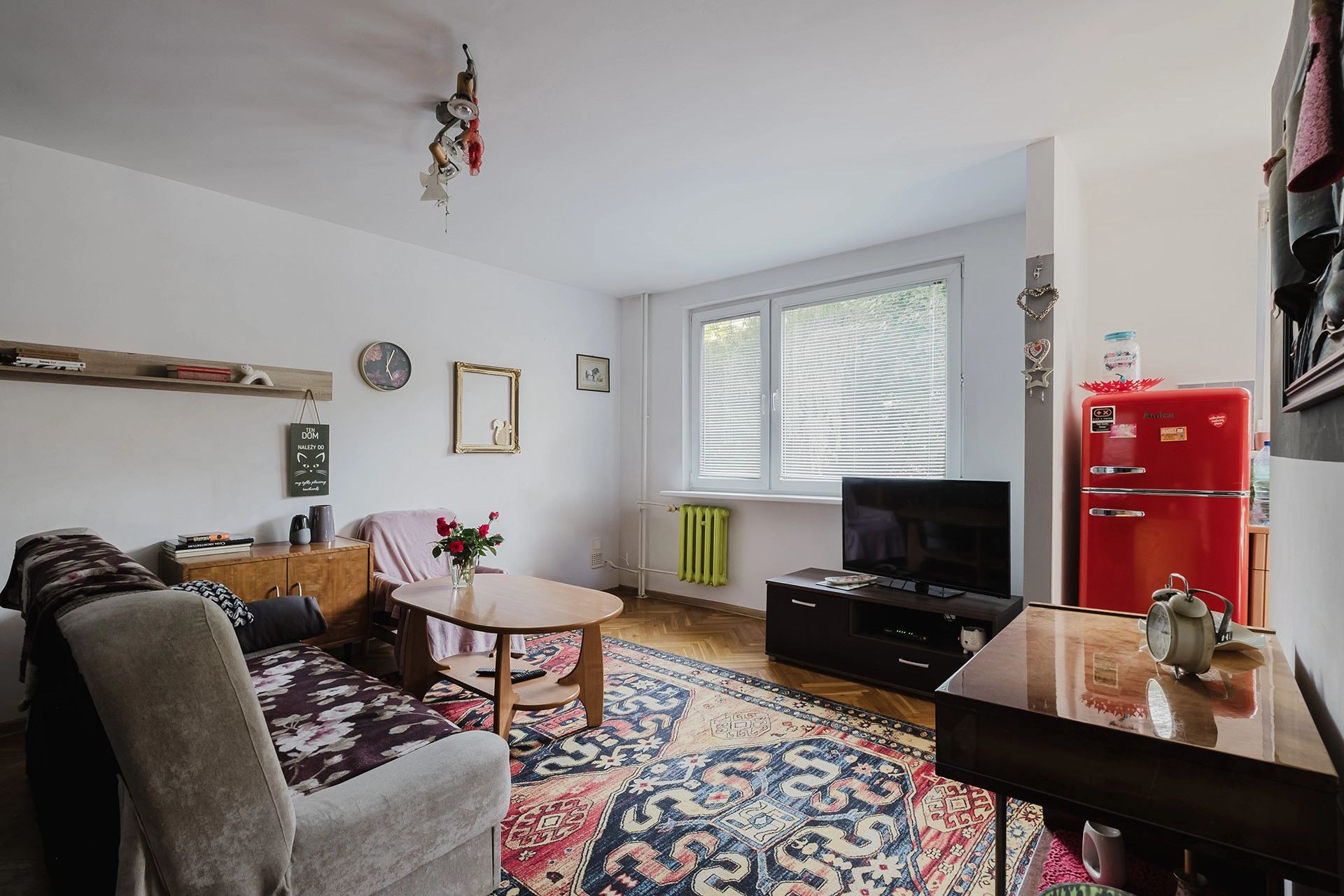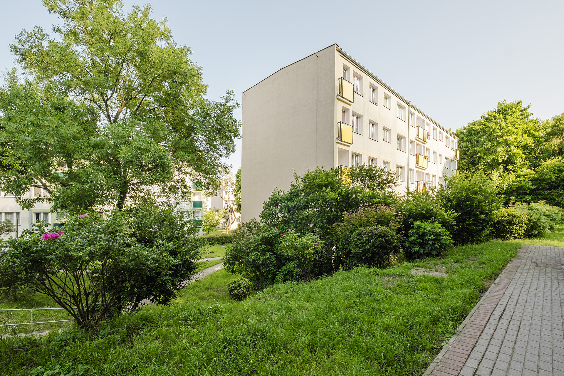 Mieszkanie o powierzchni 35 m² usytuowane jest na 2. piętrze w niskim, czteropiętrowym bloku. Składa się z: