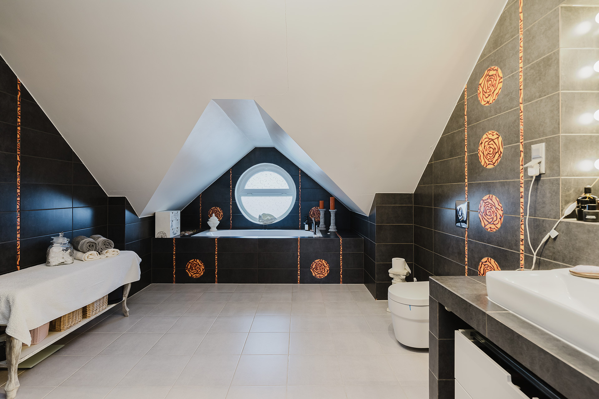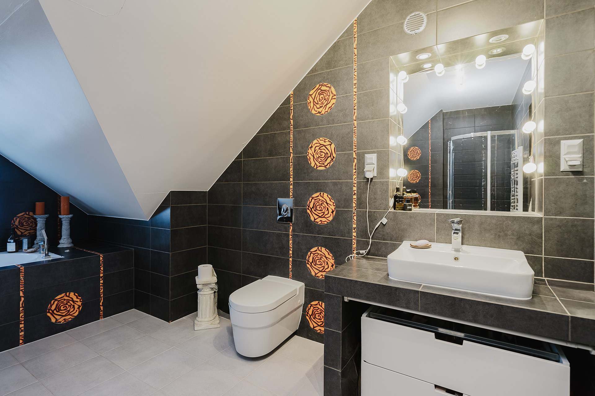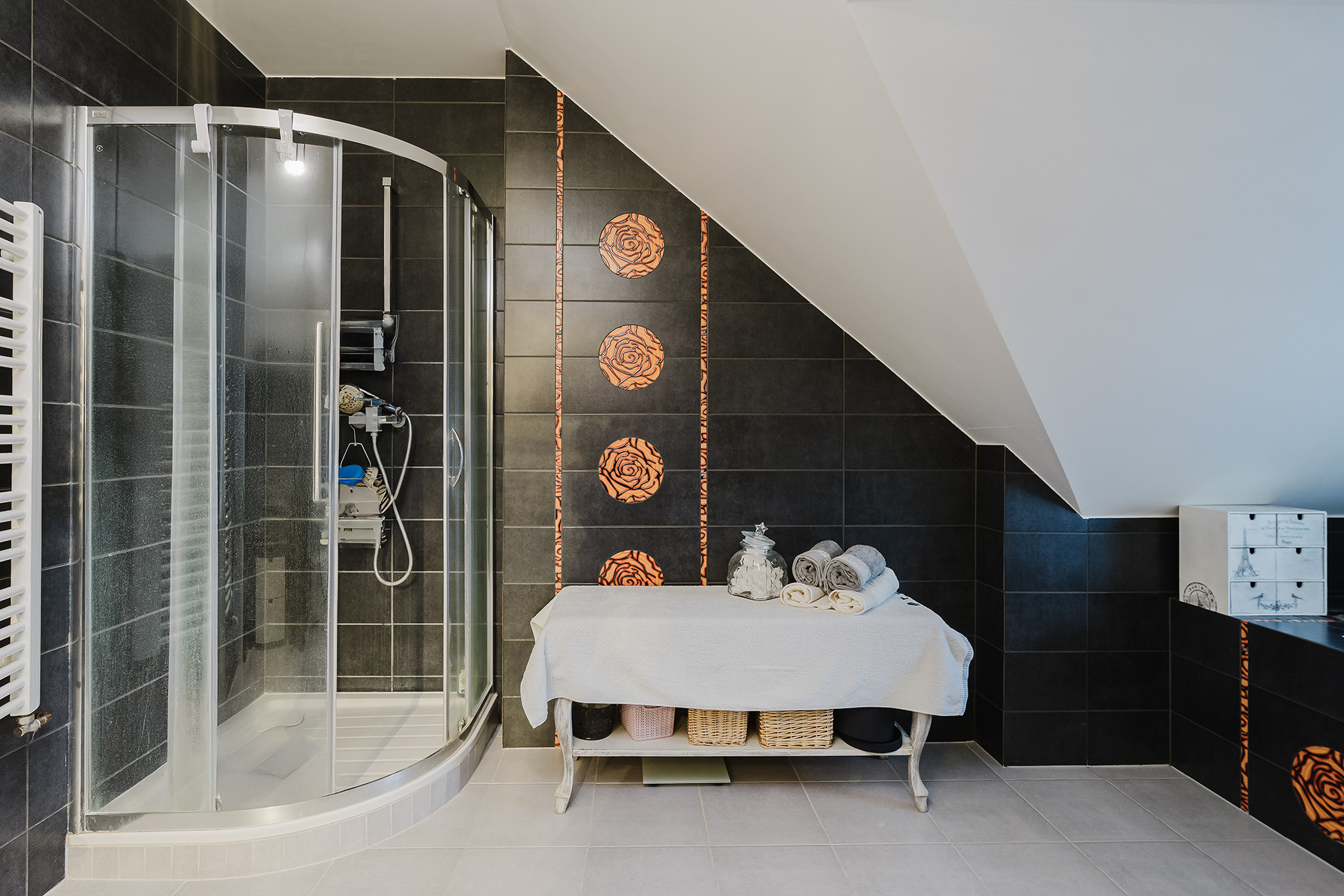 – łazienka z wanną i prysznicem.