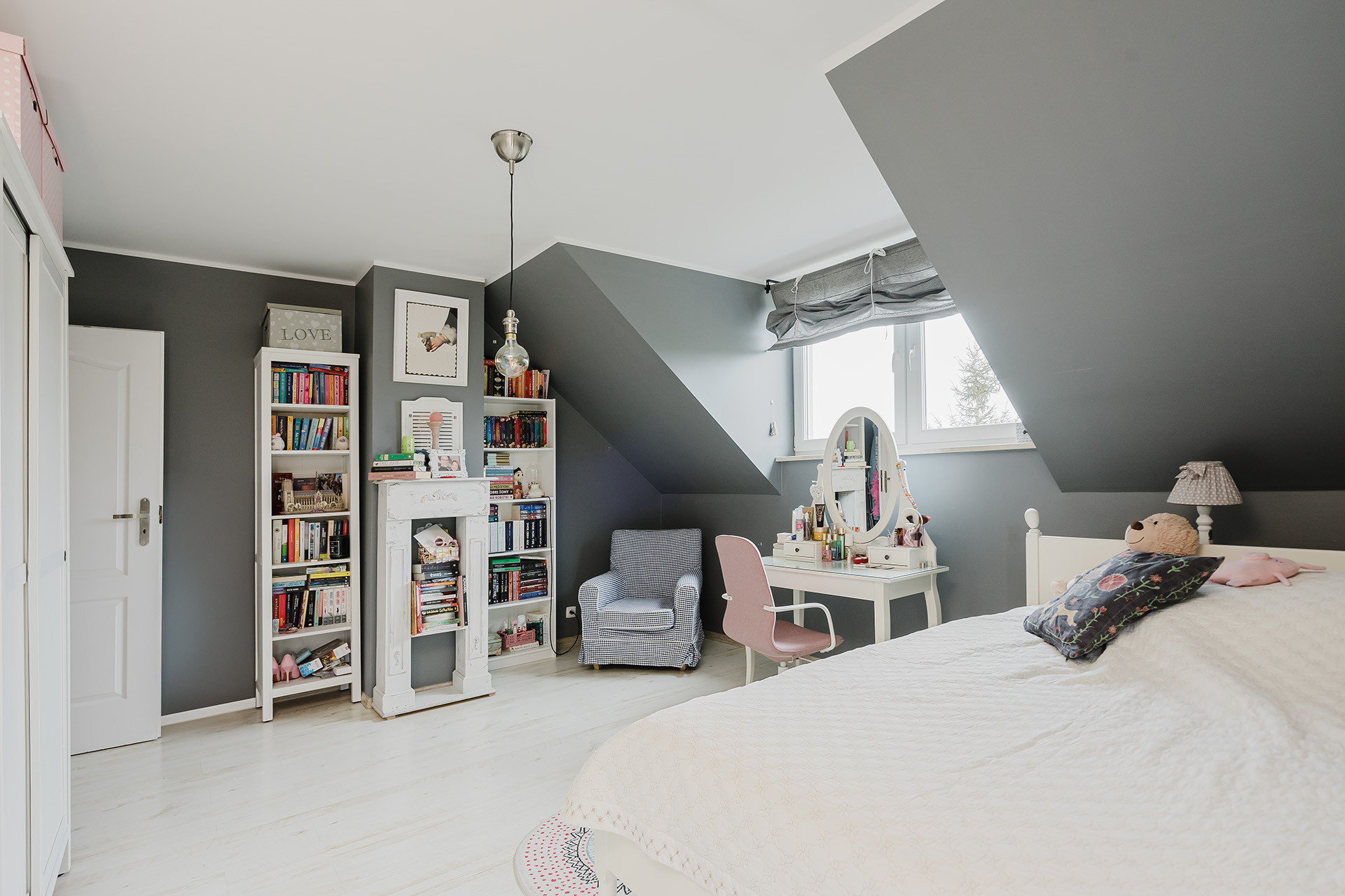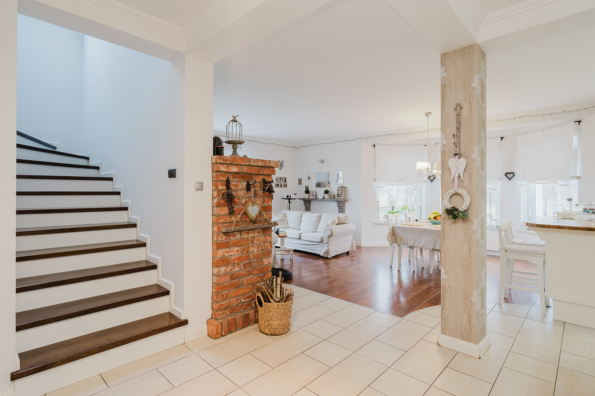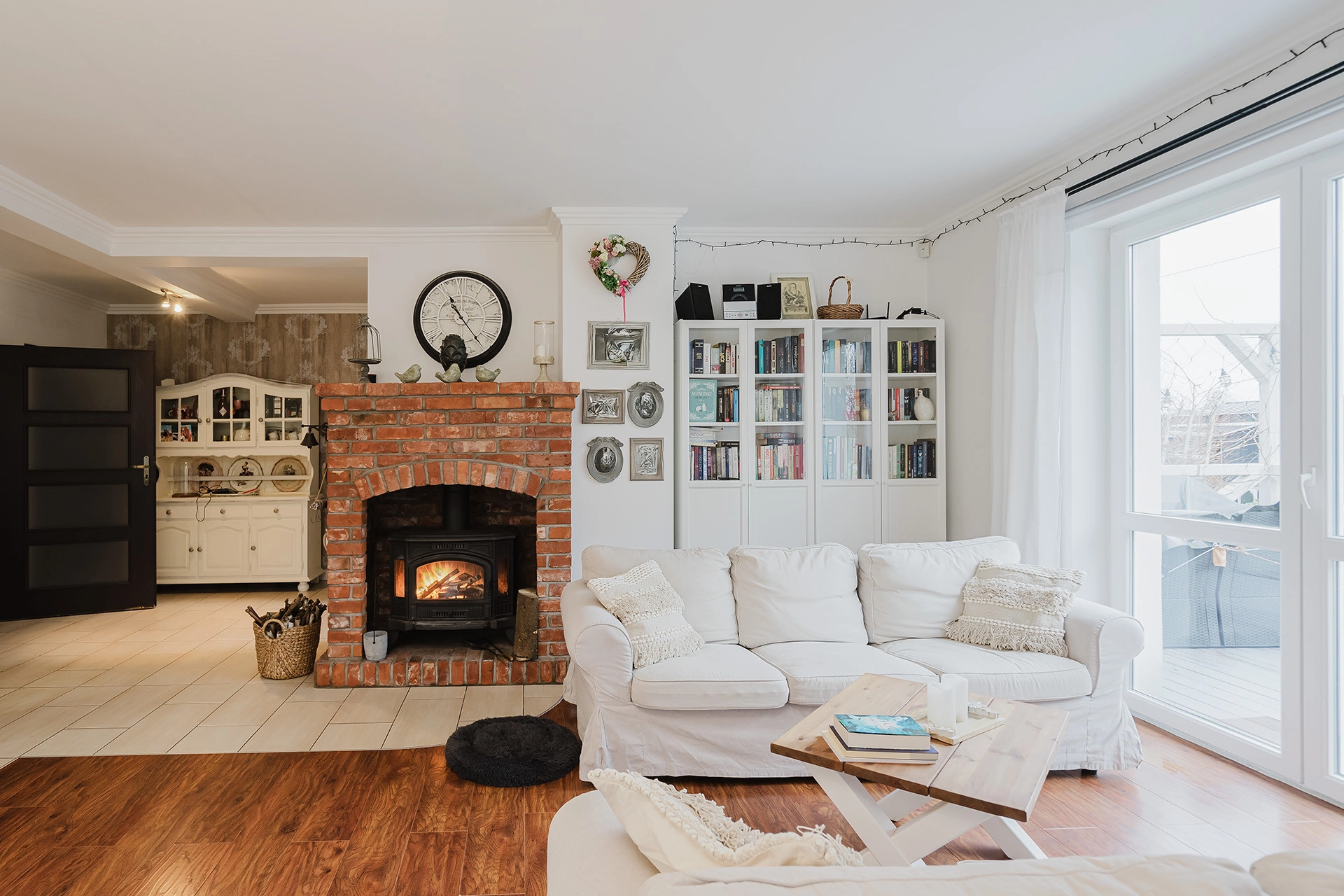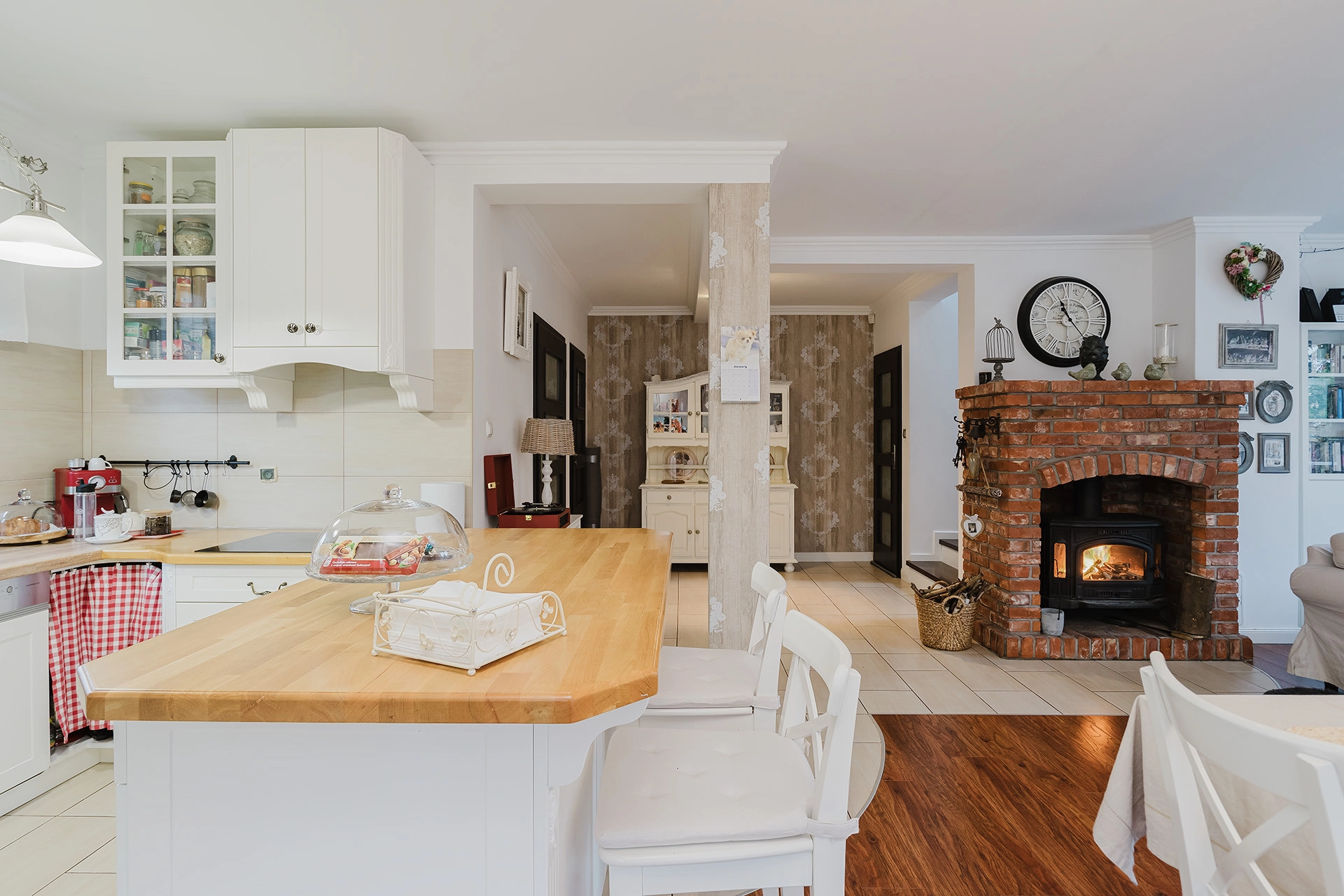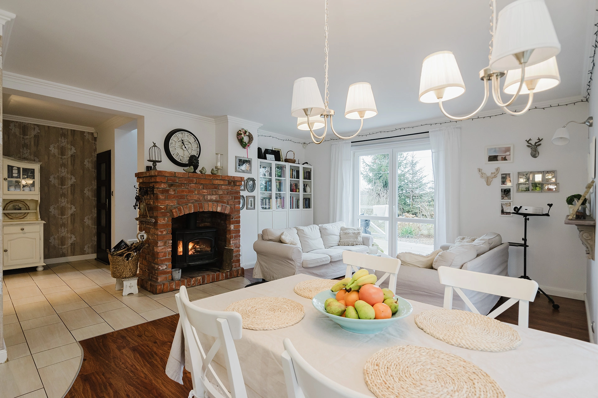 – przestronny salon z kominkiem,