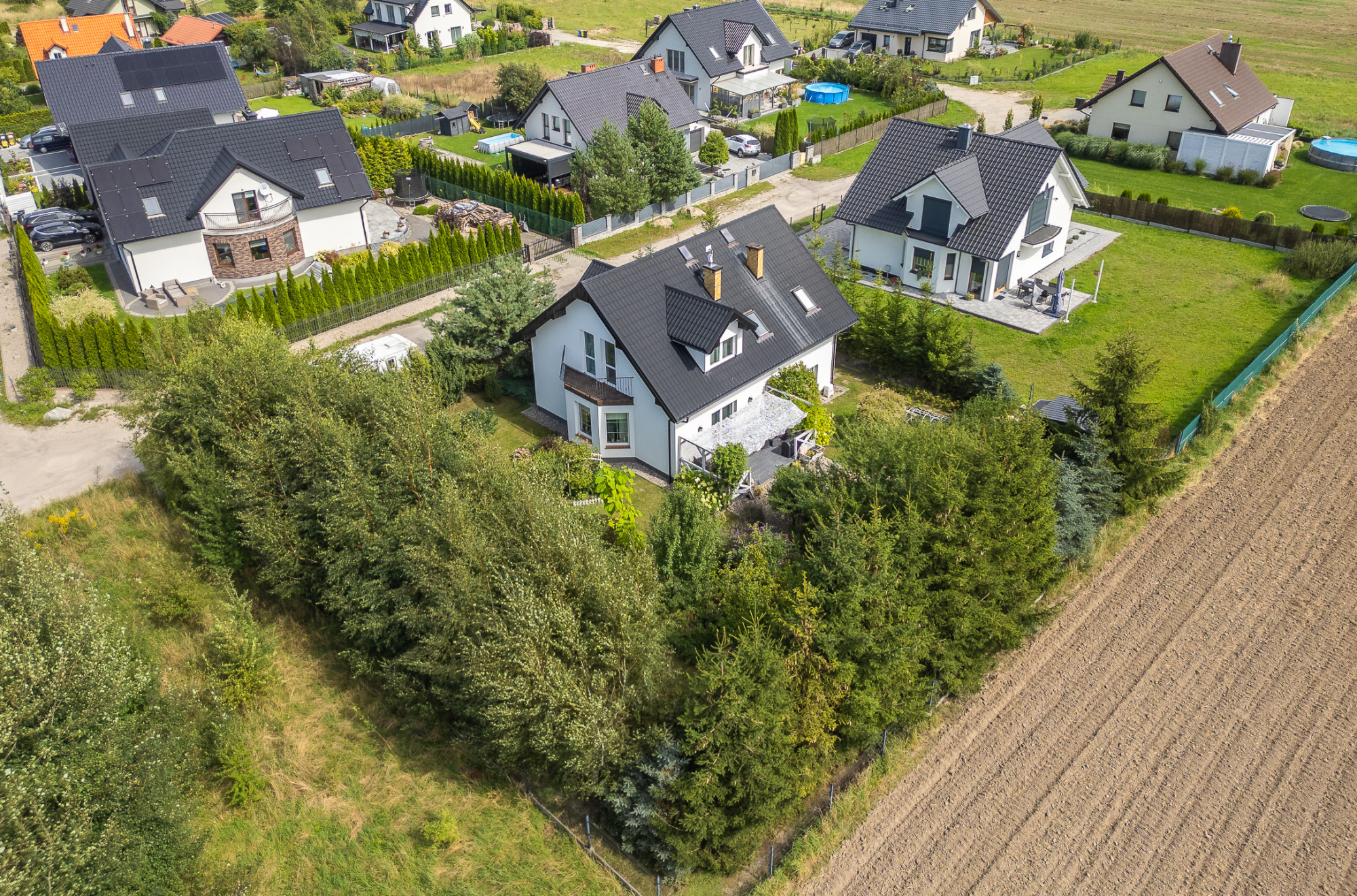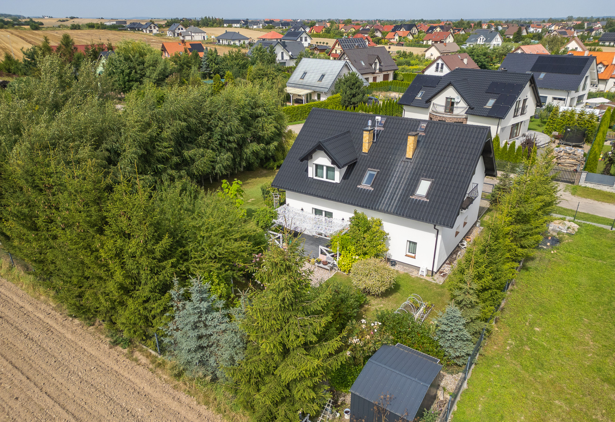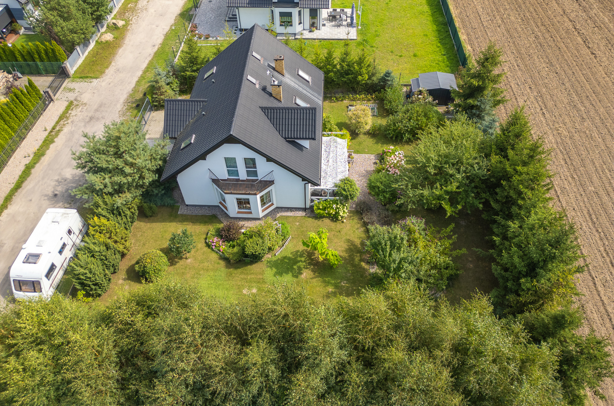 Ogrodzona działka o powierzchni 900 m² została starannie zagospodarowana. Ogród wypełniony jest kwitnącymi krzewami oraz drzewami iglastymi. Znajduje się tu także altanka, która stanowi idealne miejsce do relaksu i spędzania czasu na świeżym powietrzu. Woda ogrzewana za pomocą bojlera elektrycznego.