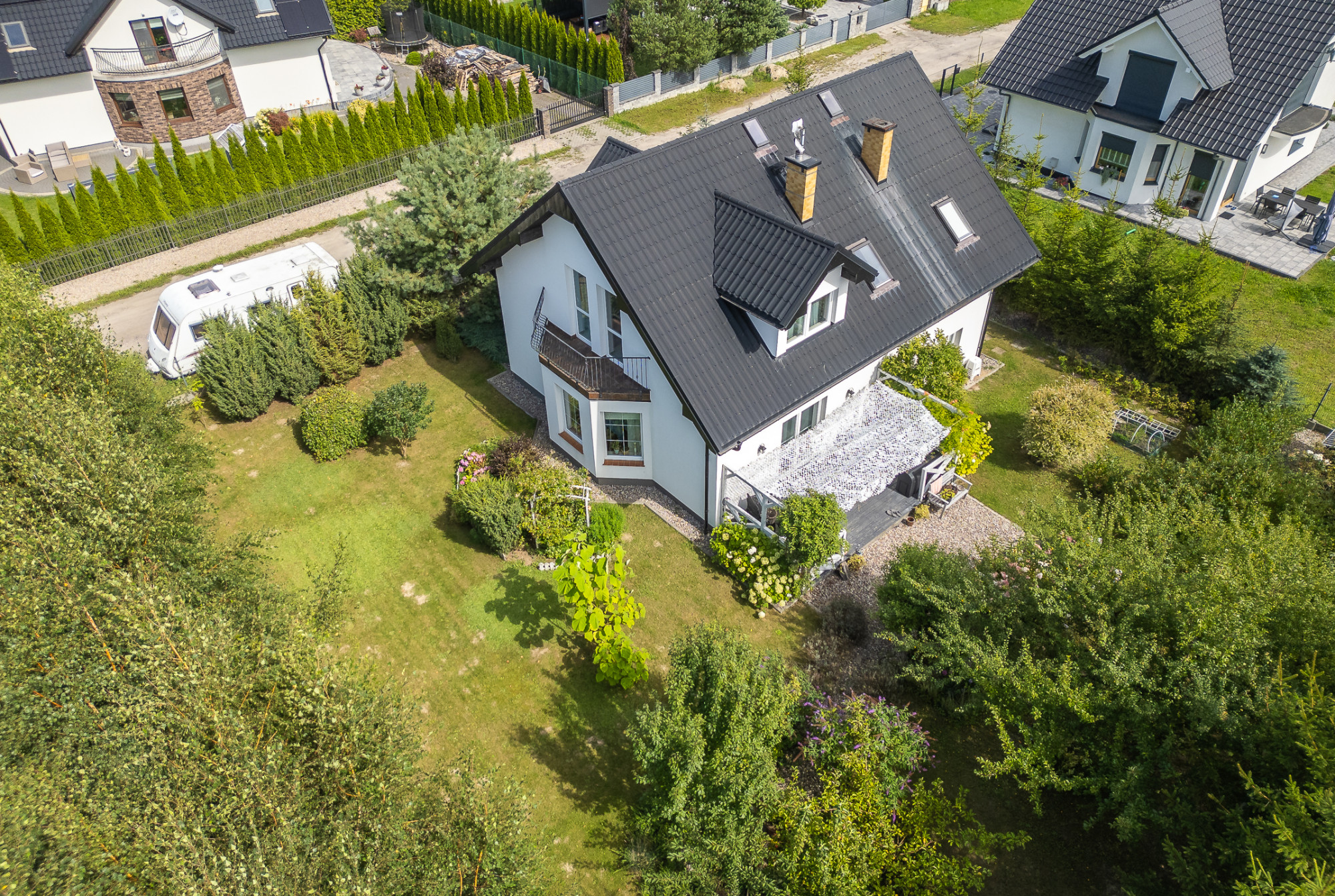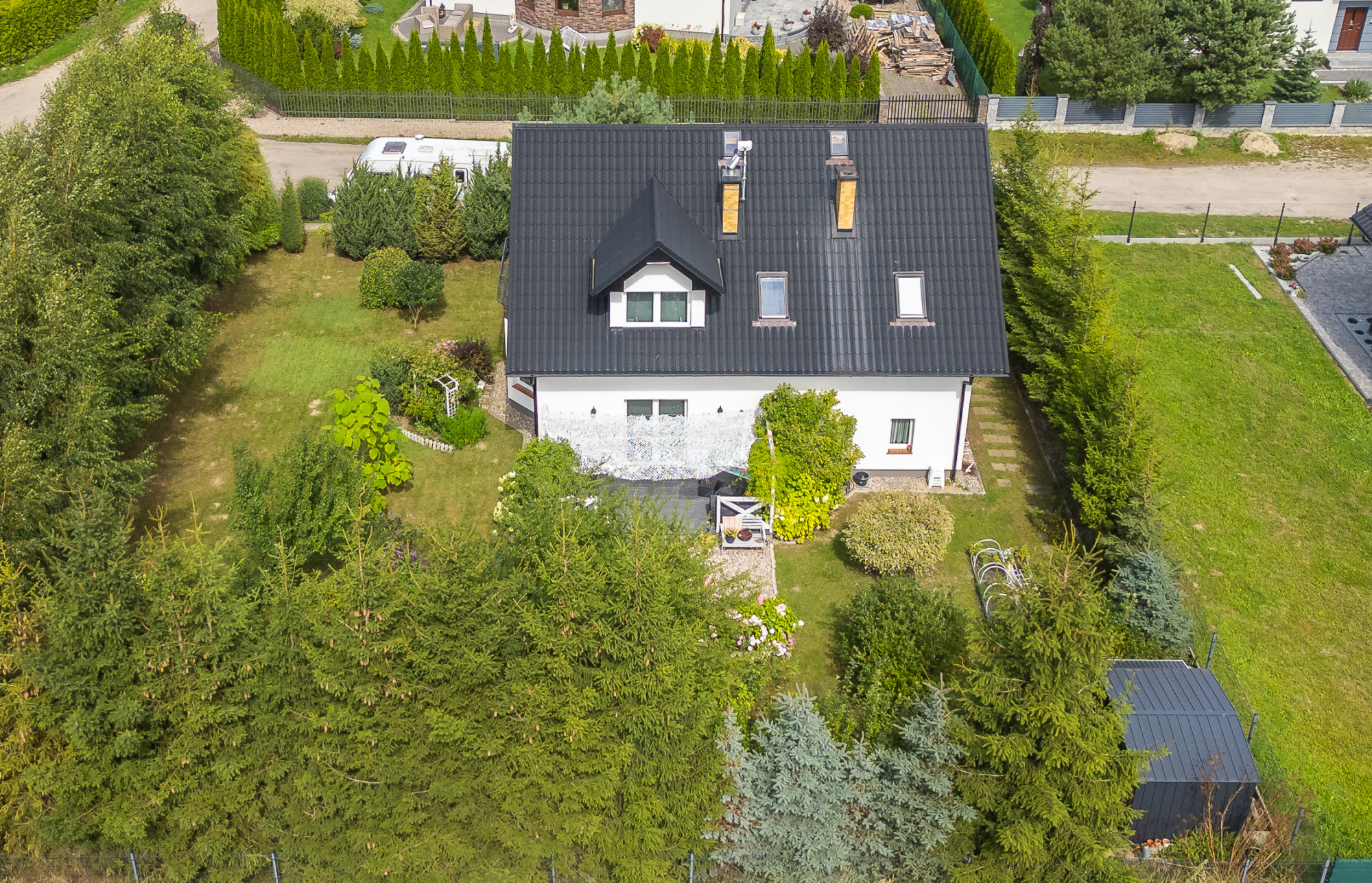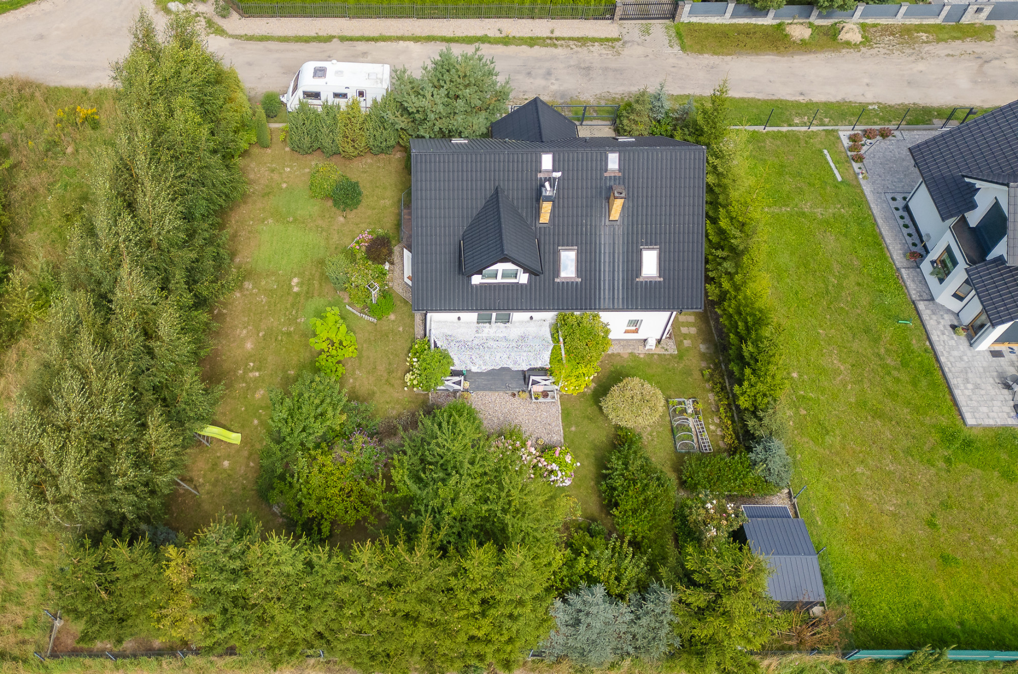 Ogrodzona działka o powierzchni 900 m² została starannie zagospodarowana. Ogród wypełniony jest kwitnącymi krzewami oraz drzewami iglastymi. Znajduje się tu także altanka, która stanowi idealne miejsce do relaksu i spędzania czasu na świeżym powietrzu. Woda ogrzewana za pomocą bojlera elektrycznego.
