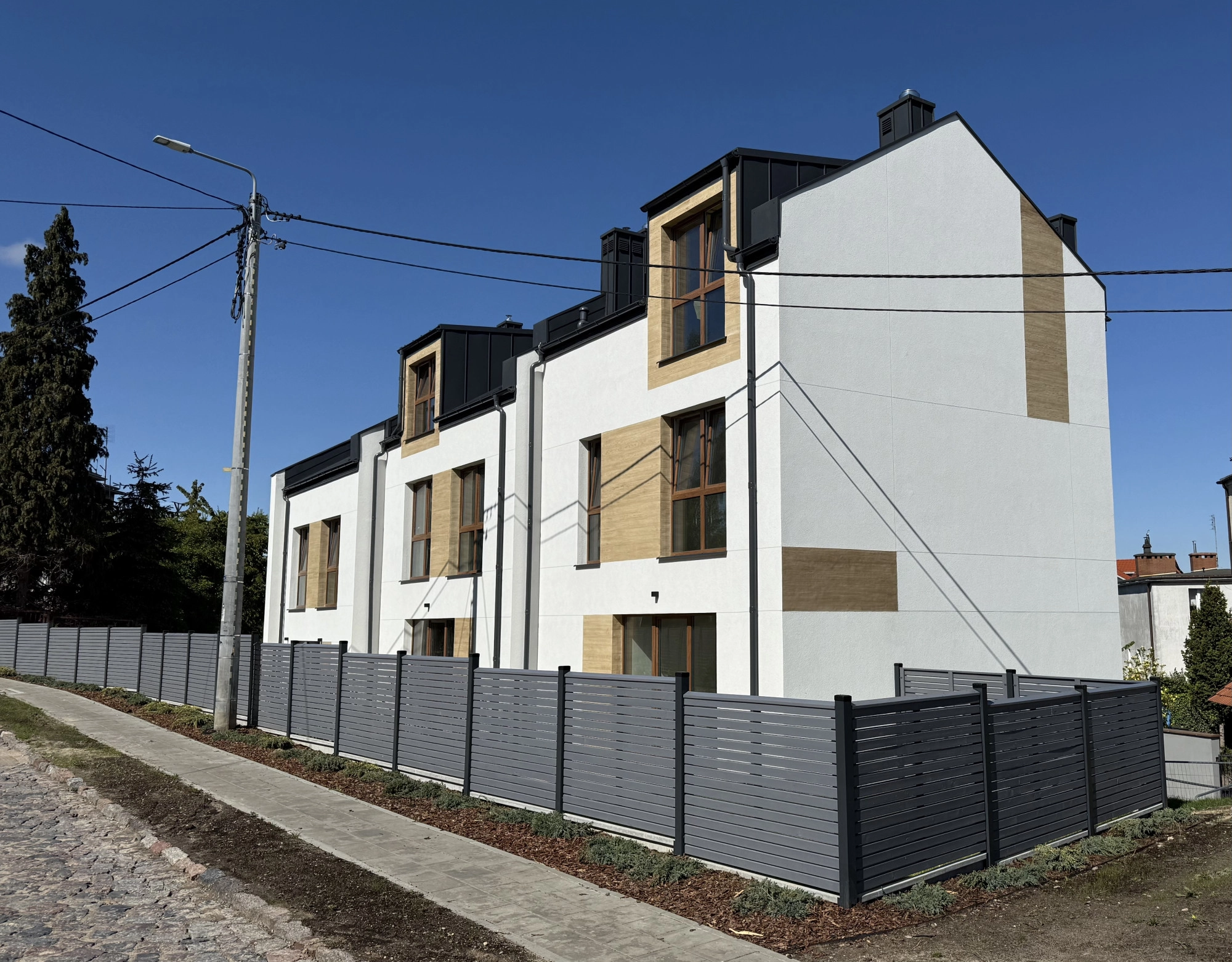 Inwestycja stanowi trzy lokale mieszkalne w zabudowie szeregowej.