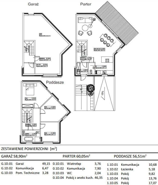 – garaż na 2 samochody (jeden za drugim) o pow. ok. 49 m2,
