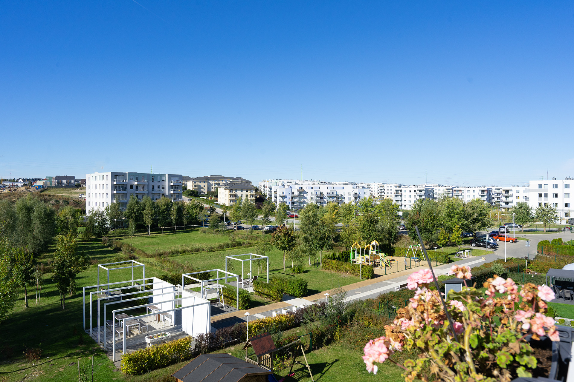 Osiedle kameralne z nowoczesną architekturą ze strefą rekreacyjną dla mieszkańców.