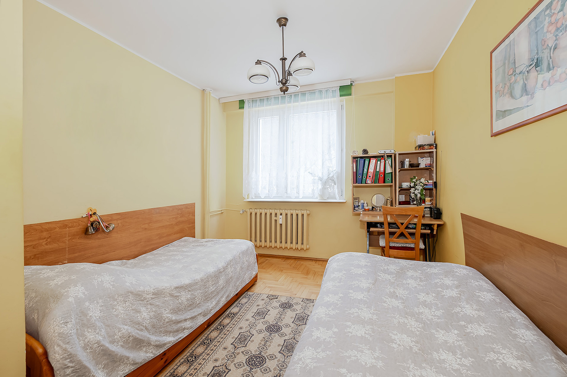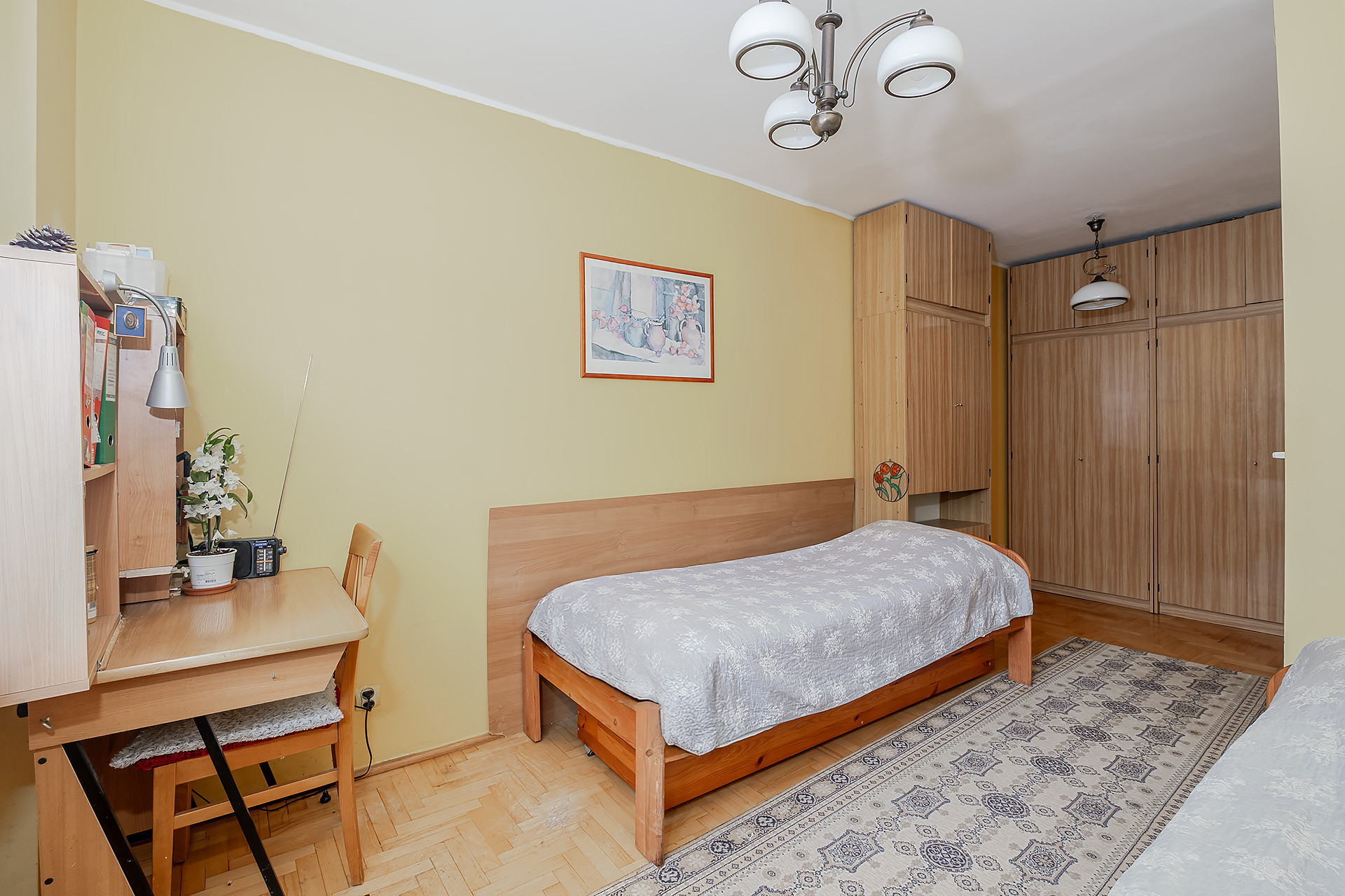 – pokoju/dużej sypialni (połączone dwa pokoje – łatwa możliwość powrotu do pierwotnego układu) o pow. ok. 16 m2,