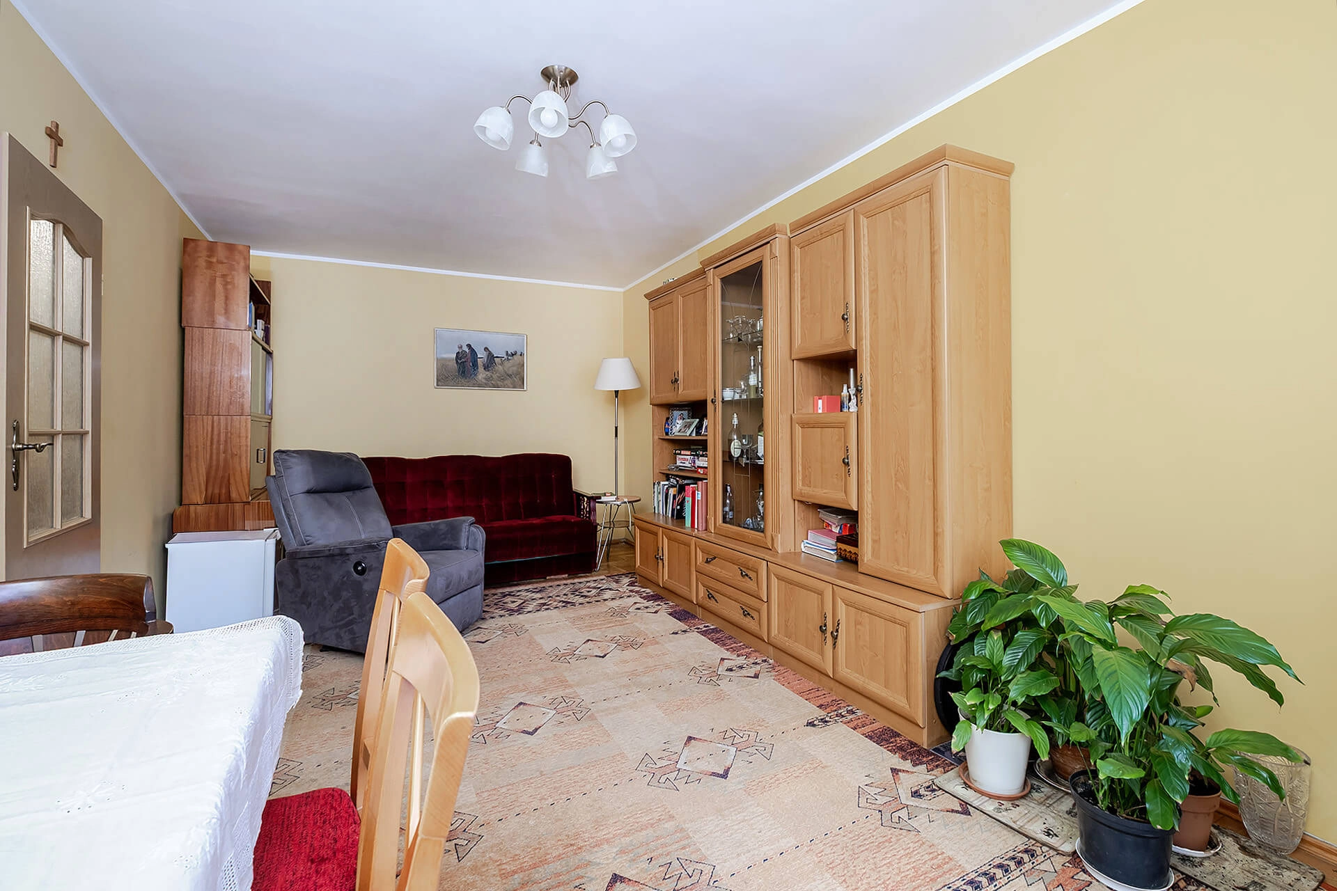 – pokoju/dużej sypialni (połączone dwa pokoje – łatwa możliwość powrotu do pierwotnego układu) o pow. ok. 16 m2,