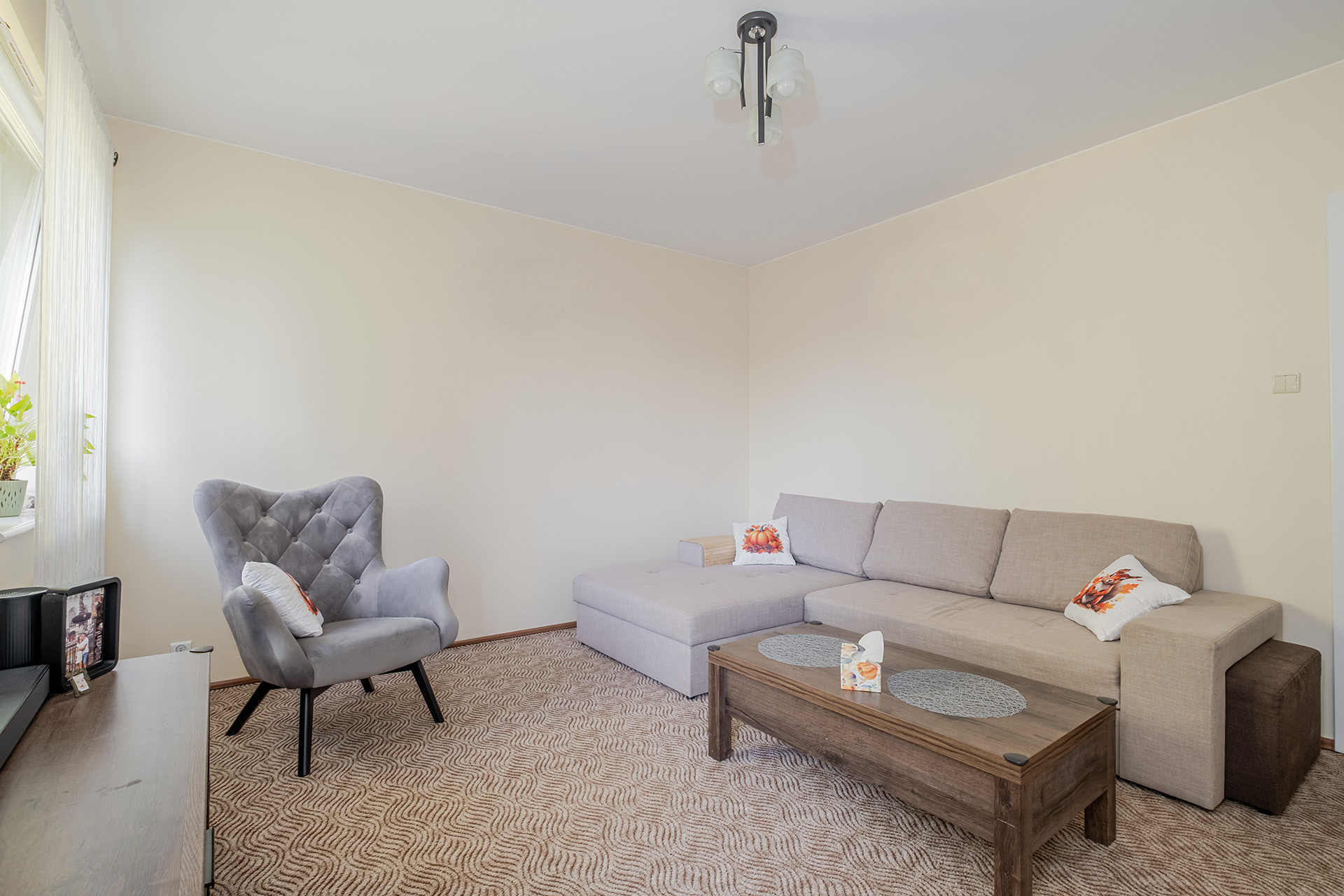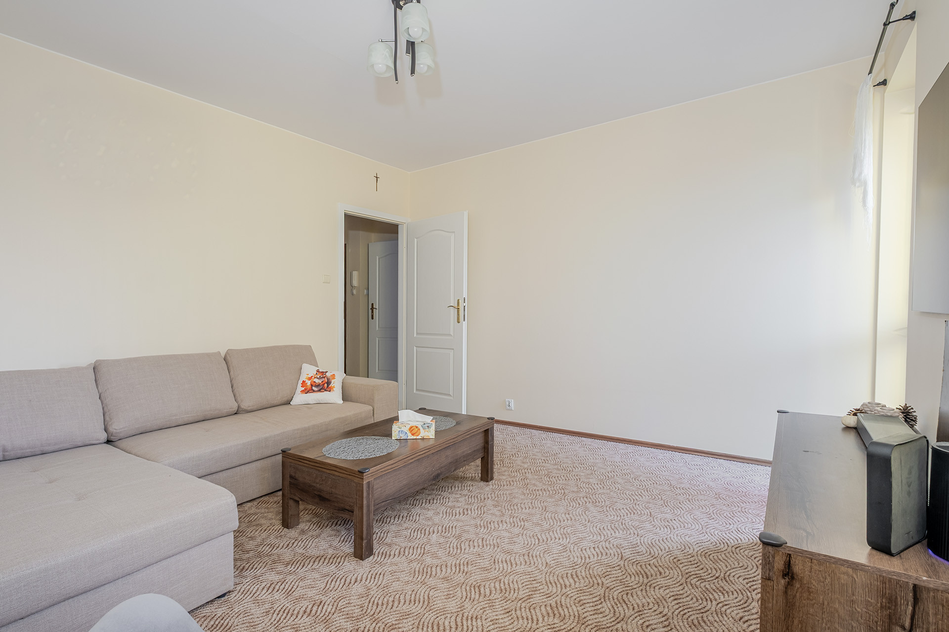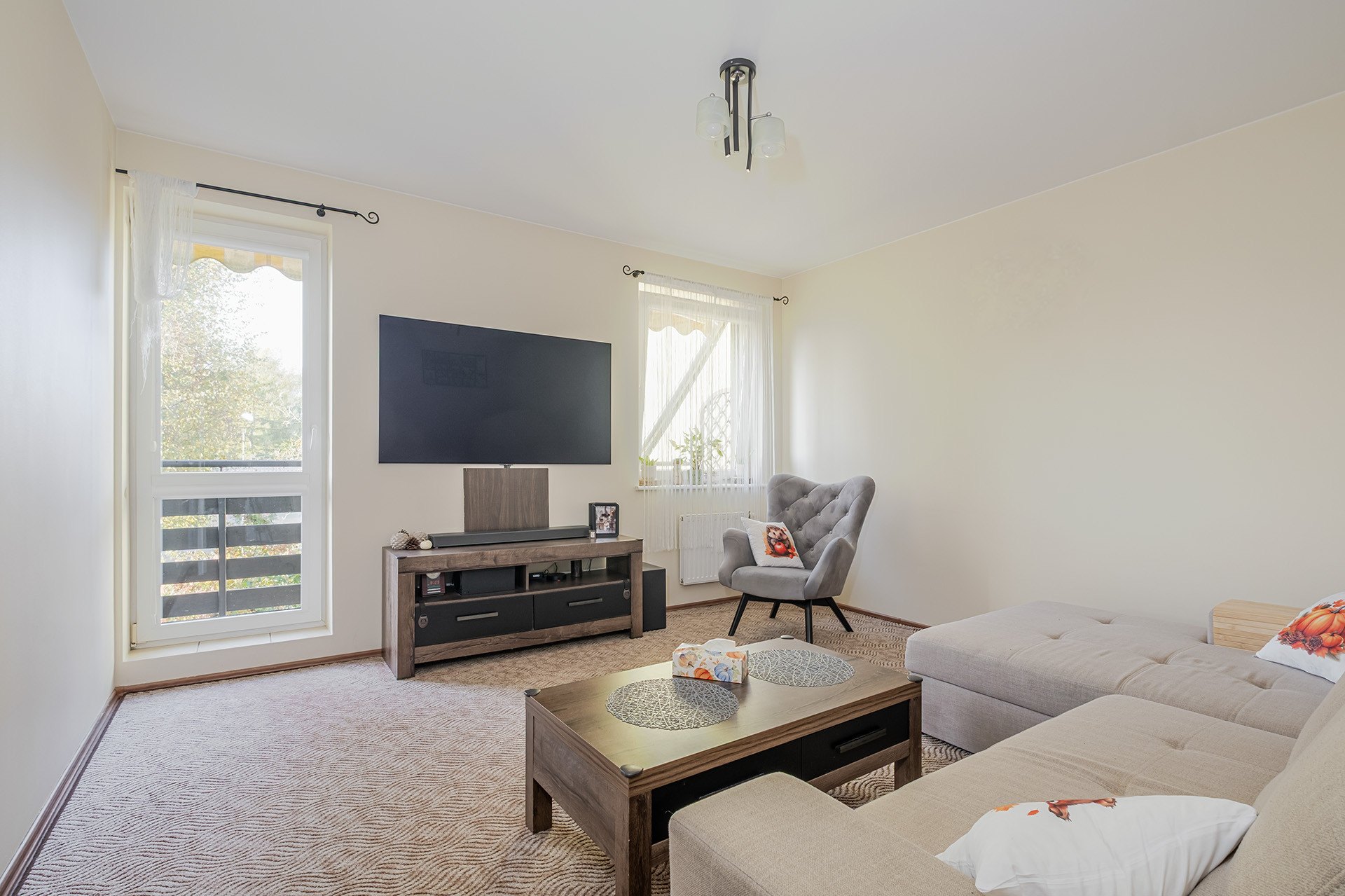 salon z wyjściem na balkon,