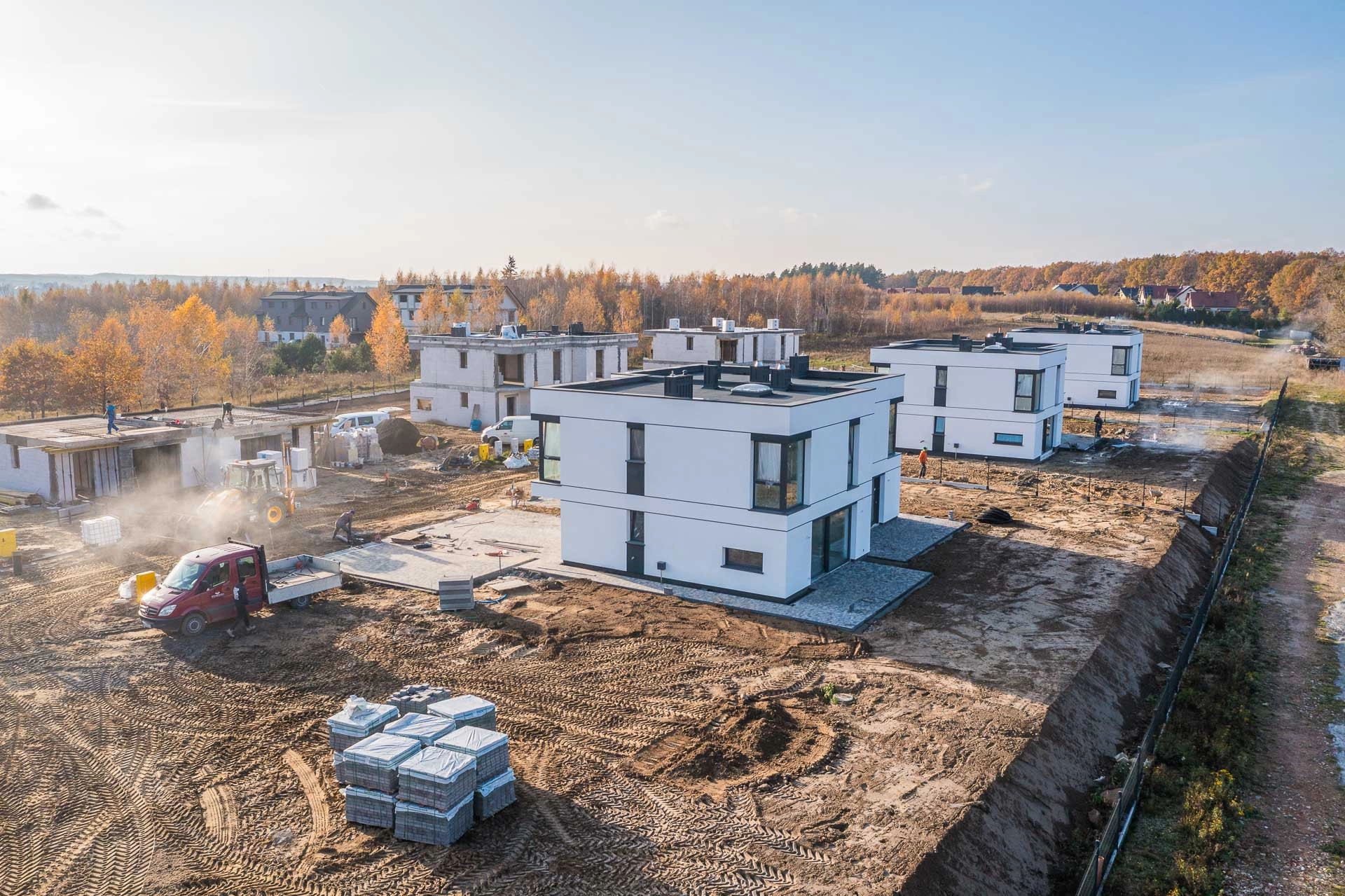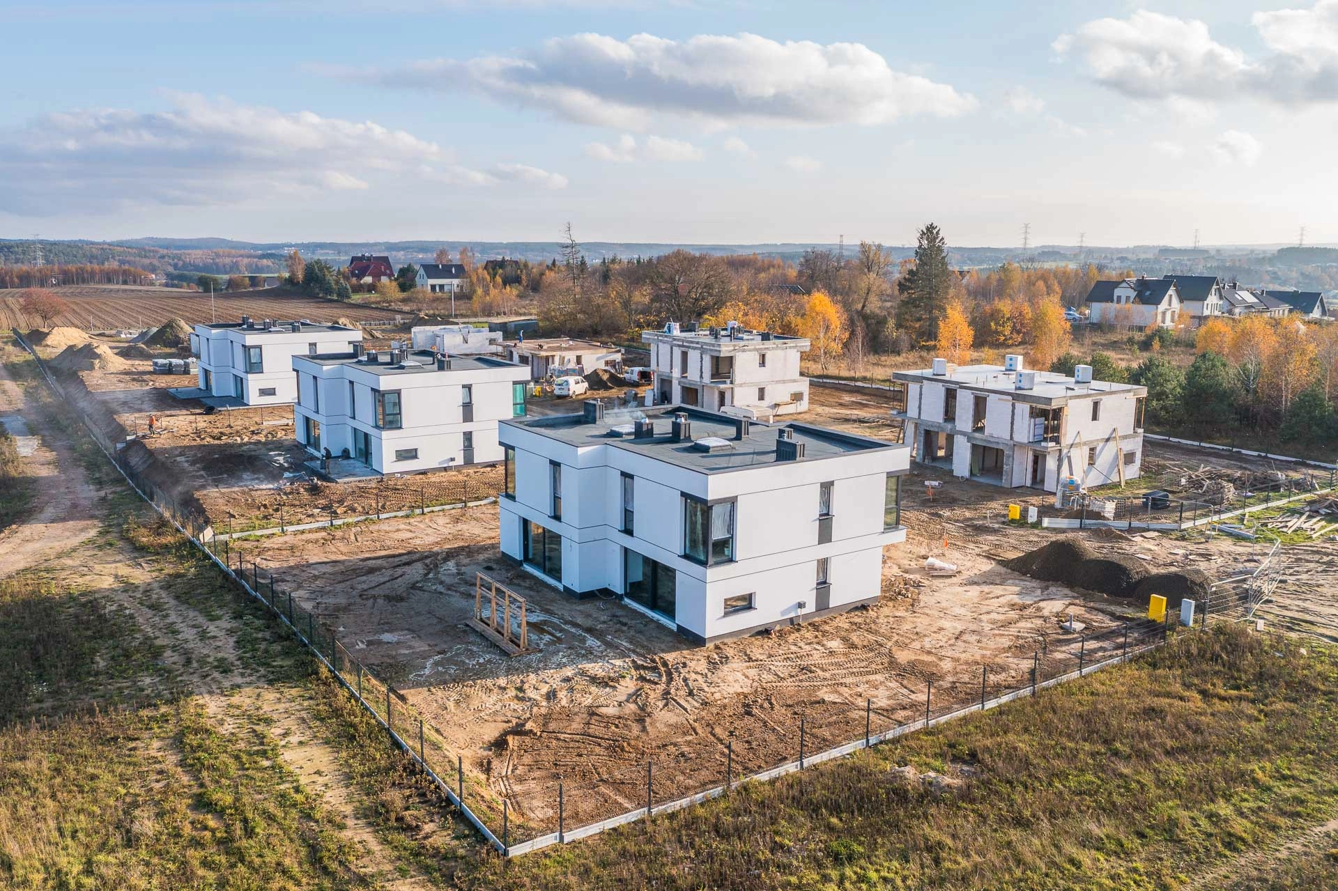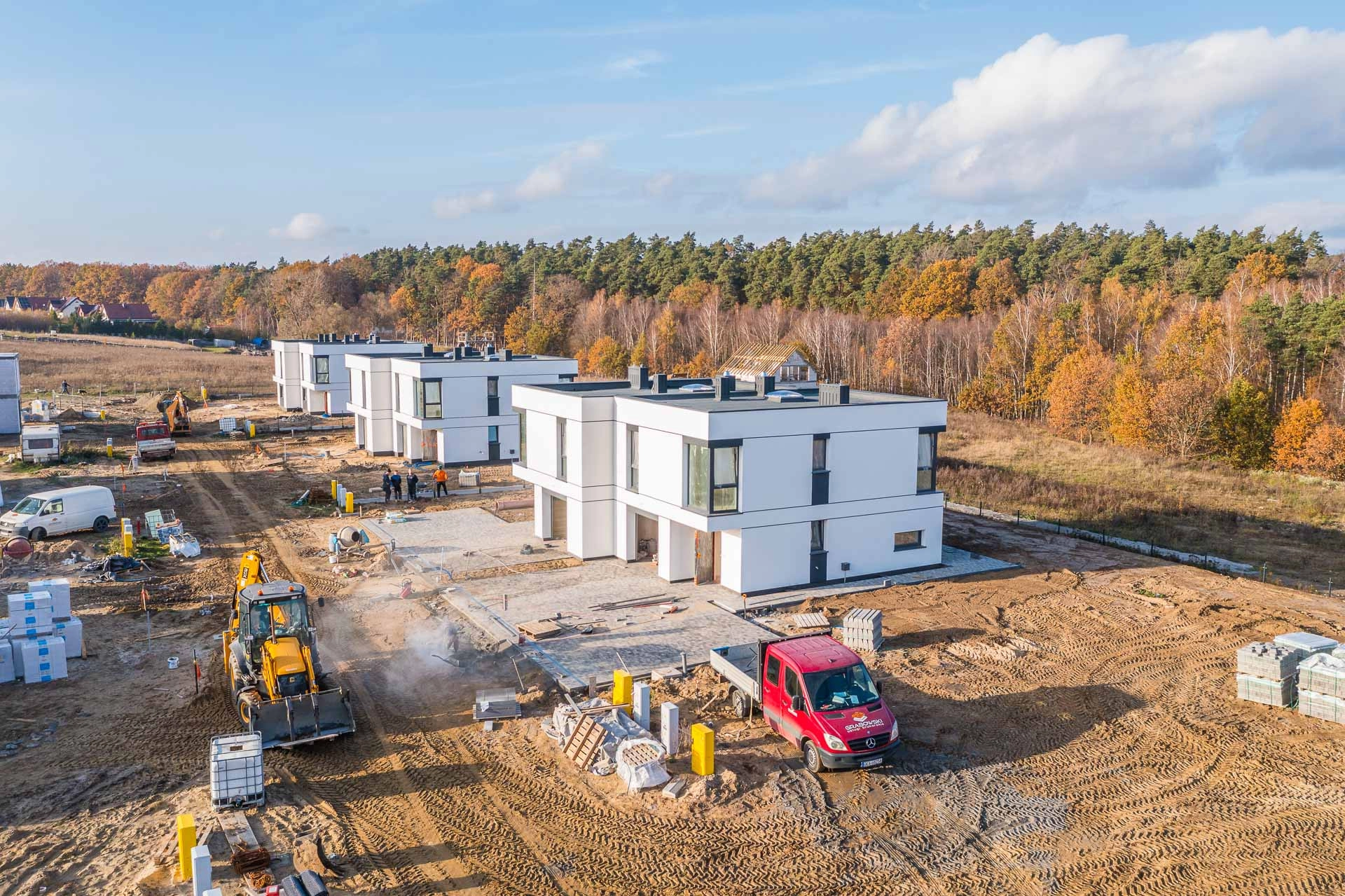 Osiedle budynków w zabudowie bliźniaczej przy ulicy Jarzębinowej w Lniskach.