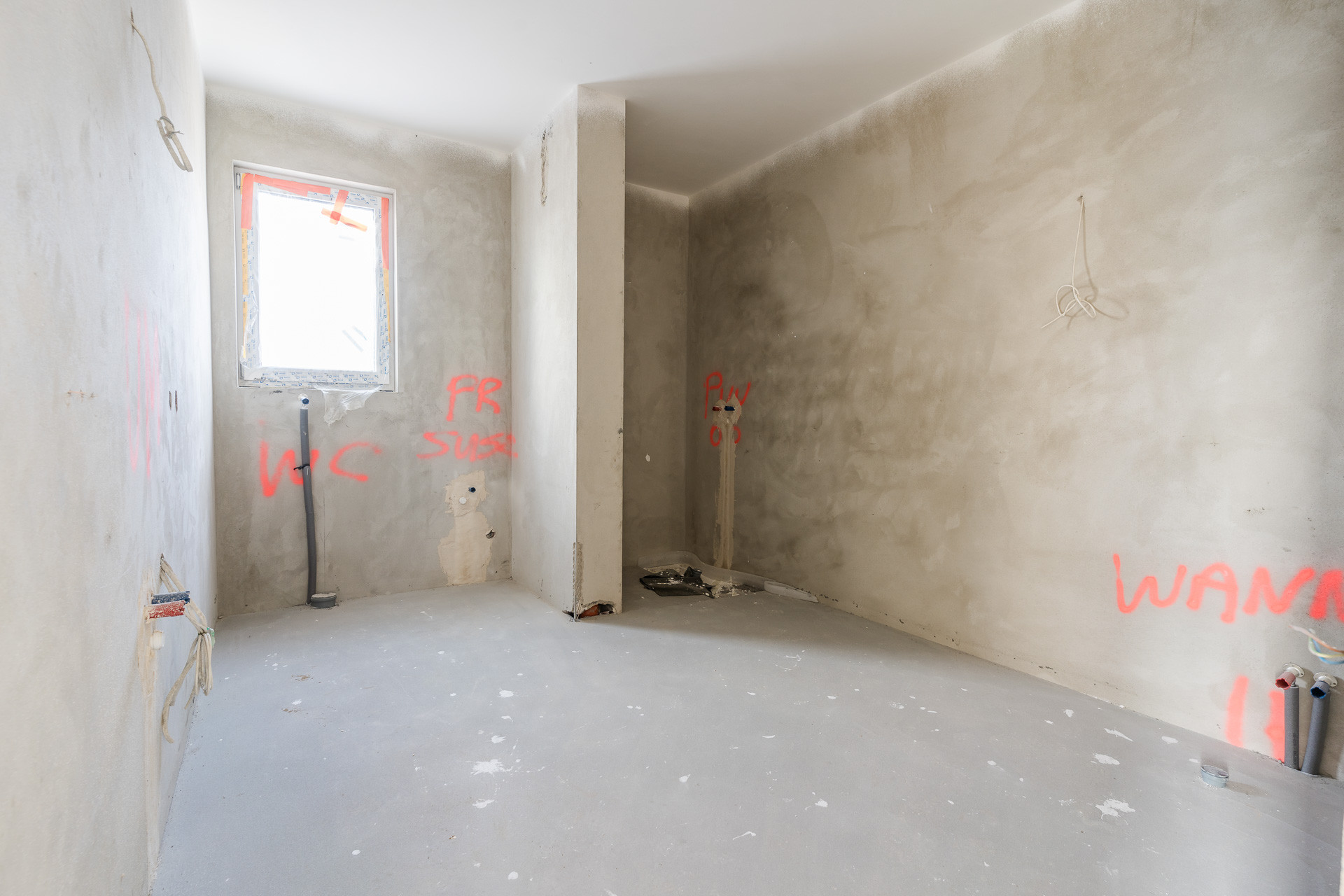 podłogi na piętrze – izolowane styropianem gr. 5 cm, pokryte wylewką betonową