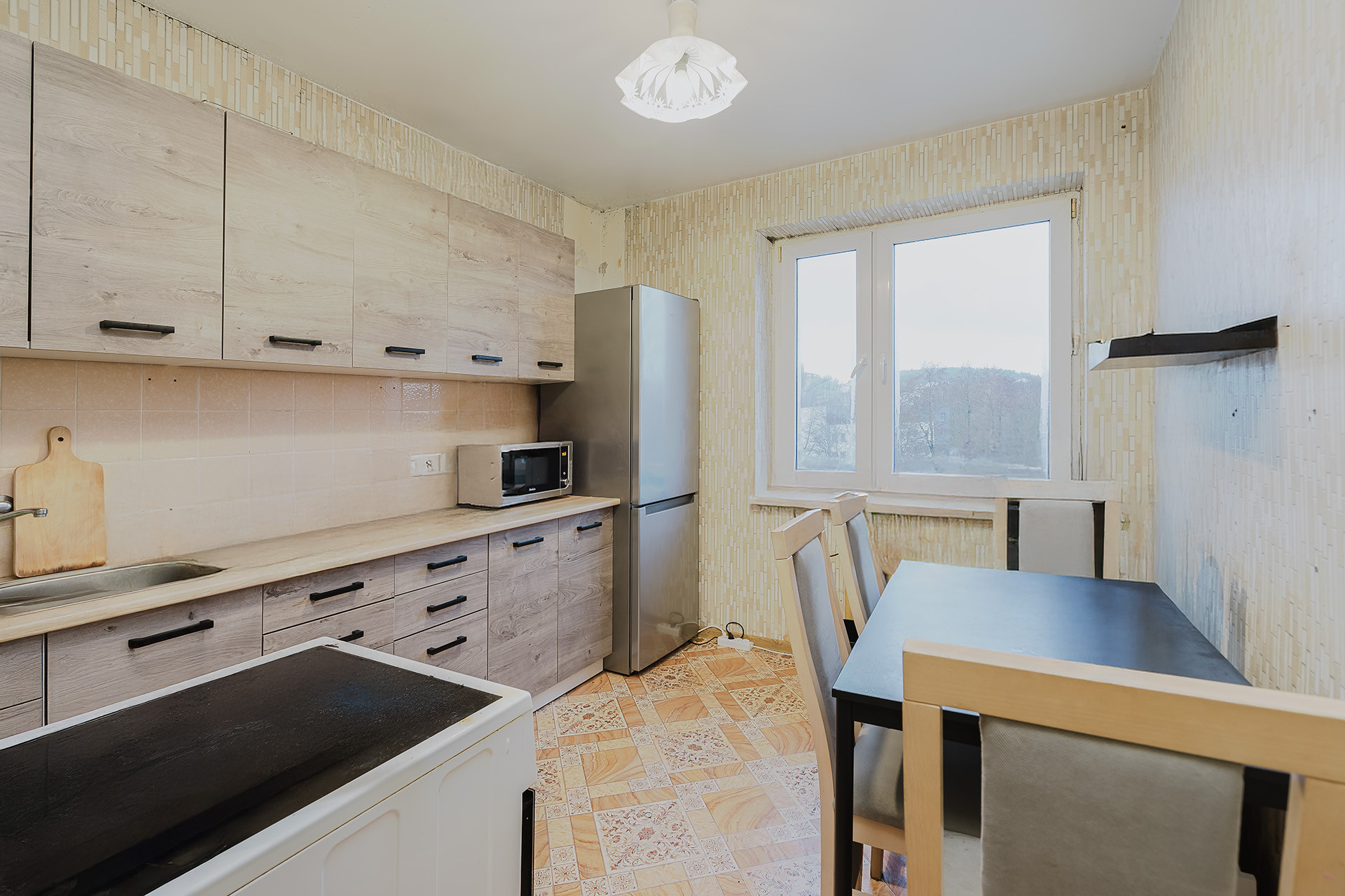 W skład lokalu wchodzą trzy pokoje (jeden z wyjściem na balkon), osobna kuchnia z oknem, łazienka z wc oraz przedpokój.