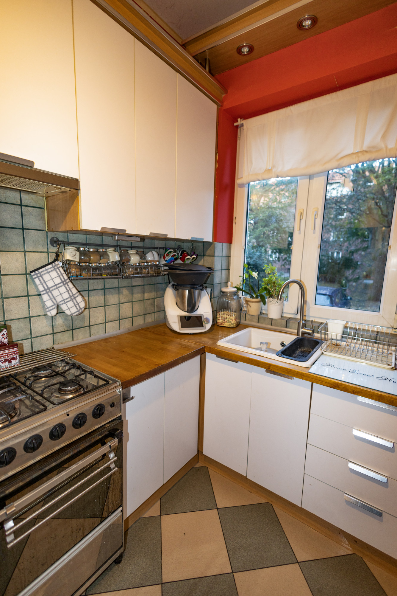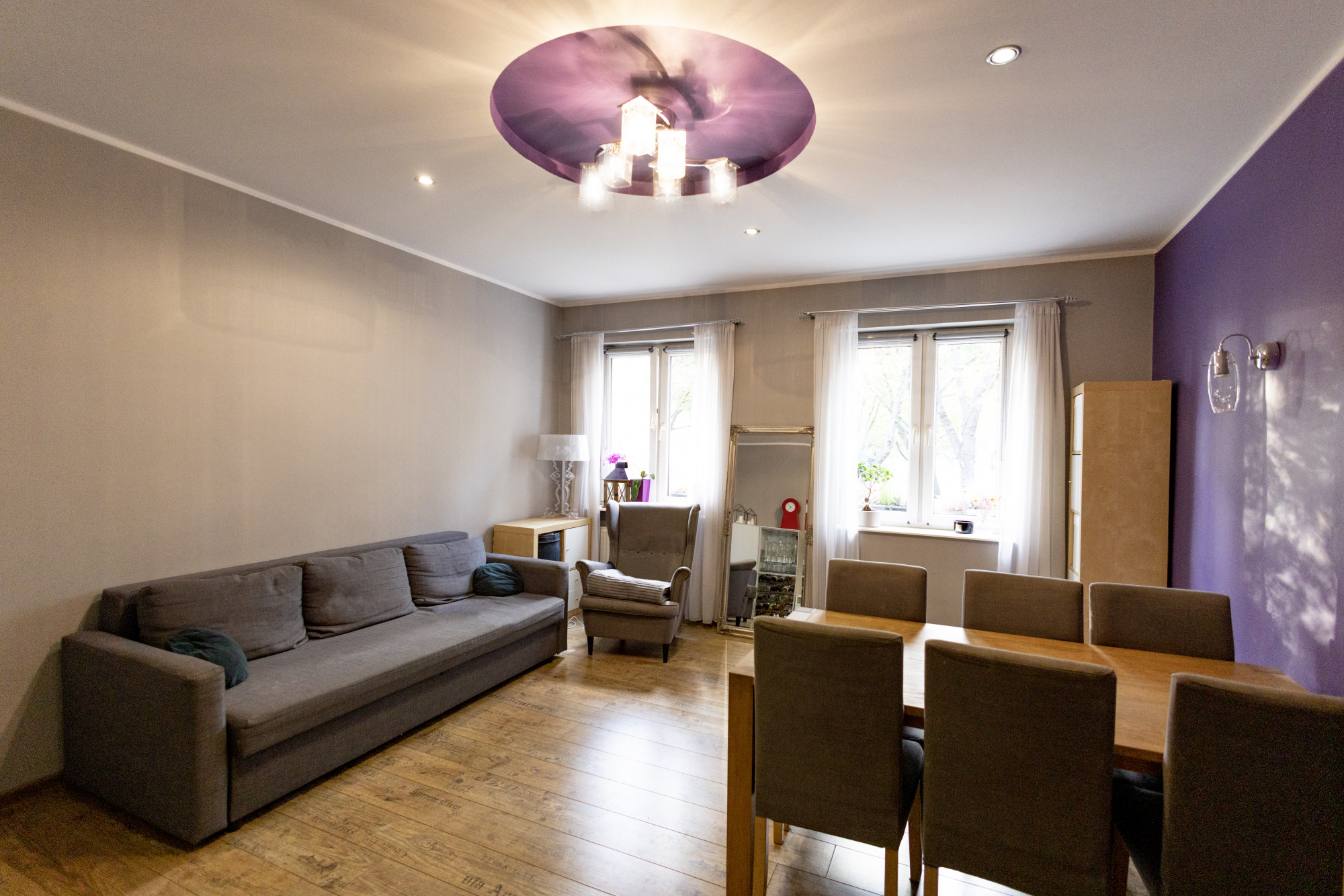 Mieszkanie przeszło generalny remont w latach 90 -tych, kilka lat temu było odświeżane. Ogrzewanie miejskie (zimą czynsz wynosi ok 800 zł, latem 400zł), natomiast ciepła woda podgrzewana jest przez piecyk gazowy znajdujący się w kuchni. Okna z kuchni, łazienki i mniejszego pokoju wychodzą na wschód, okna większego pokoju na zachód. Do mieszkania przynależy piwnica o powierzchni ok. 10m2.