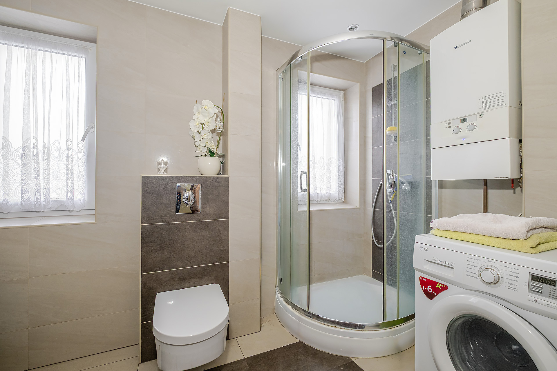 W budynku zainstalowane piec gazowy dwufunkcyjny oraz jest też siła.