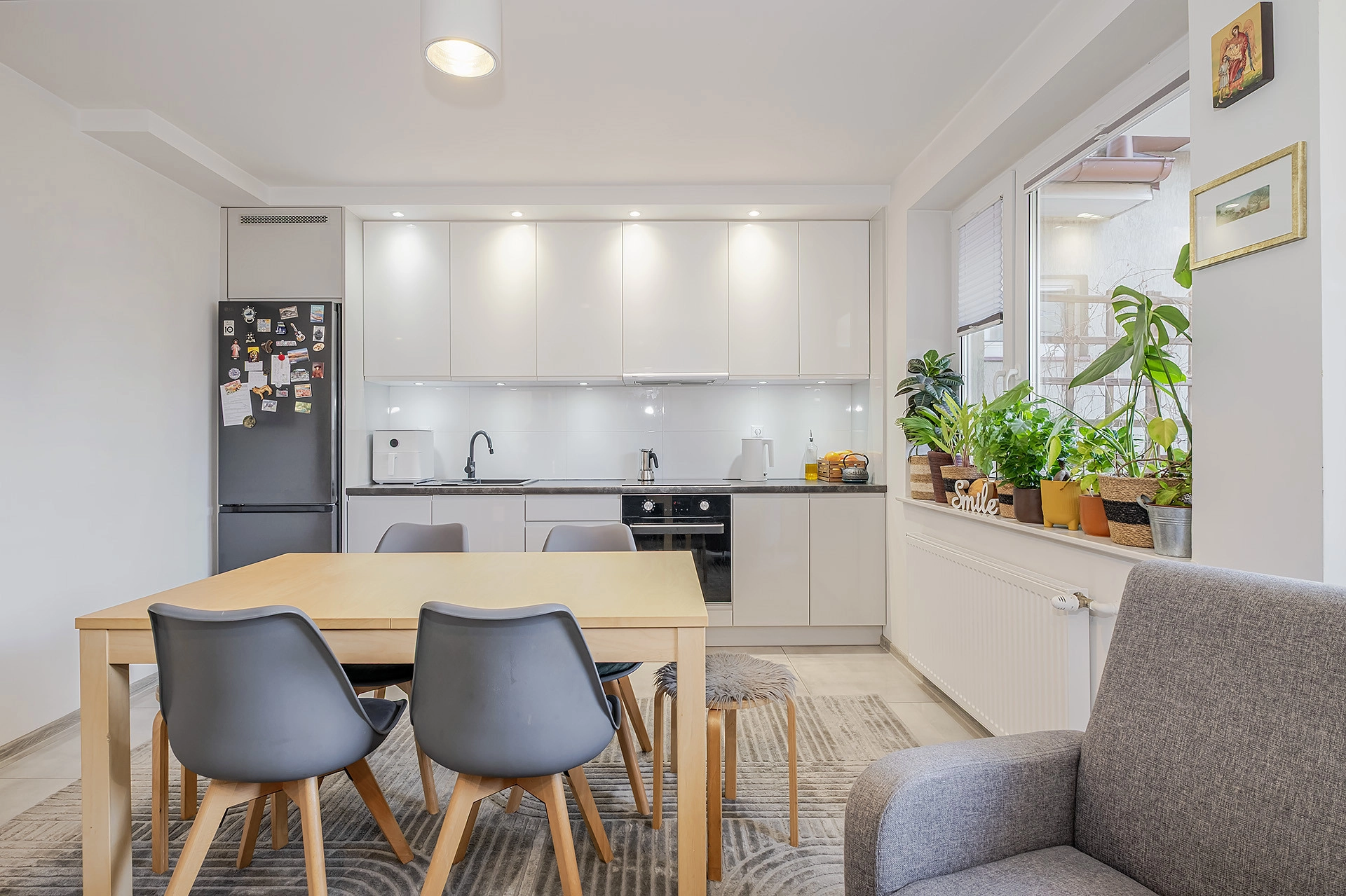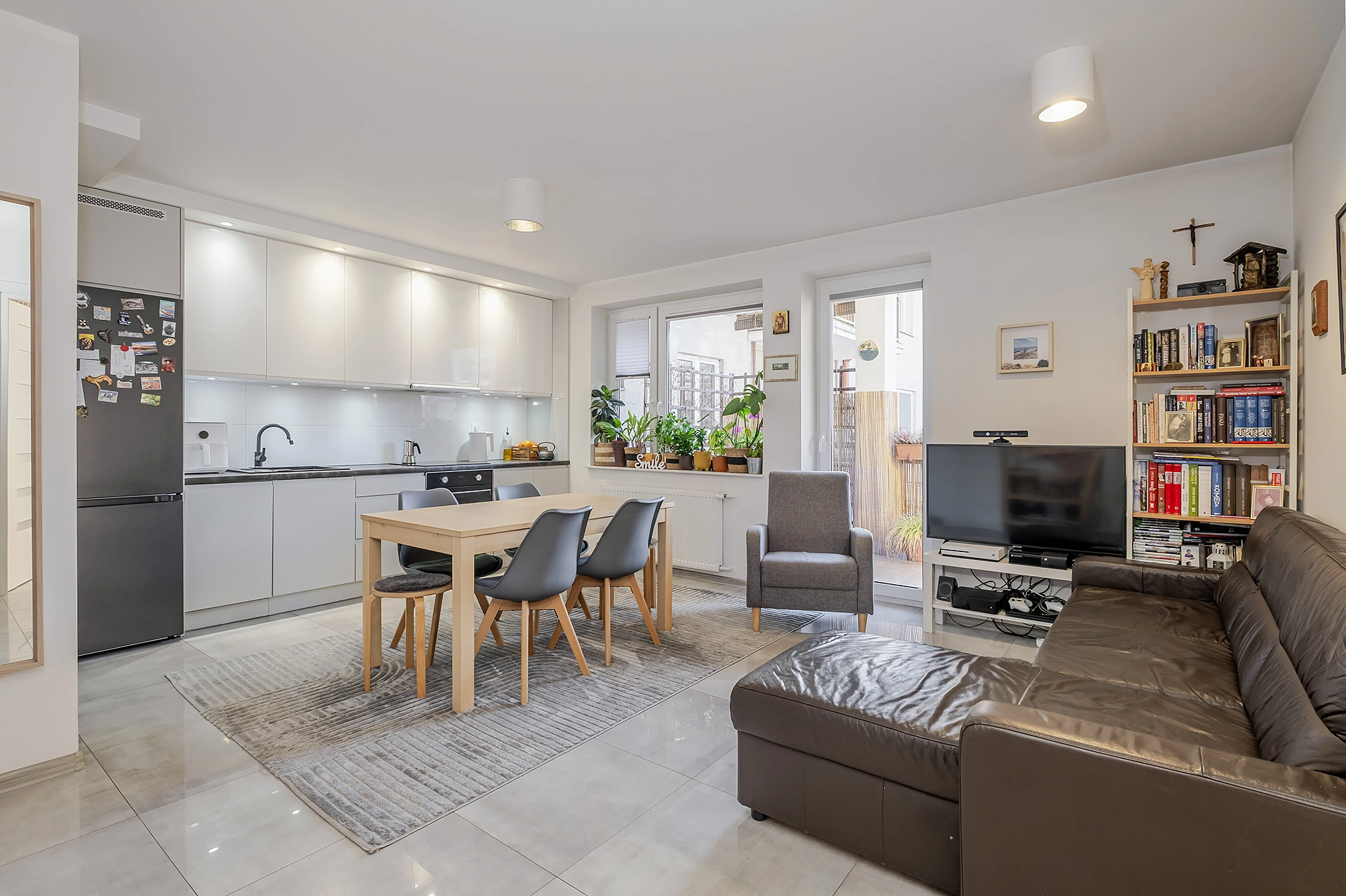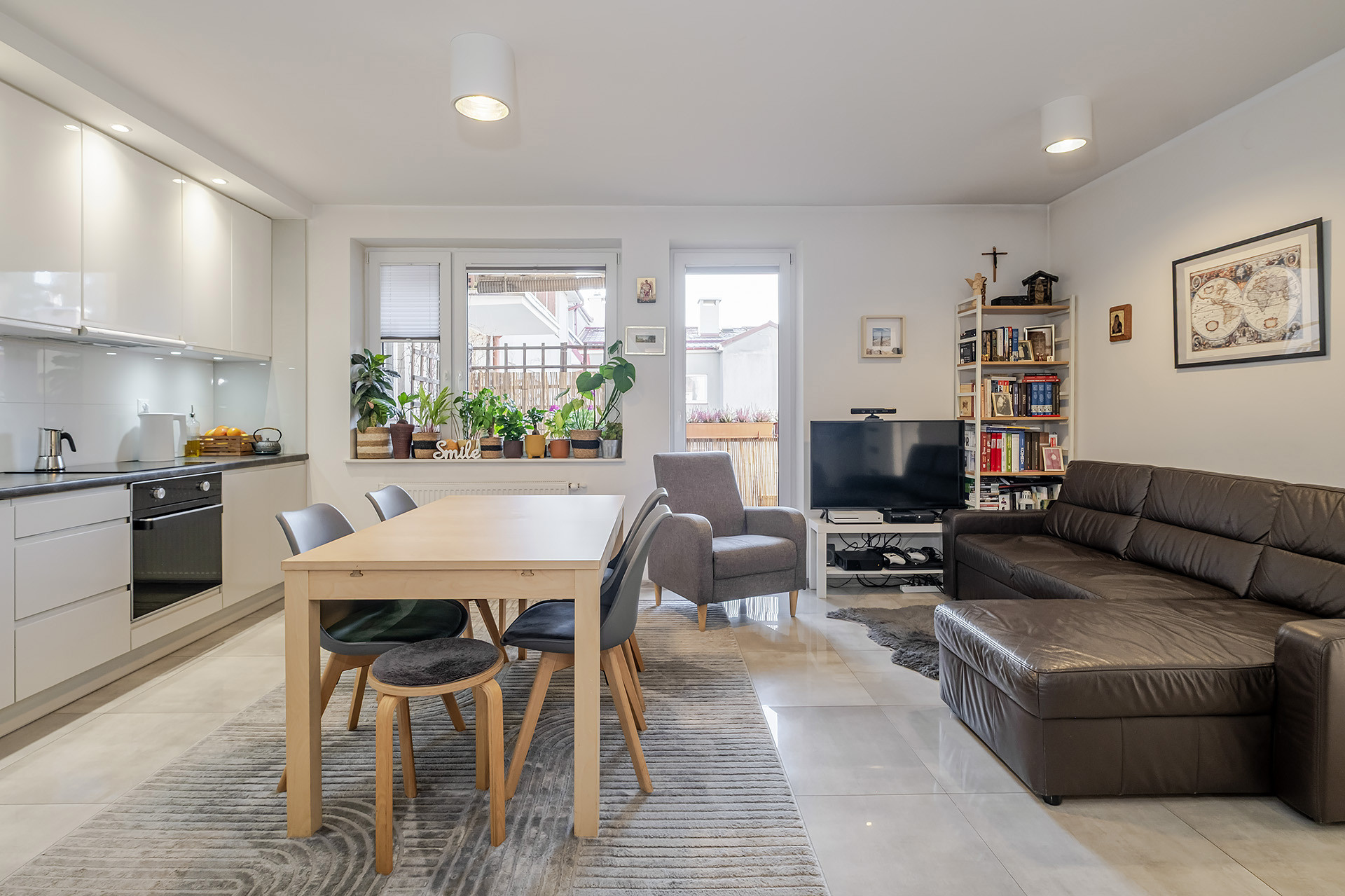 -Salonu z aneksem kuchennym  i wyjściem na przestronny balkon