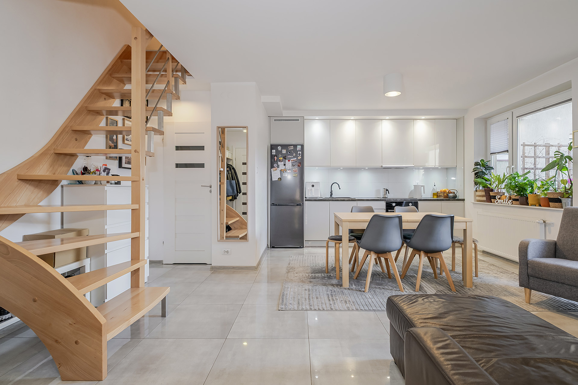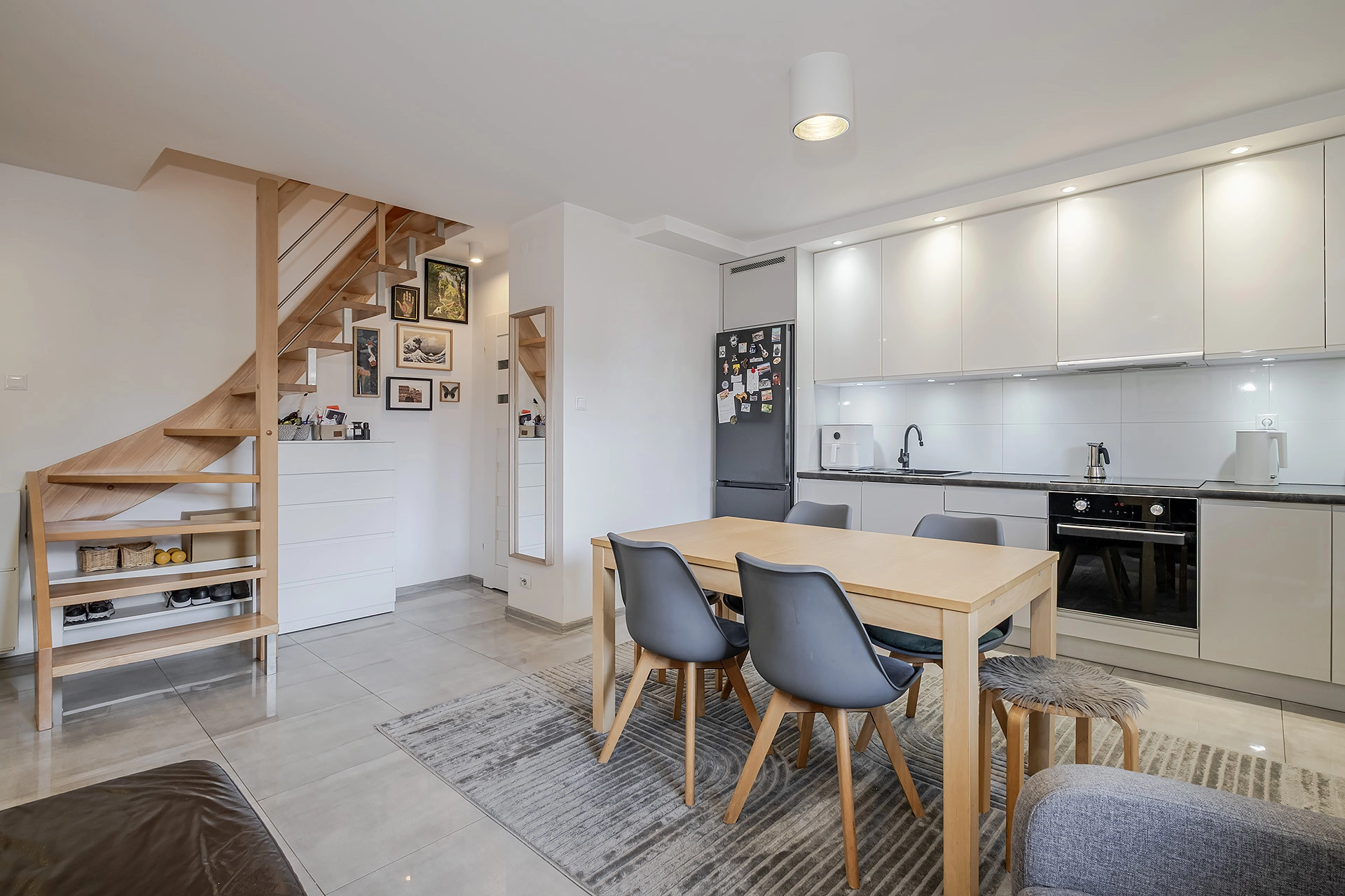 Słoneczne dwupoziomowe mieszkanie o powierzchni  użytkowej 62,70 m2 położone na 3 piętrze składa się z:
