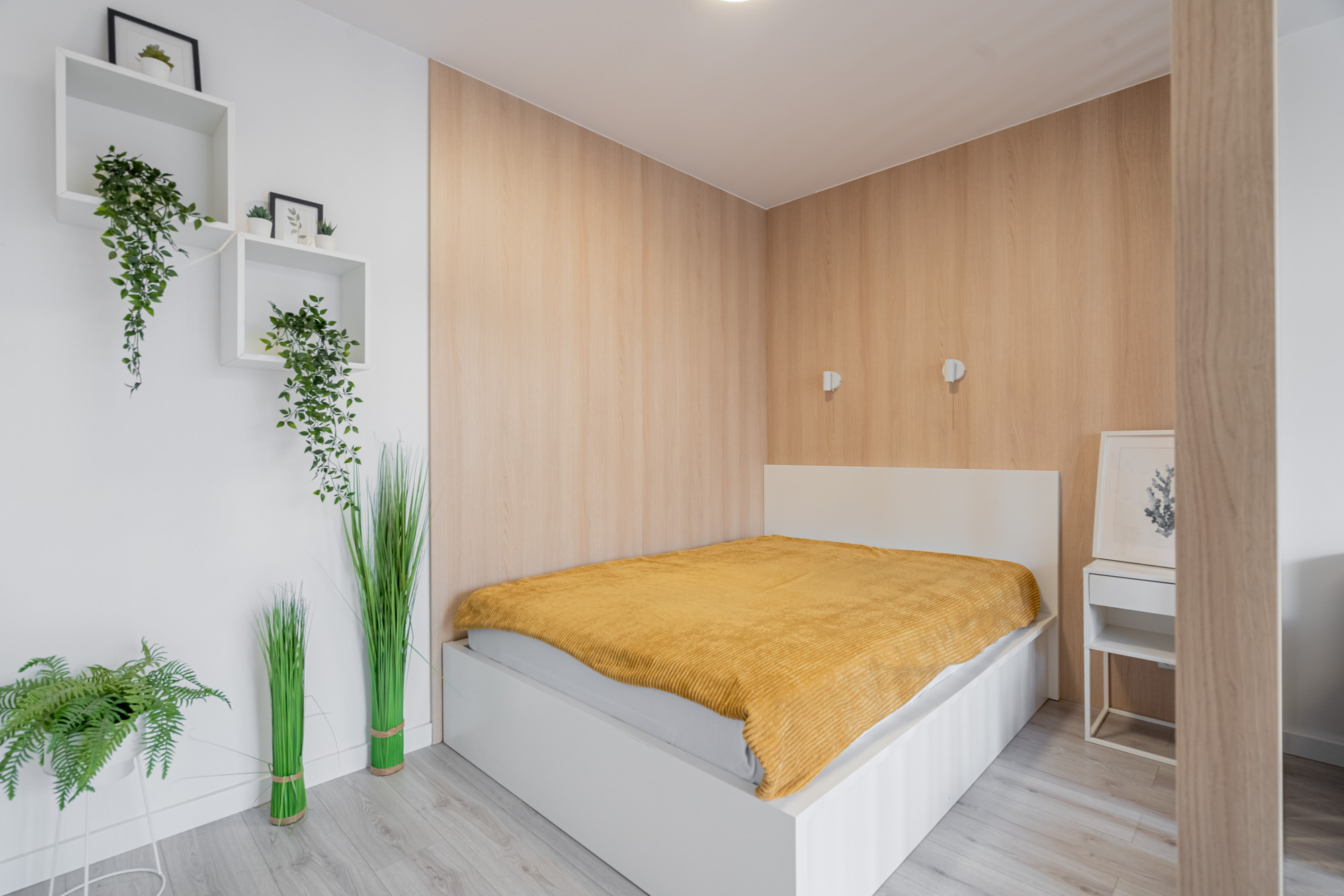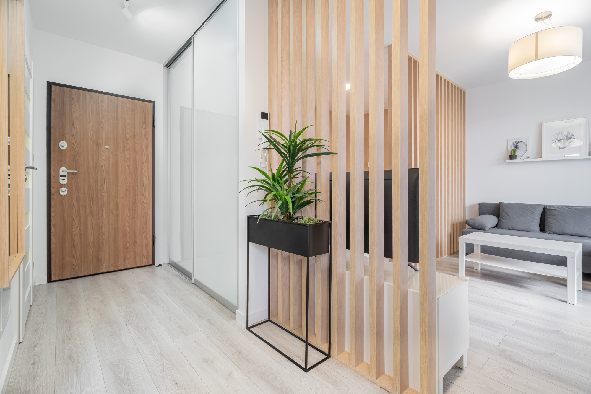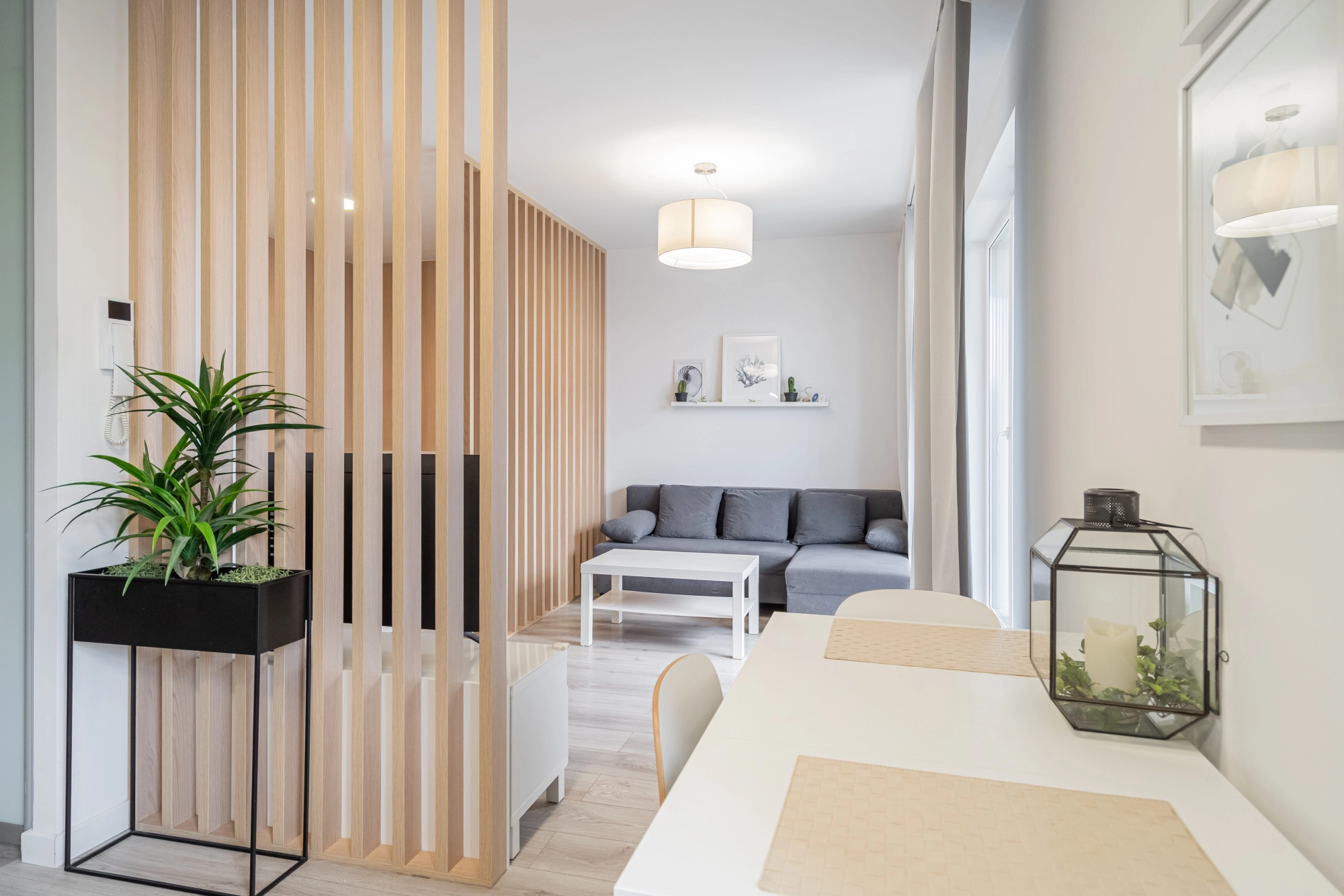 – W salonie została wydzielona część sypialniana, oddzielona eleganckimi lamelami,