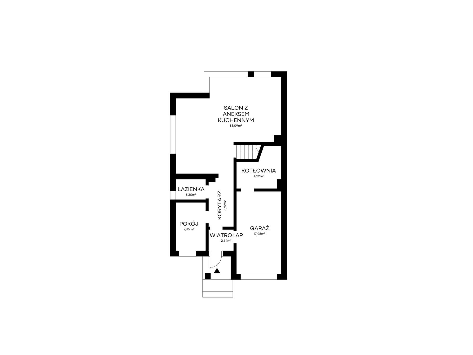 SALON Z ANEKSEM KUCHENNYM – 38.09m²