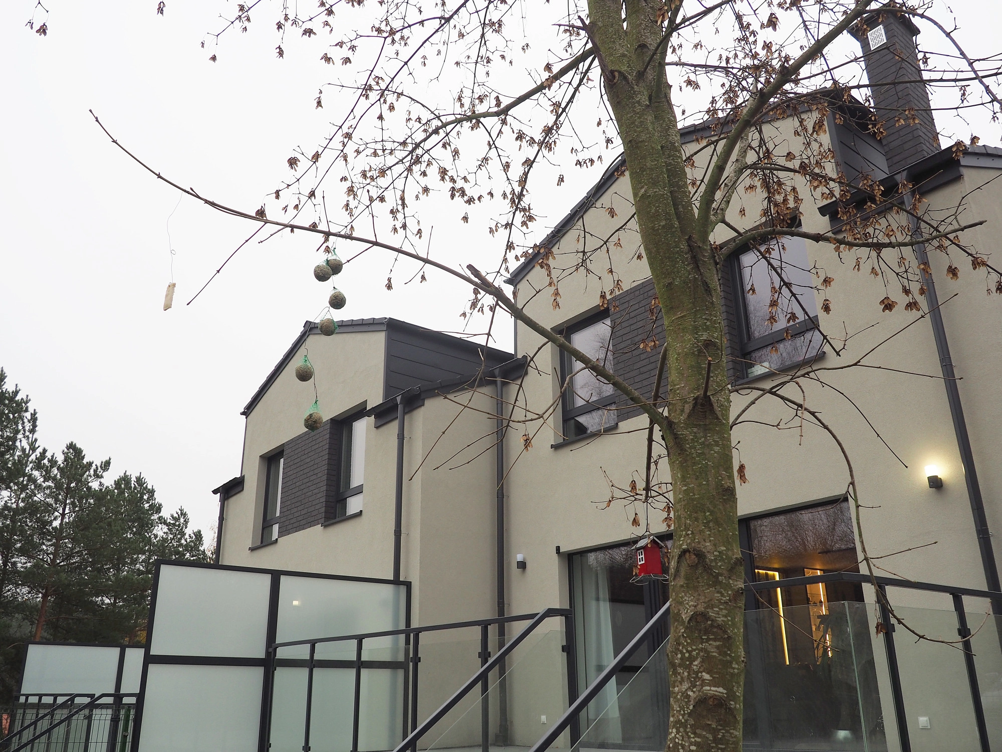 – całość wykonywana z materiałów wysokiej jakości, ściany zewnętrzne to Silka 24 cm docieplona grafitowym styropianem 15 cm, okna PCV 3-szybowe, pod wjazdem do garażu ułożony kabel grzewczy,