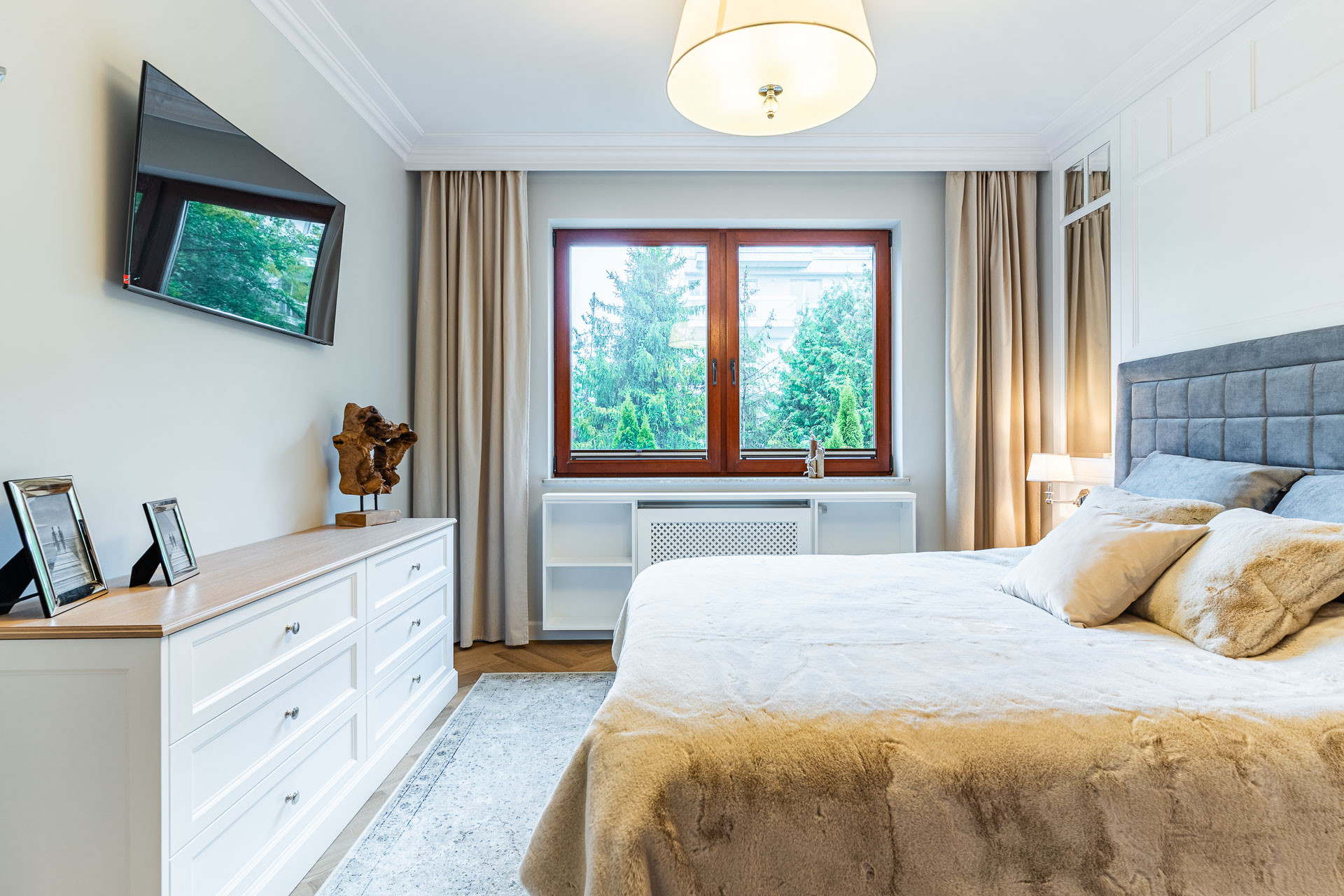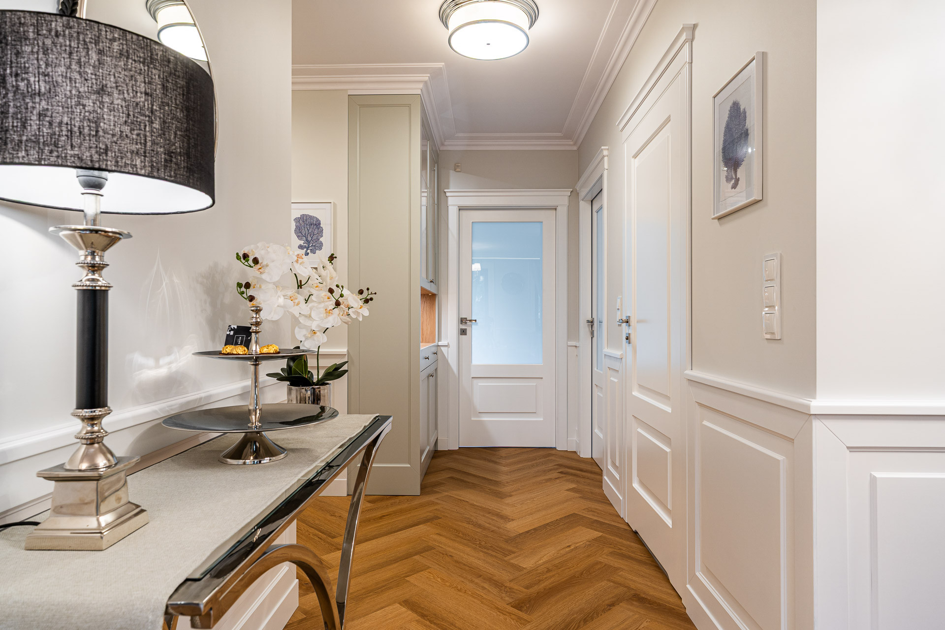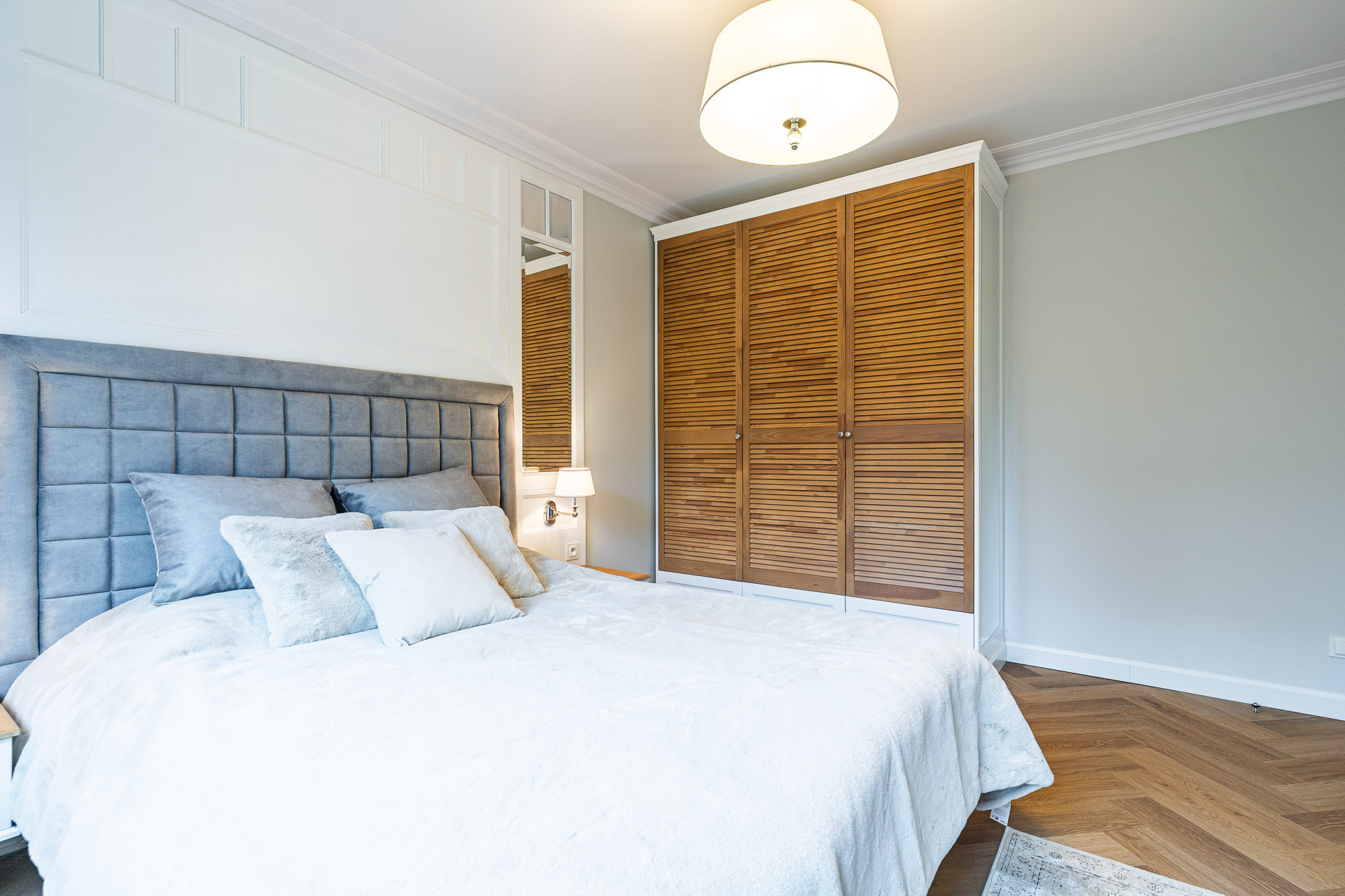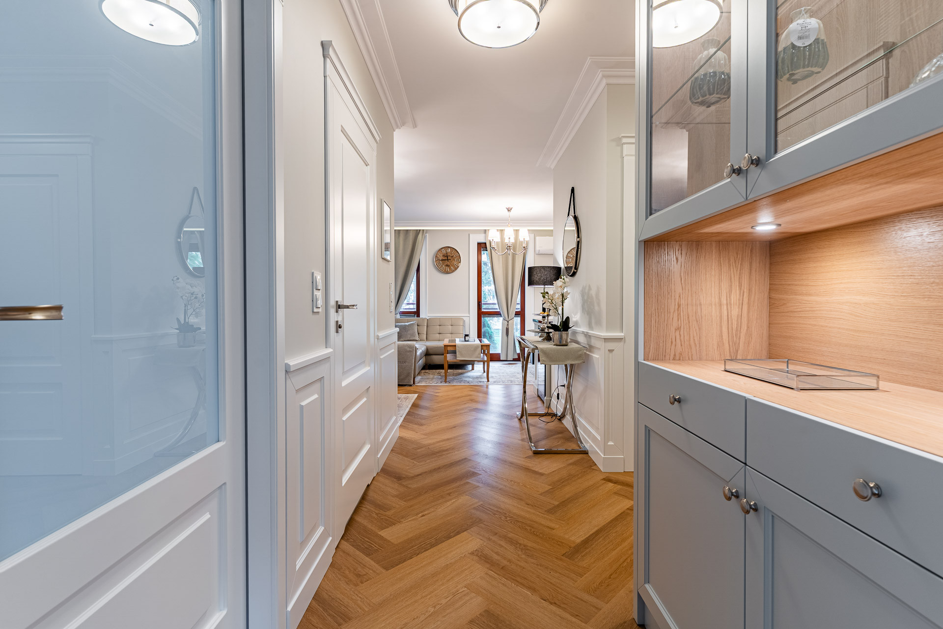 Okna wychodzą na cichy, zielony dziedziniec, co zapewnia prywatność i spokój. W latach 2024-2025 mieszkanie przeszło kompleksowy remont z wykorzystaniem materiałów najwyższej jakości. Cała stolarka meblowa (kuchnia, łazienka, garderoba, szafy w zabudowie) została wykonana na indywidualne zamówienie przez renomowaną firmę Kastol. Wnętrze utrzymane jest w eleganckim, spójnym stylu – z dbałością o każdy detal. Dodatkowym atutem jest klimatyzacja, gwarantująca komfort przez cały rok.