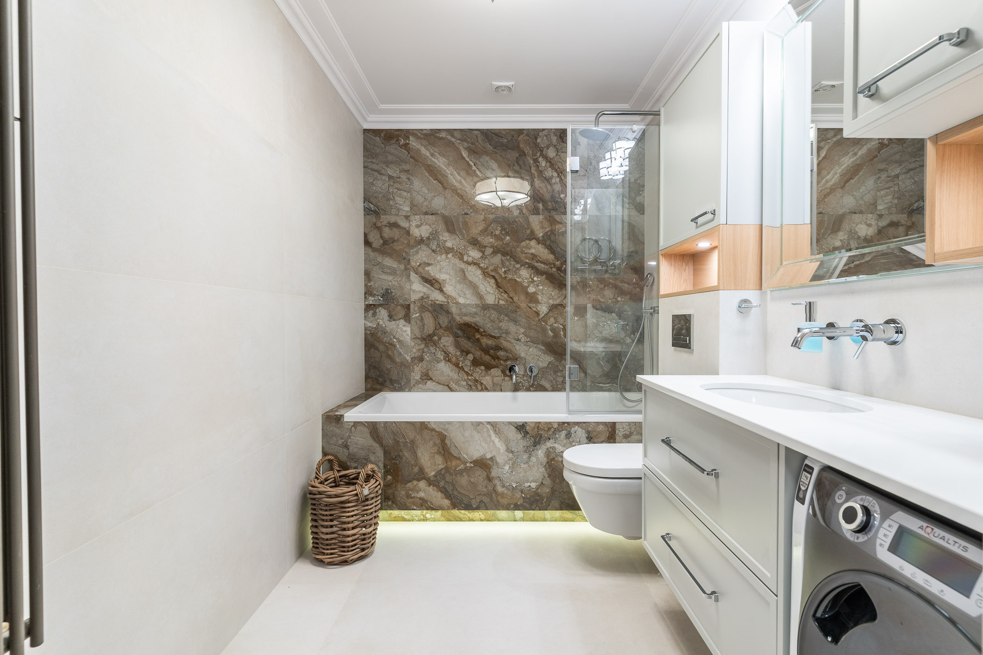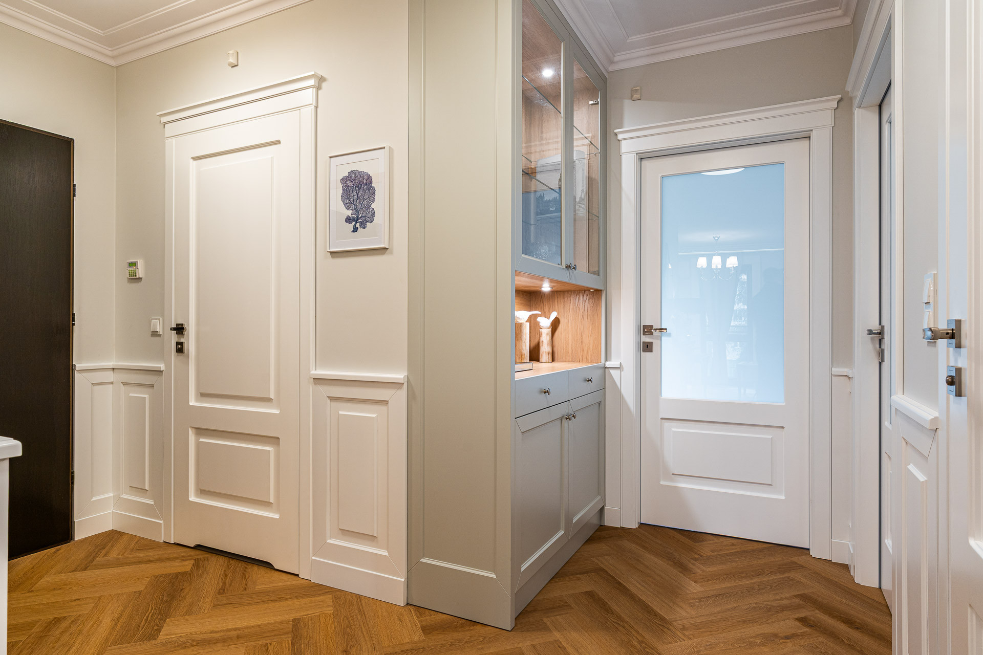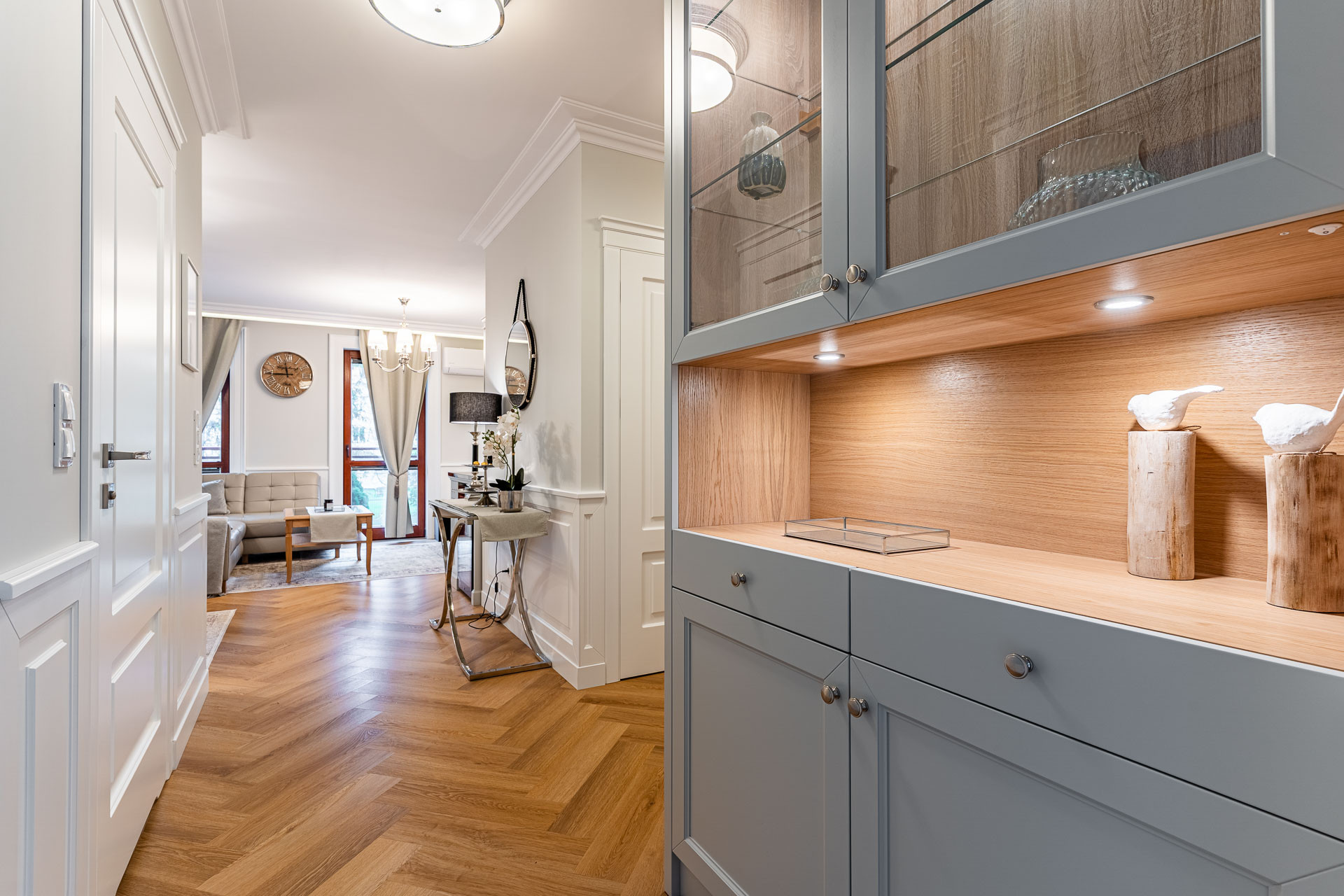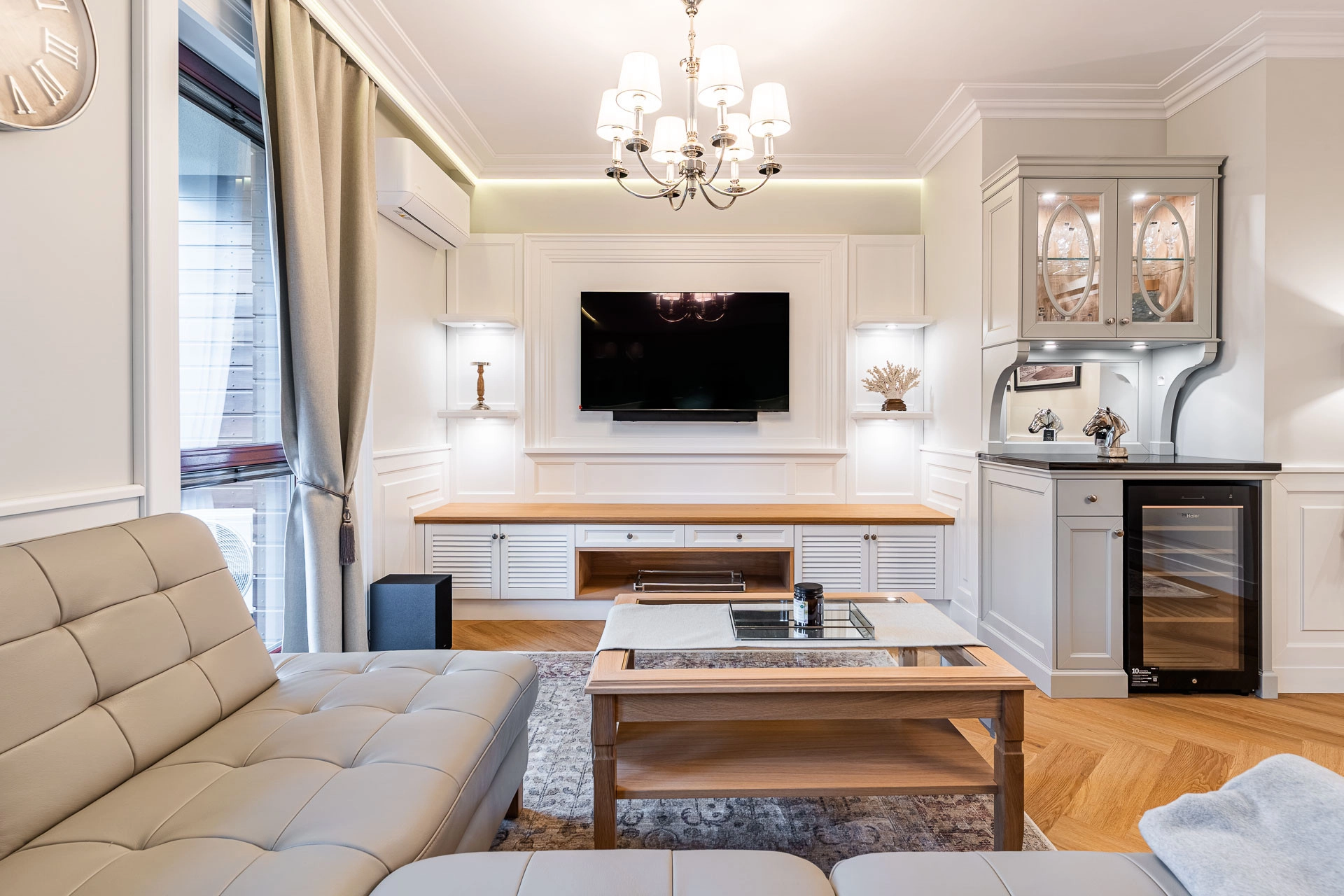 Okna wychodzą na cichy, zielony dziedziniec, co zapewnia prywatność i spokój. W latach 2024-2025 mieszkanie przeszło kompleksowy remont z wykorzystaniem materiałów najwyższej jakości. Cała stolarka meblowa (kuchnia, łazienka, garderoba, szafy w zabudowie) została wykonana na indywidualne zamówienie przez renomowaną firmę Kastol. Wnętrze utrzymane jest w eleganckim, spójnym stylu – z dbałością o każdy detal. Dodatkowym atutem jest klimatyzacja, gwarantująca komfort przez cały rok.