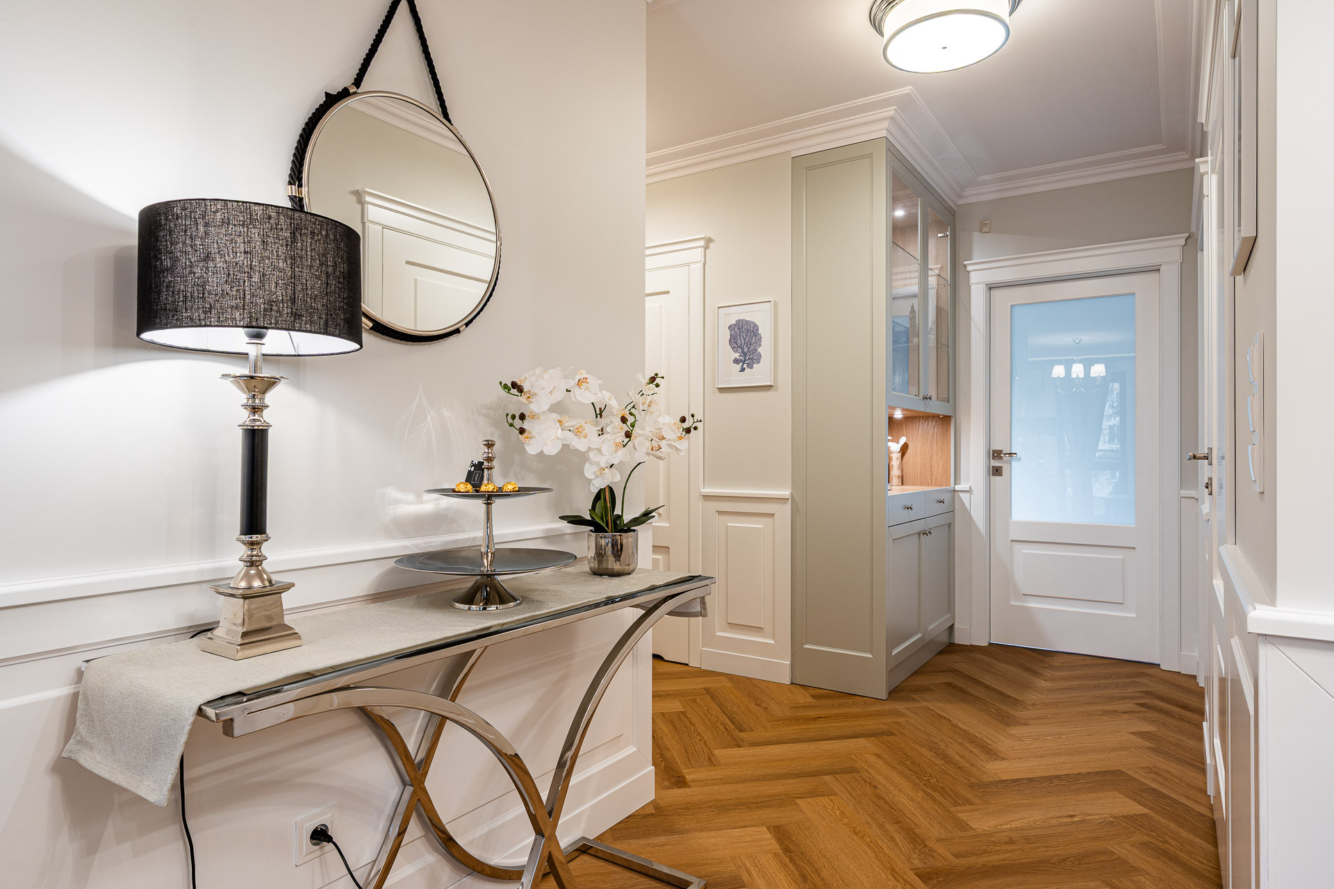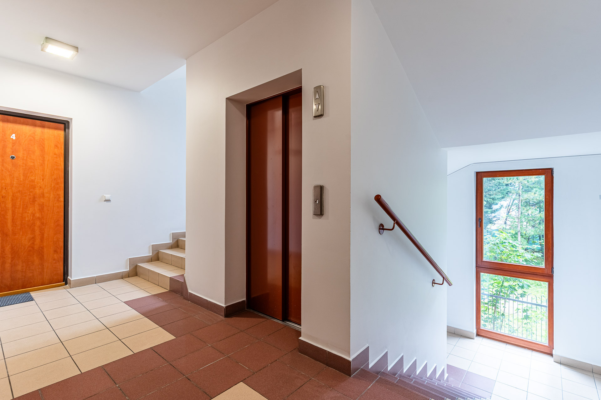 Apartament o powierzchni 70,5 m² położony jest na 1. piętrze eleganckiego budynku z windą.
