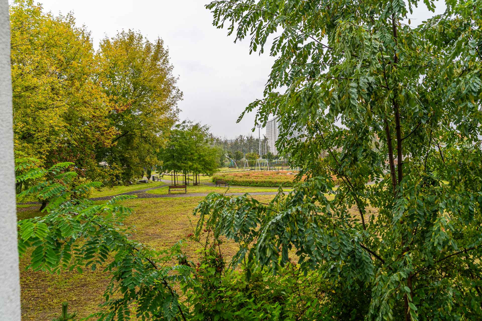 Przestronny salon z aneksem kuchennym i wyjściem na 11-metrowy balkon z widokiem na zieleń, dwie niezależne sypialnie, nowoczesna łazienka z prysznicem typu walk-in, osobna toaleta, garderoba, przedpokój z zabudową