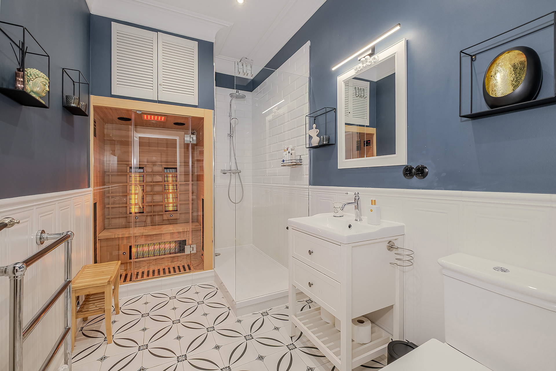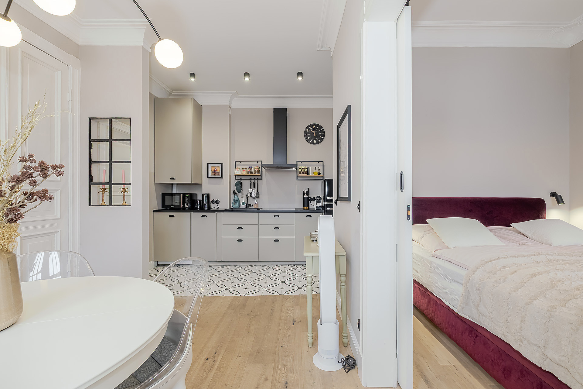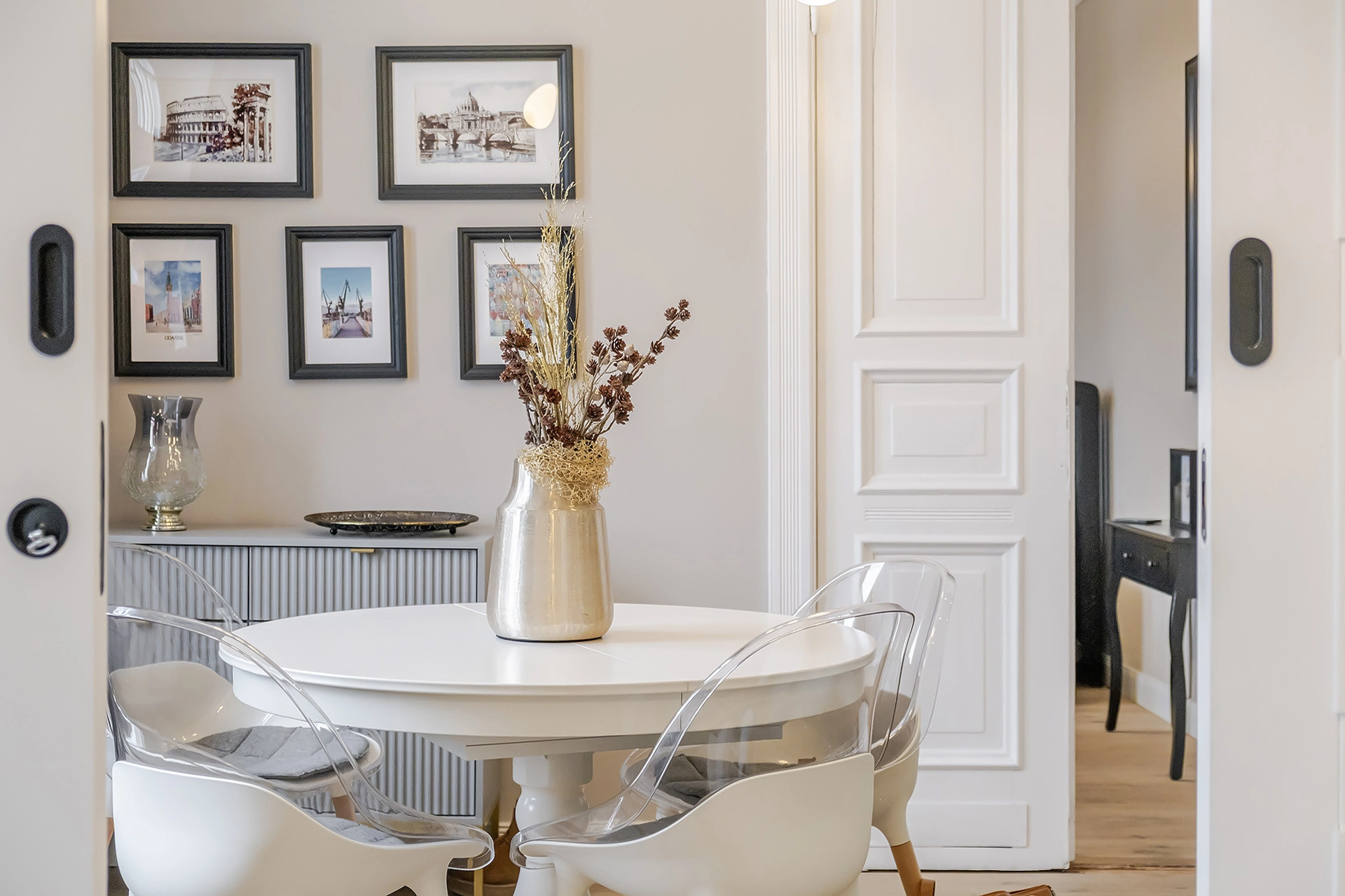 W grudniu 2024 roku zakończył się remont podczas którego mieszkanie przeszło pełną metamorfozę – od podstaw, z dbałością o każdy detal. Dębowa, olejowana i subtelnie przypalana deska, drewniane listwy przypodłogowe oraz włoskie kafle tworzą elegancką, harmonijną całość, nad którą unoszą się gipsowe sztukaterie. Wszystkie zabudowy wykonano na miarę przez stolarza, wnętrze wyposażono w nowy sprzęt, a nowoczesne instalacje i okrągłe włączniki oraz kontakty niemieckiej marki Berker podkreślają dopracowany charakter przestrzeni. Komfort ciszy zapewnia dodatkowe wygłuszenie ścian wełną mineralną, a historia kamienicy wybrzmiewa w odrestaurowanych, wysokich drewnianych drzwiach i pięknych żeliwnych grzejnikach- tworząc wnętrze z duszą, spokojne i ponadczasowe.
