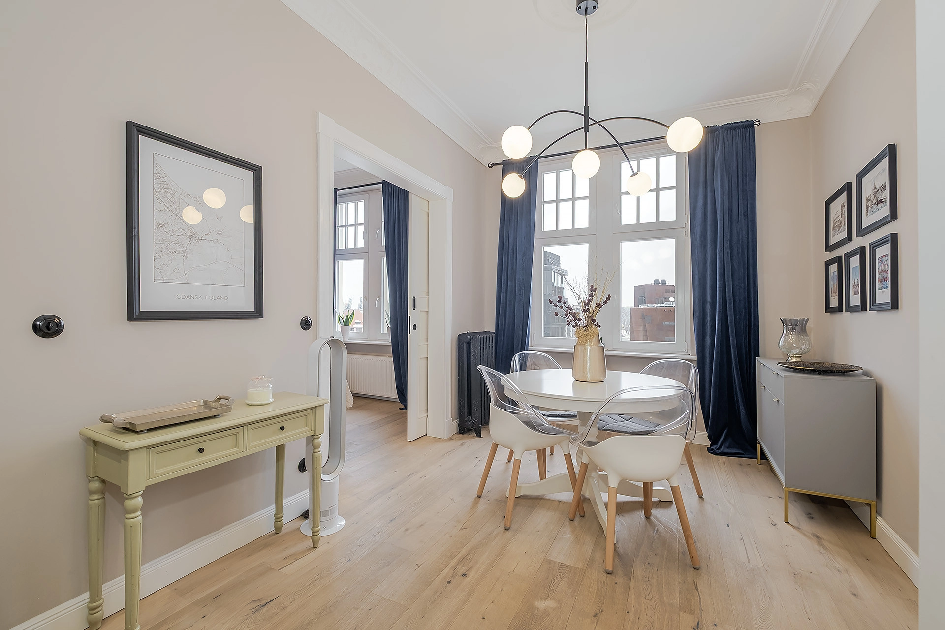 W samym sercu Gdańska, gdzie historia spotyka się z rytmem miasta, czeka mieszkanie, które zachwyca światłem, detalem i atmosferą – stworzone z myślą o tych, którzy szukają nie tylko adresu, ale stylu życia.